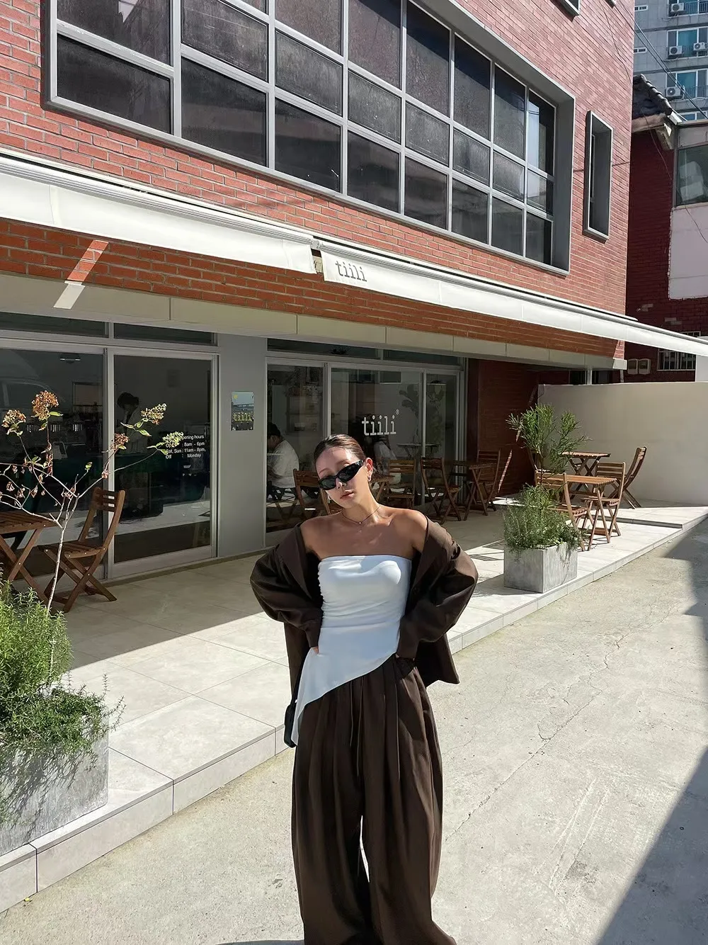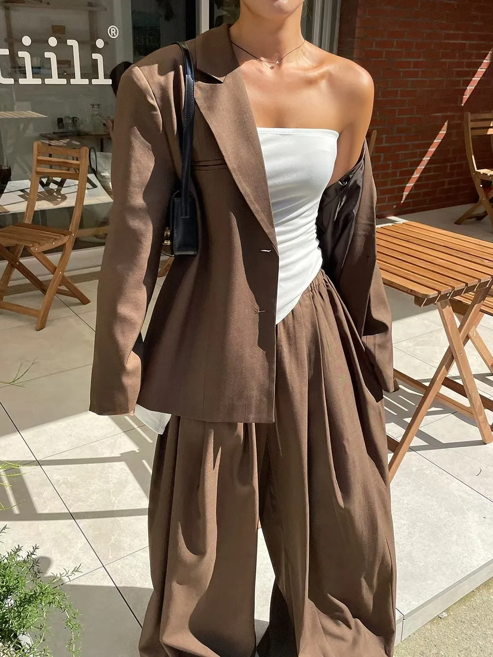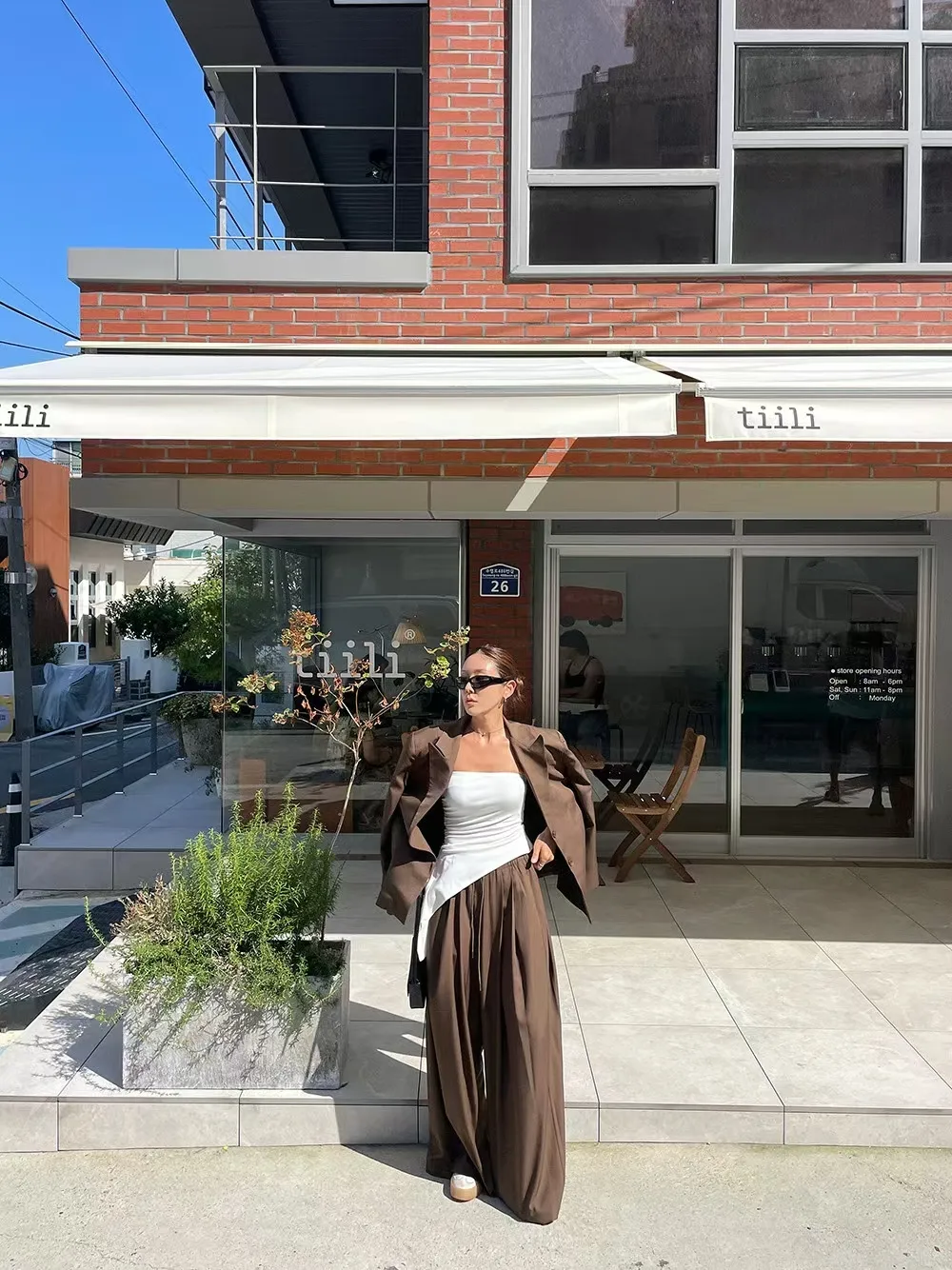 VK鬆緊腰寬版西裝寬長褲(sale)