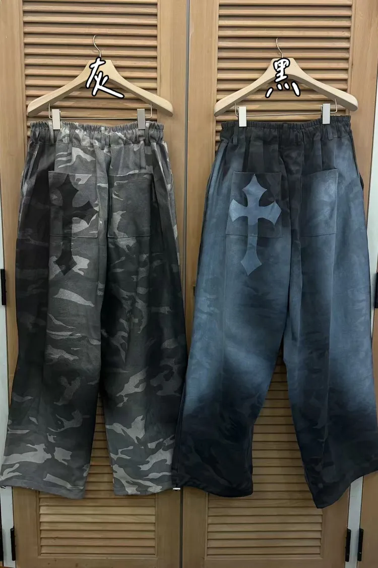 NUT後十字架刷色迷彩抽繩褲