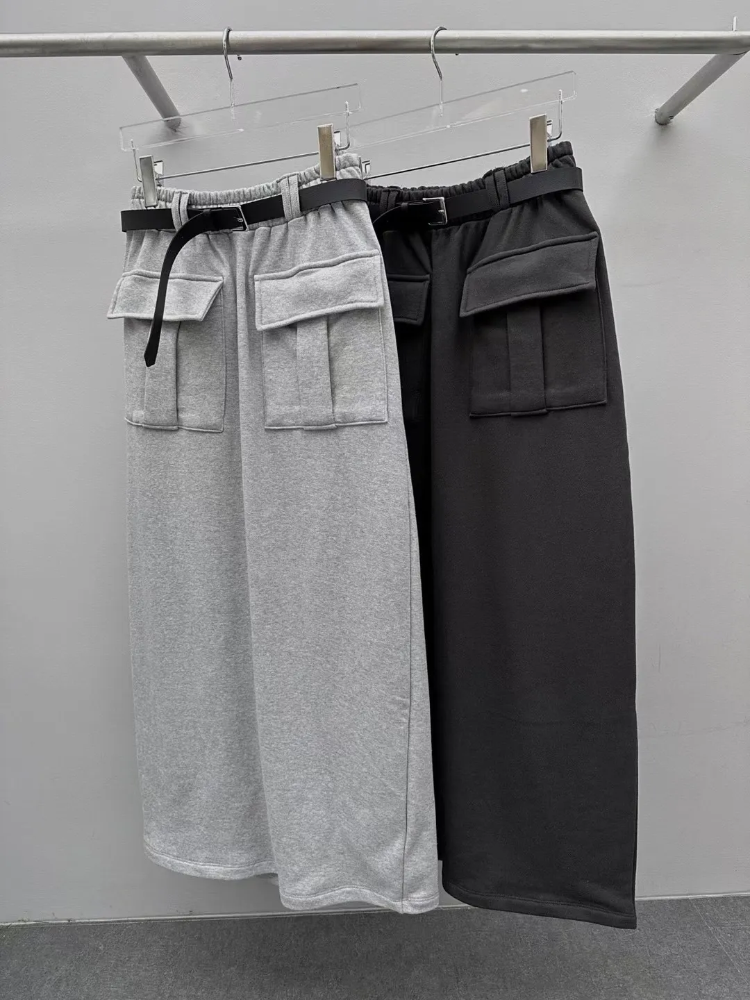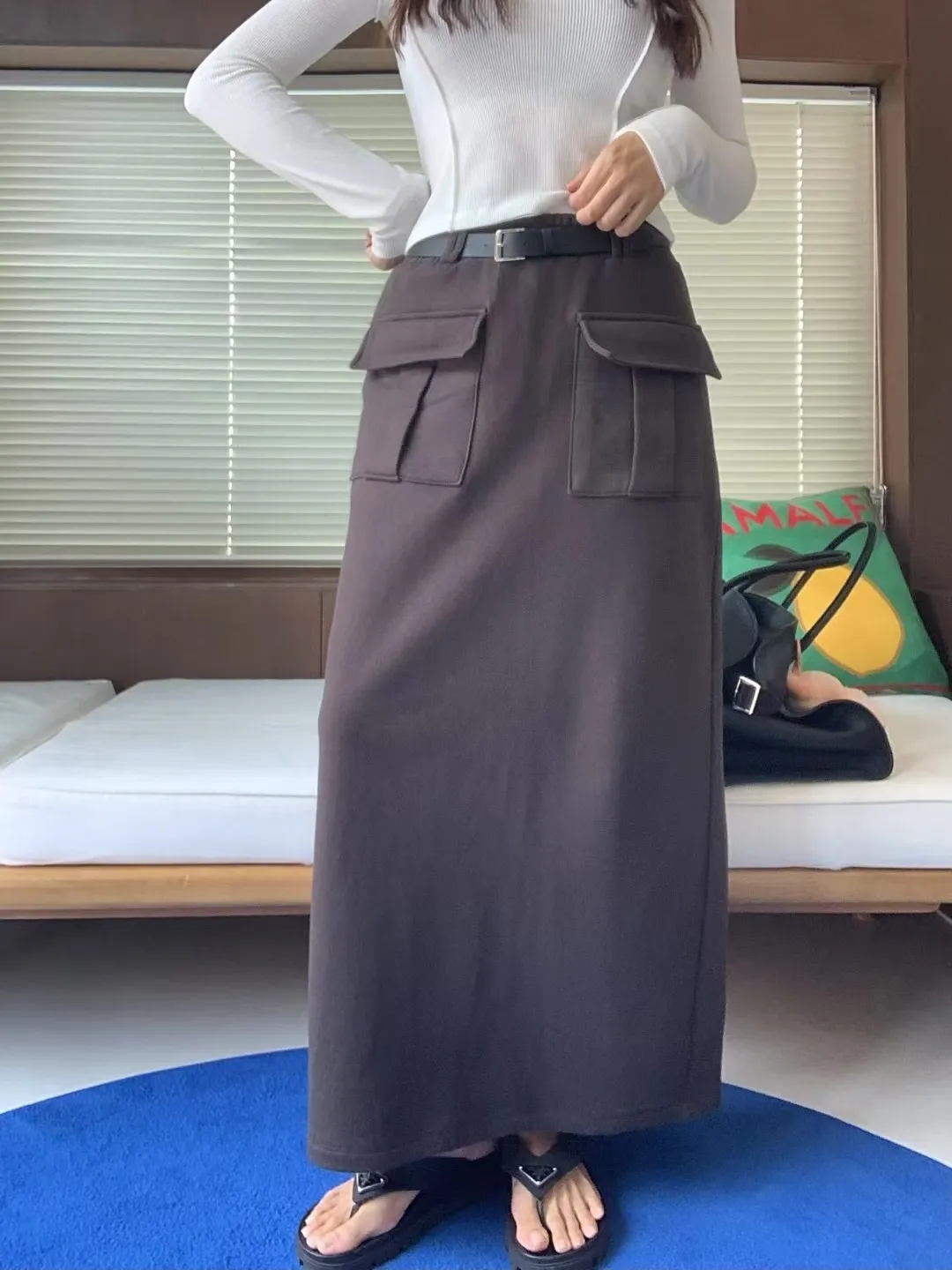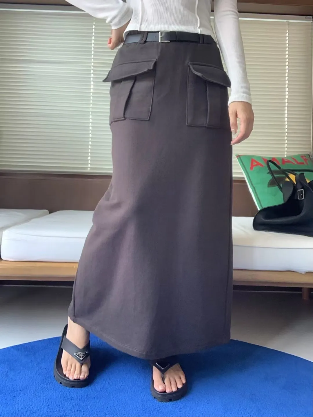 附皮帶雙口袋工裝長裙