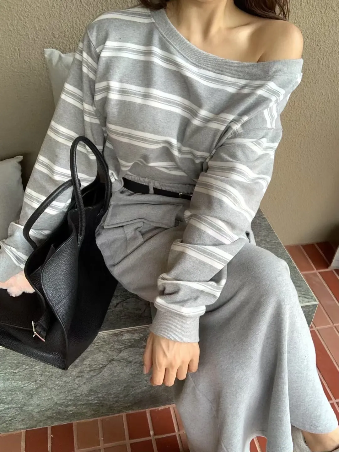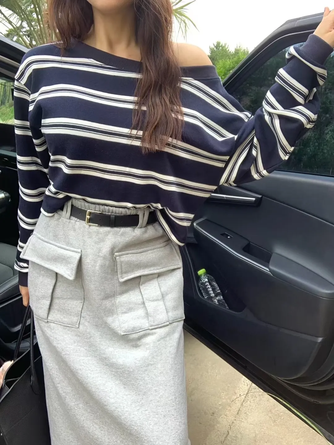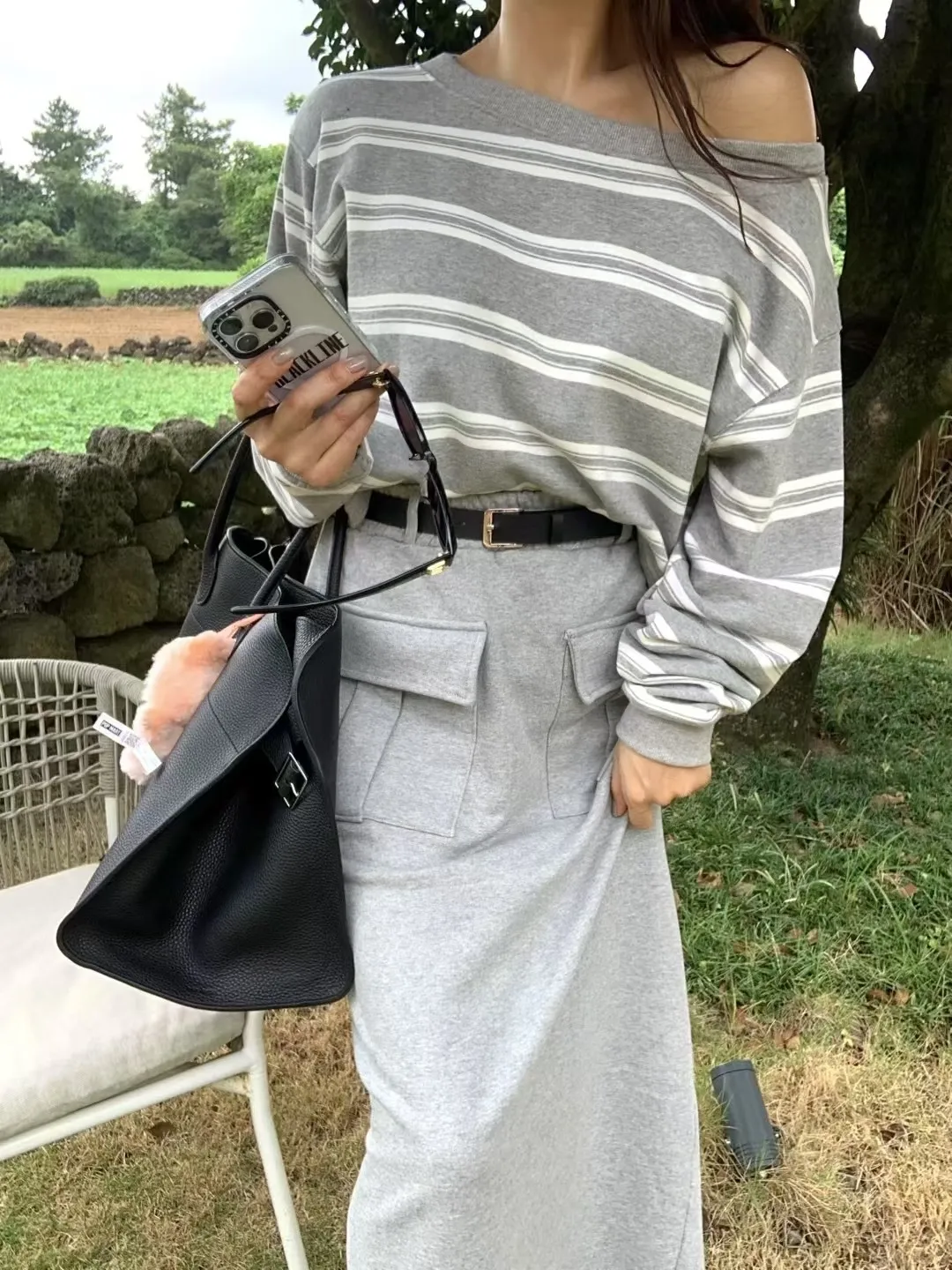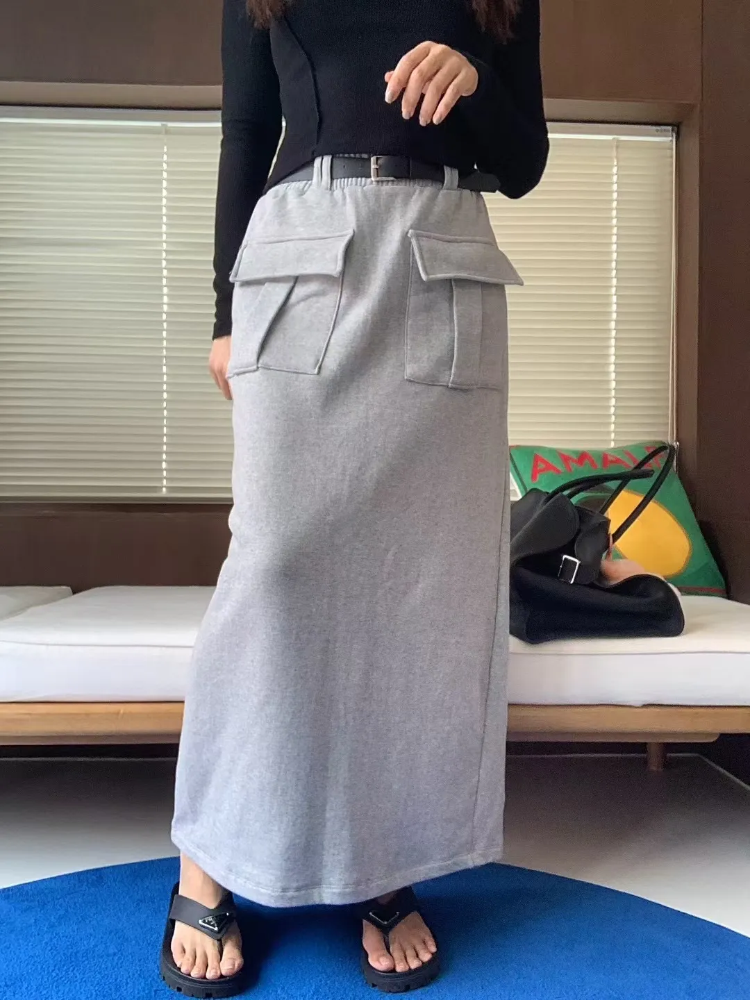 附皮帶雙口袋工裝長裙