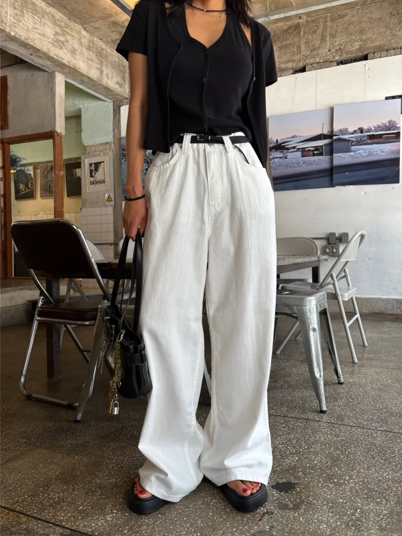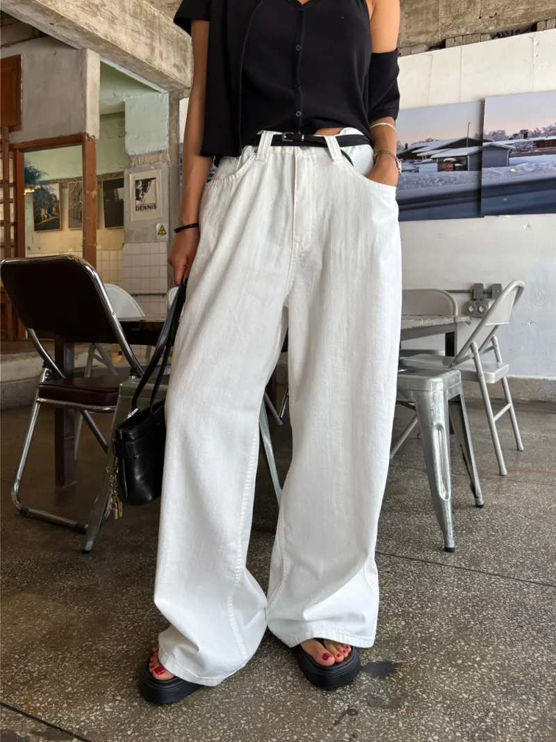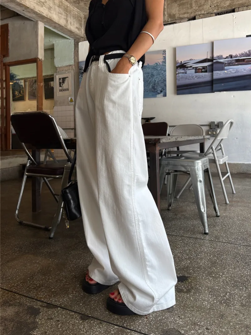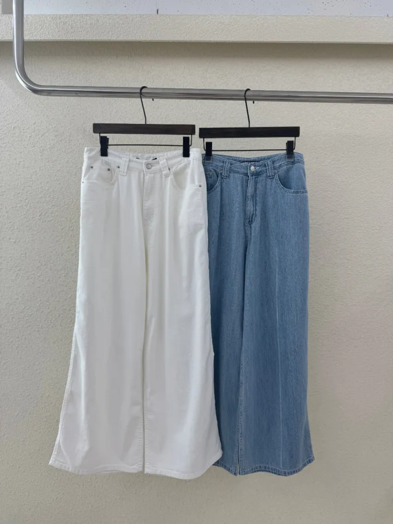 牛仔寬長褲