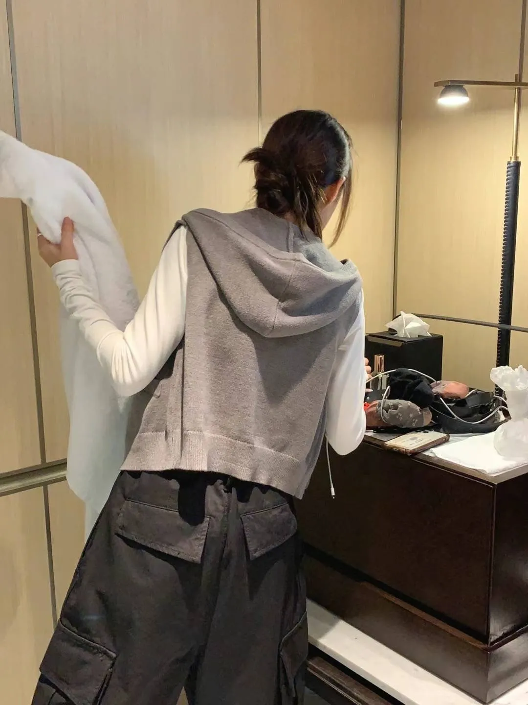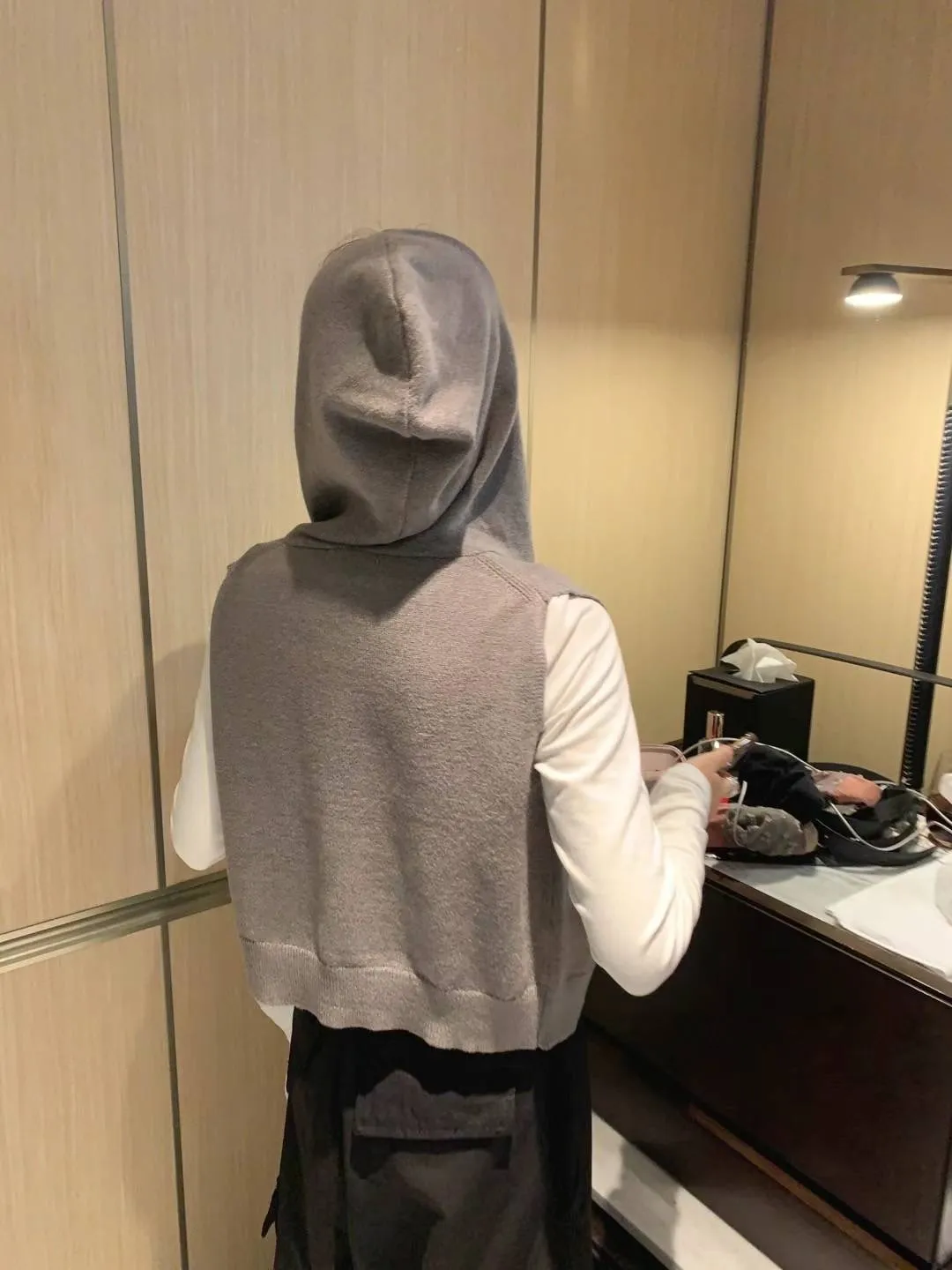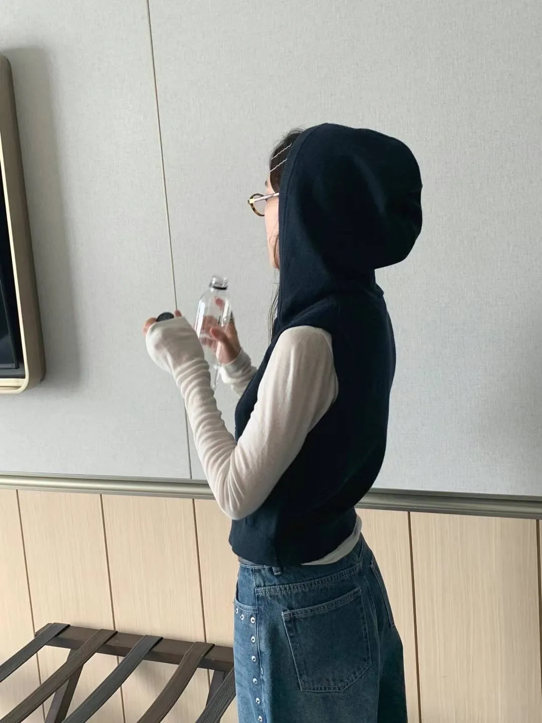 斜口袋連帽拉鍊背心