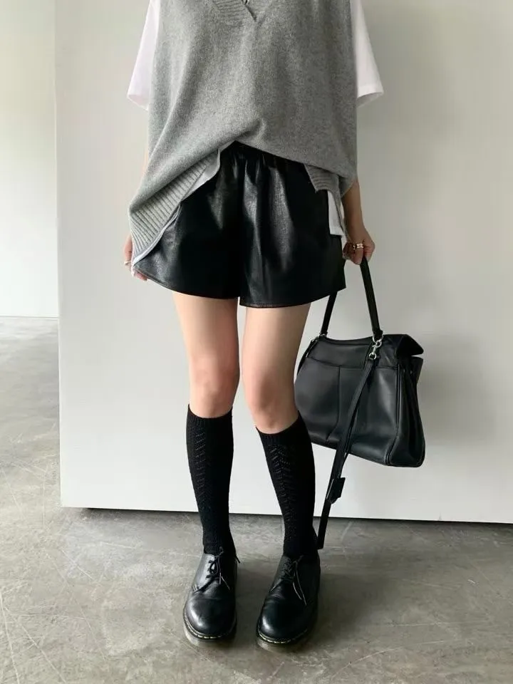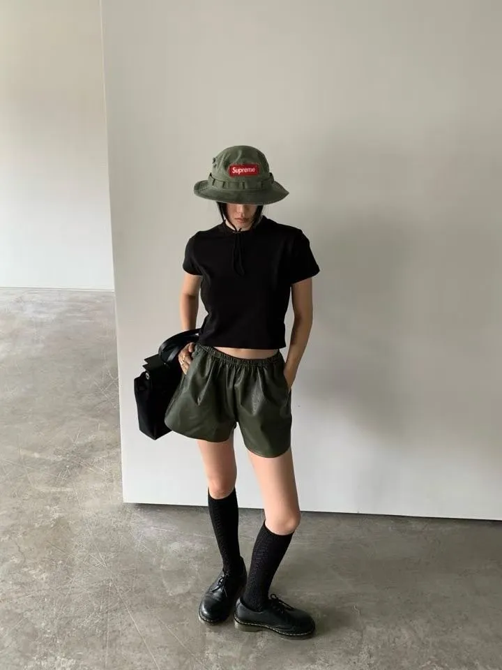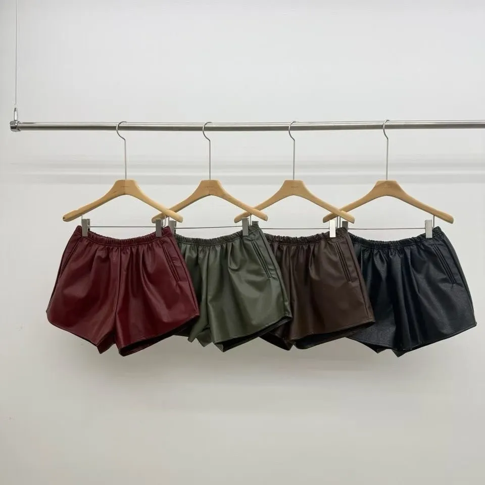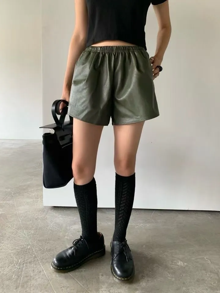 一字口袋鬆緊皮短褲(紅現貨.黑.綠斷)