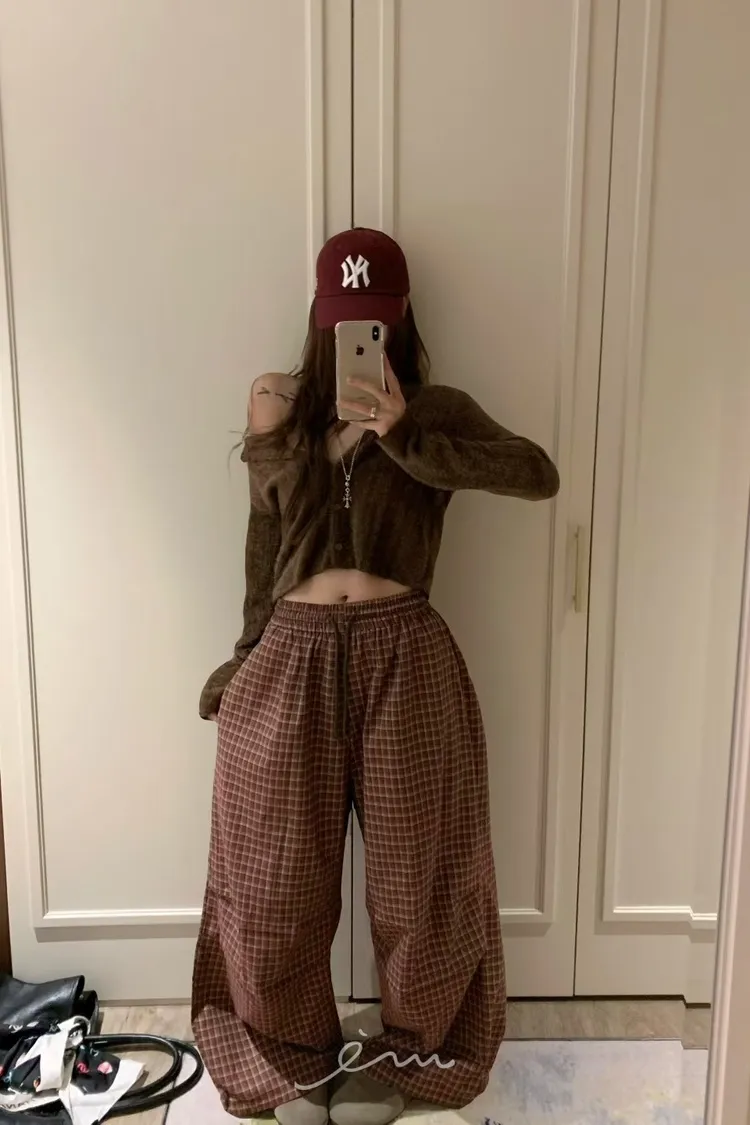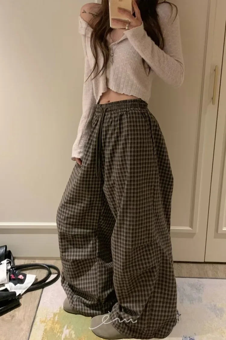 VK方格打摺抽繩長褲(肉0清單)