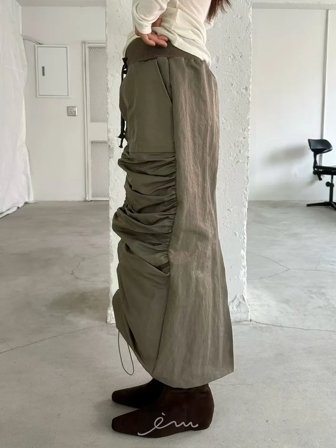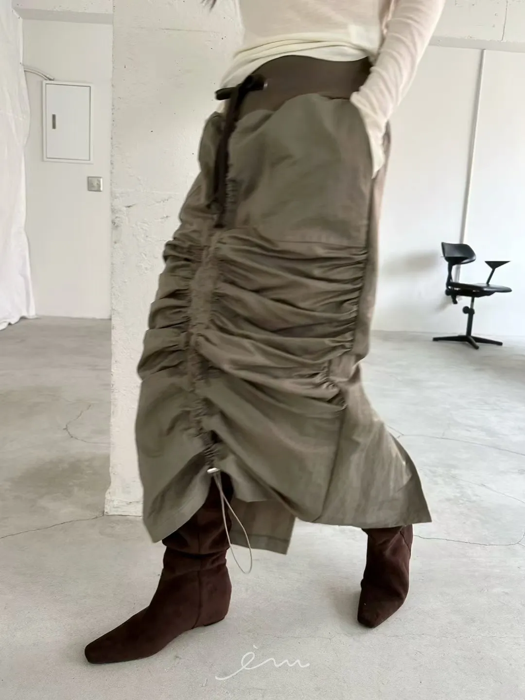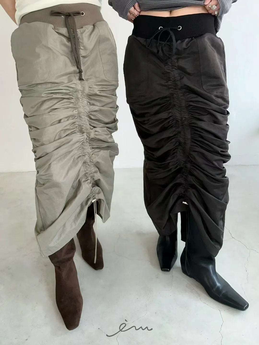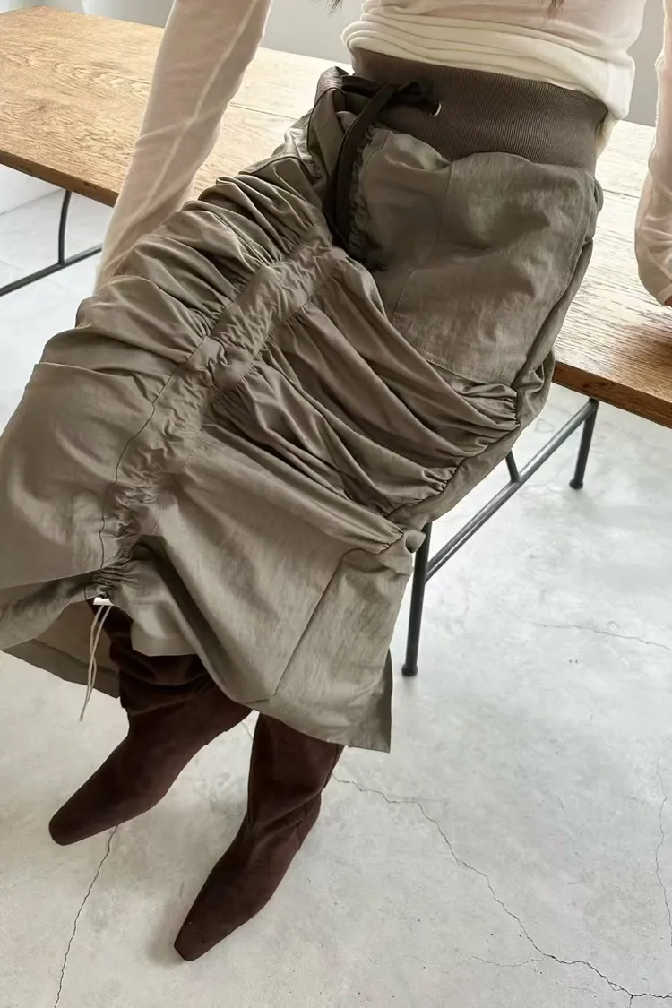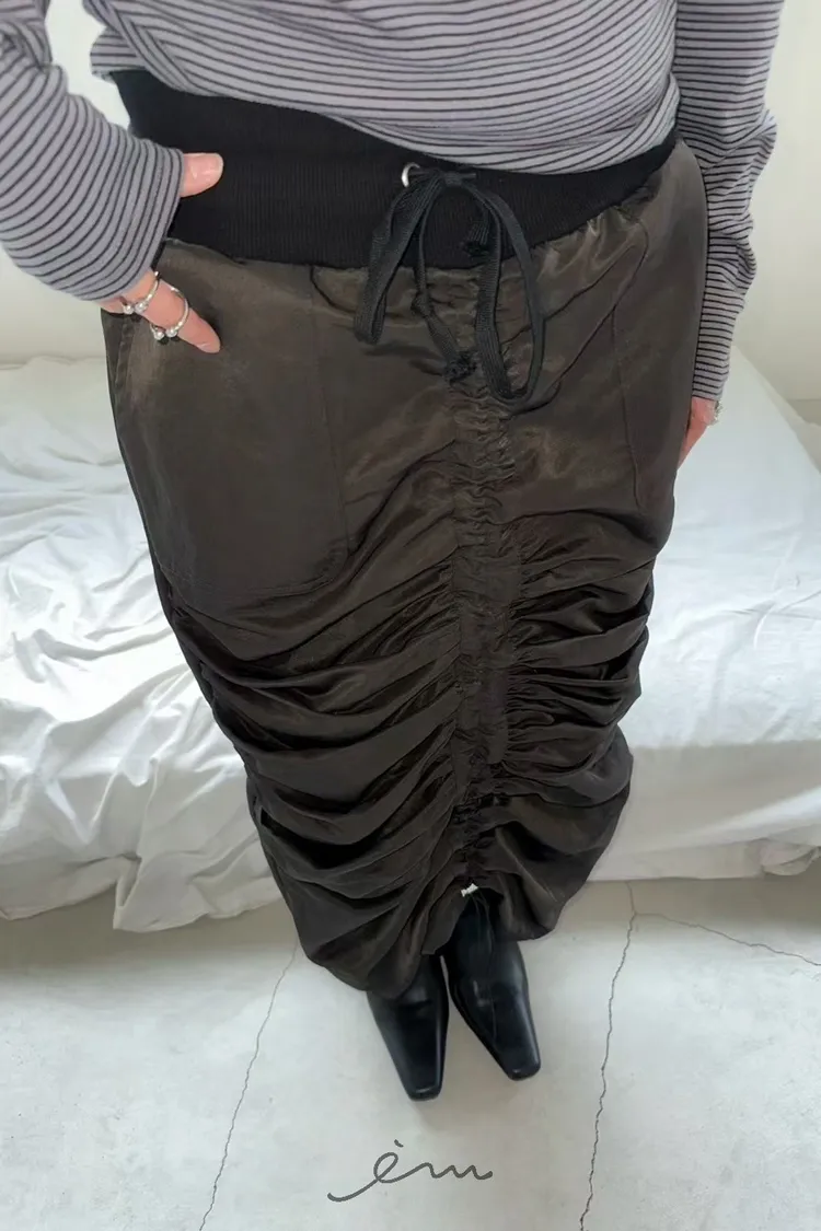 AW中間懶人抽抽繩長裙