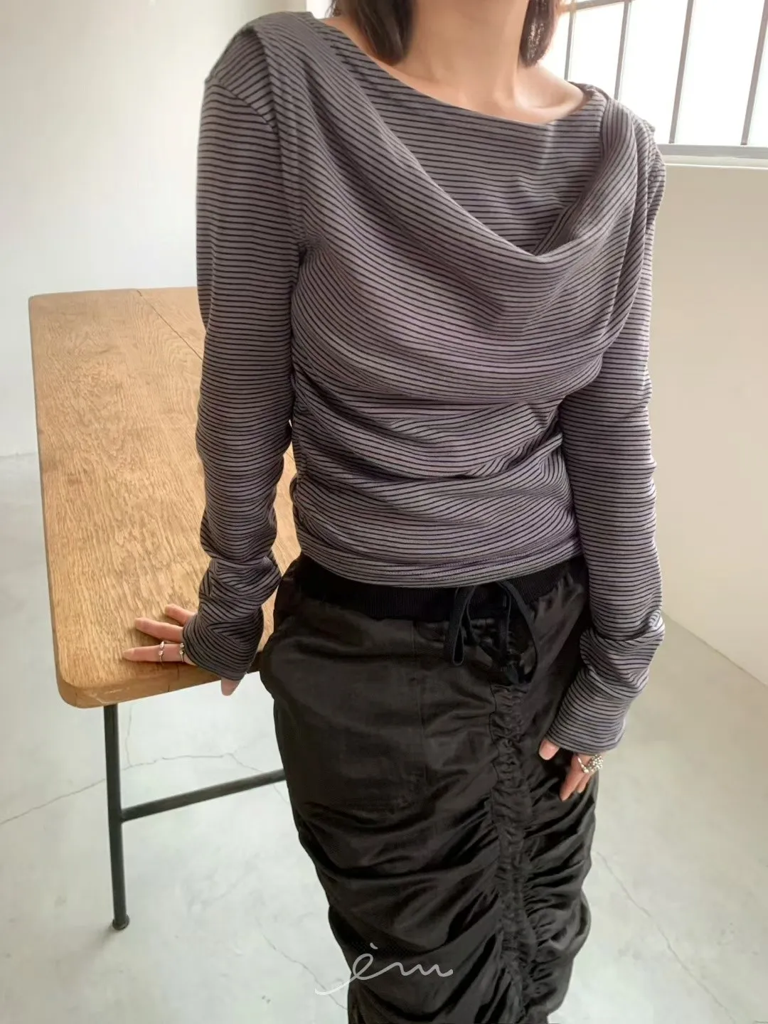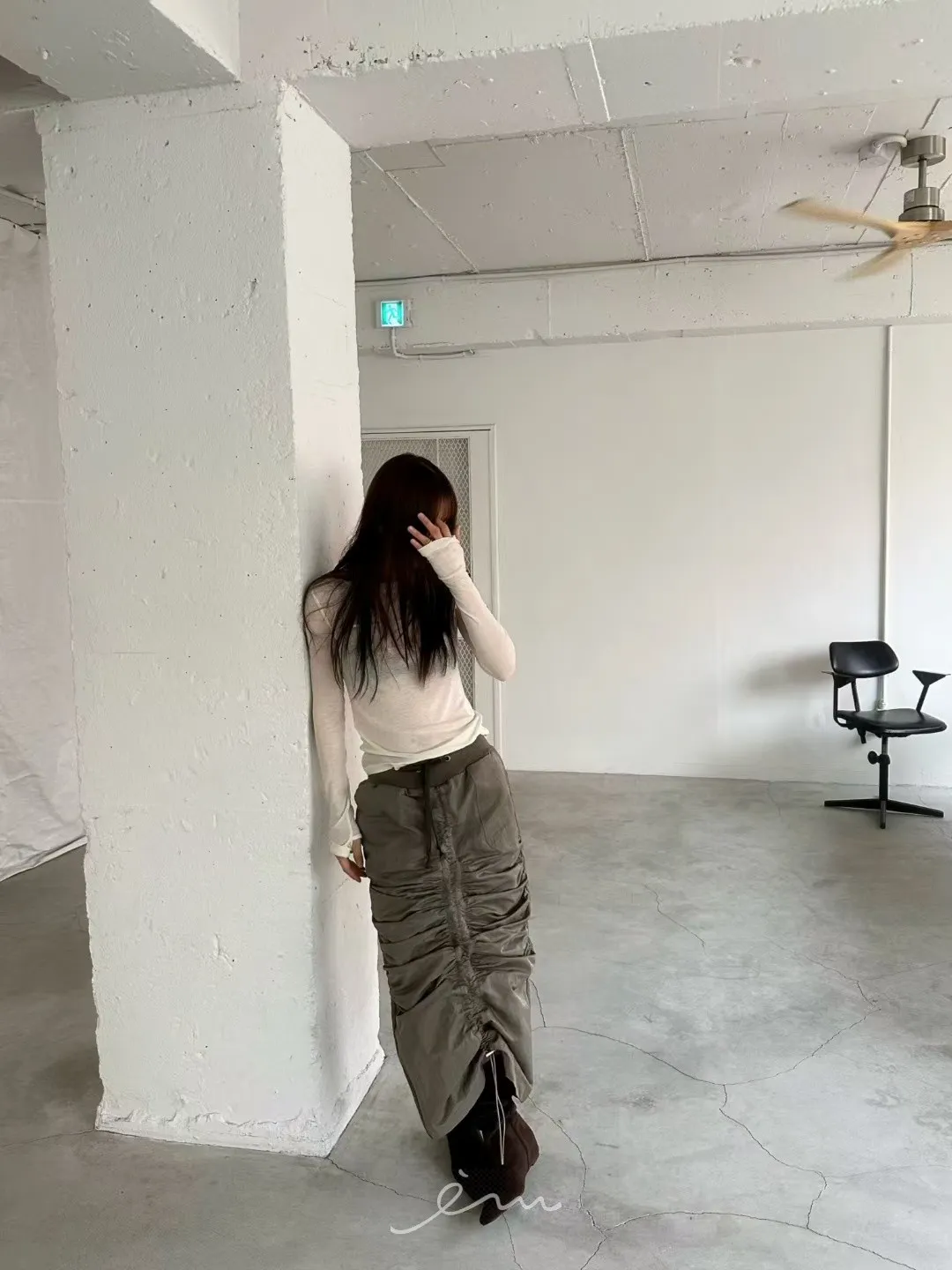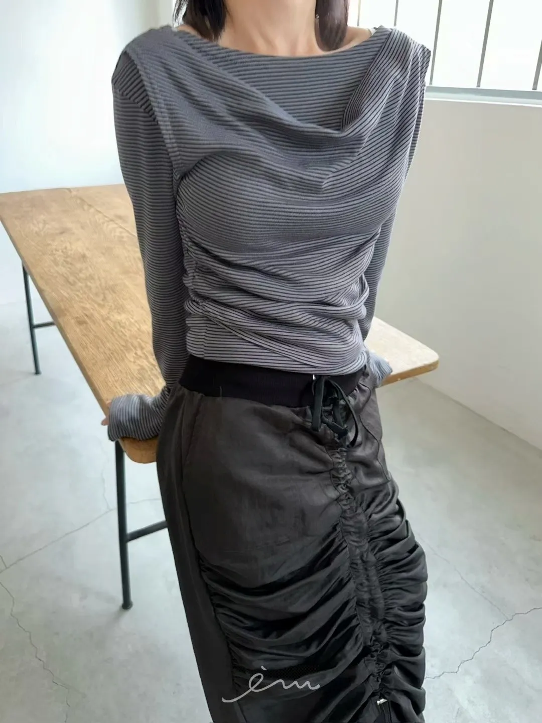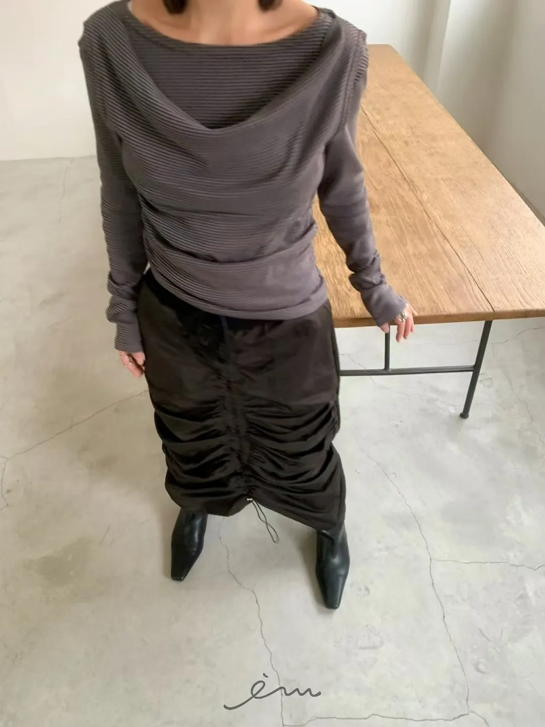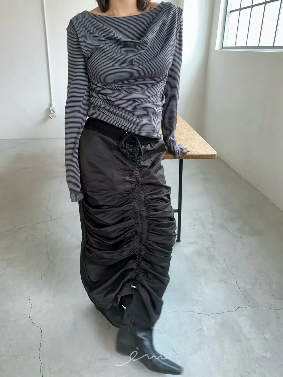 AW中間懶人抽抽繩長裙