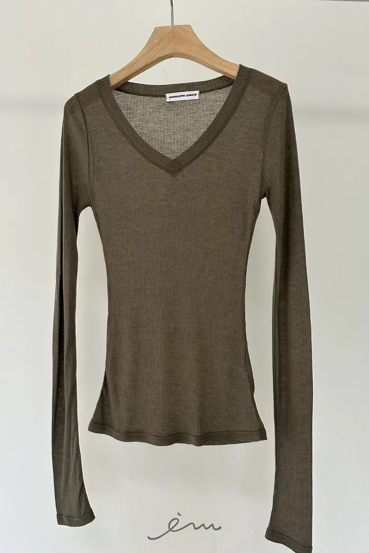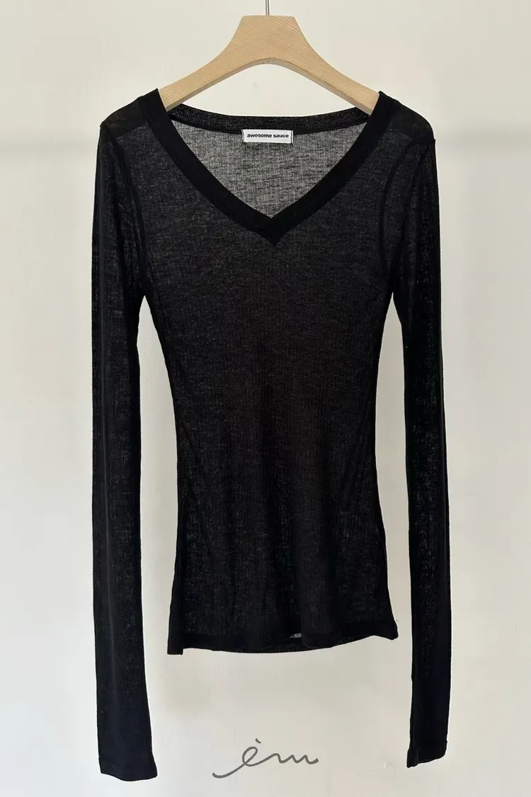AW-V領薄長袖T