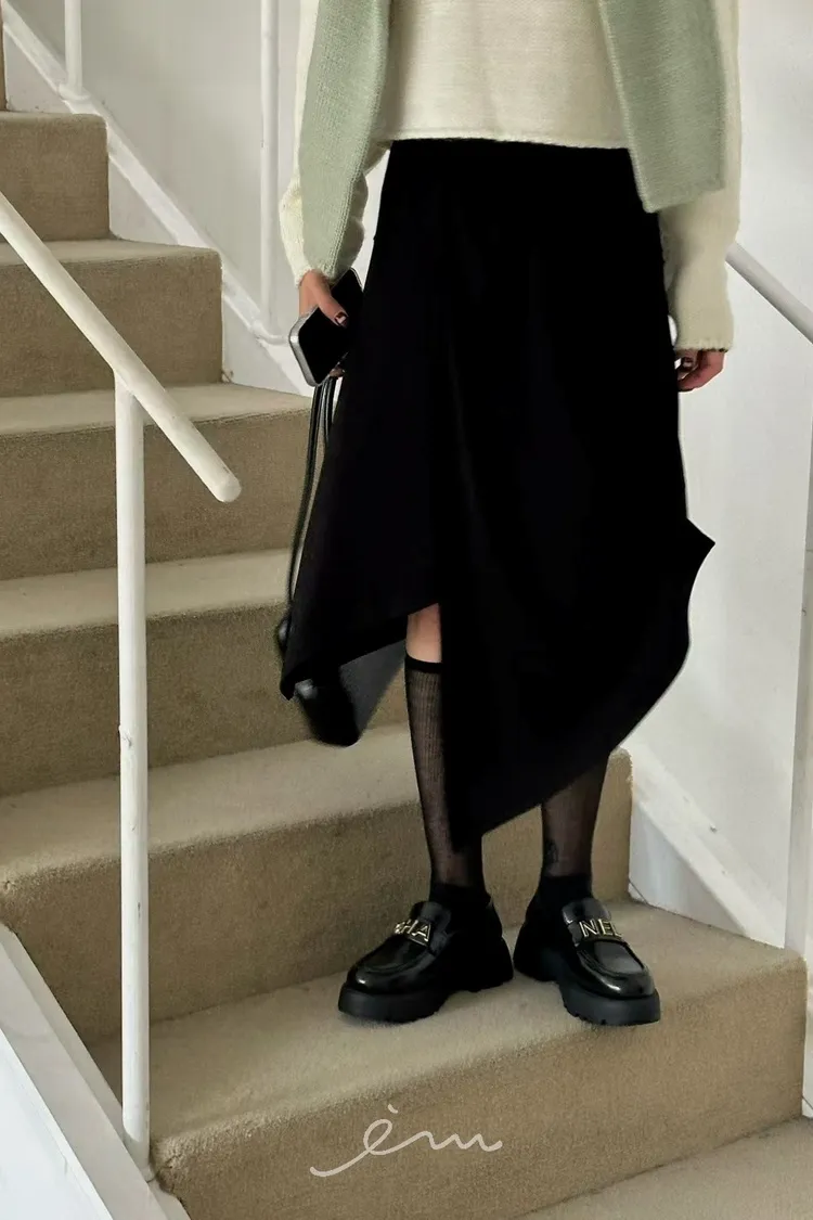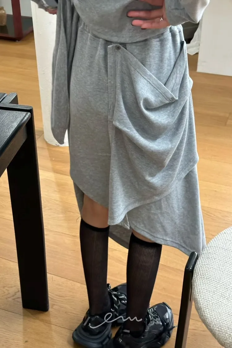 ZERO片裙式鈕釦不規則鬆緊長裙(肉0清單)