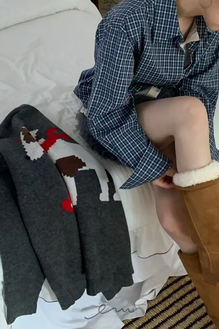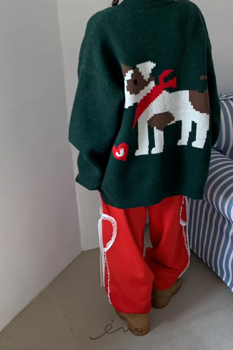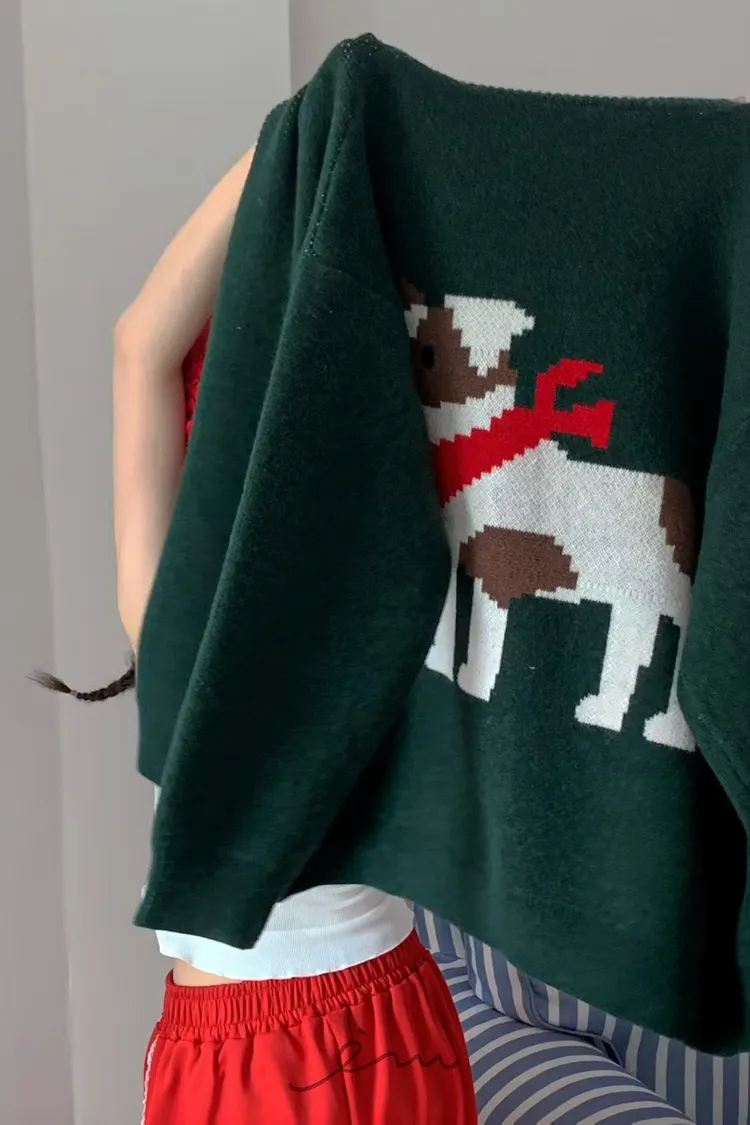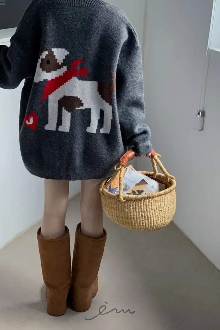 JK背後大狗狗圖案針織外套(50%羊毛)