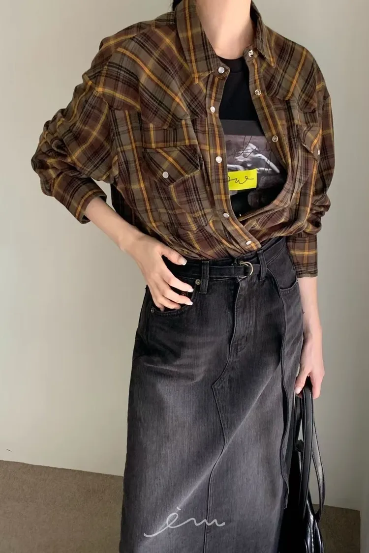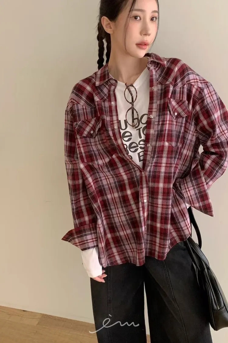 雙口袋鈕釦格紋襯衫(肉0清單)