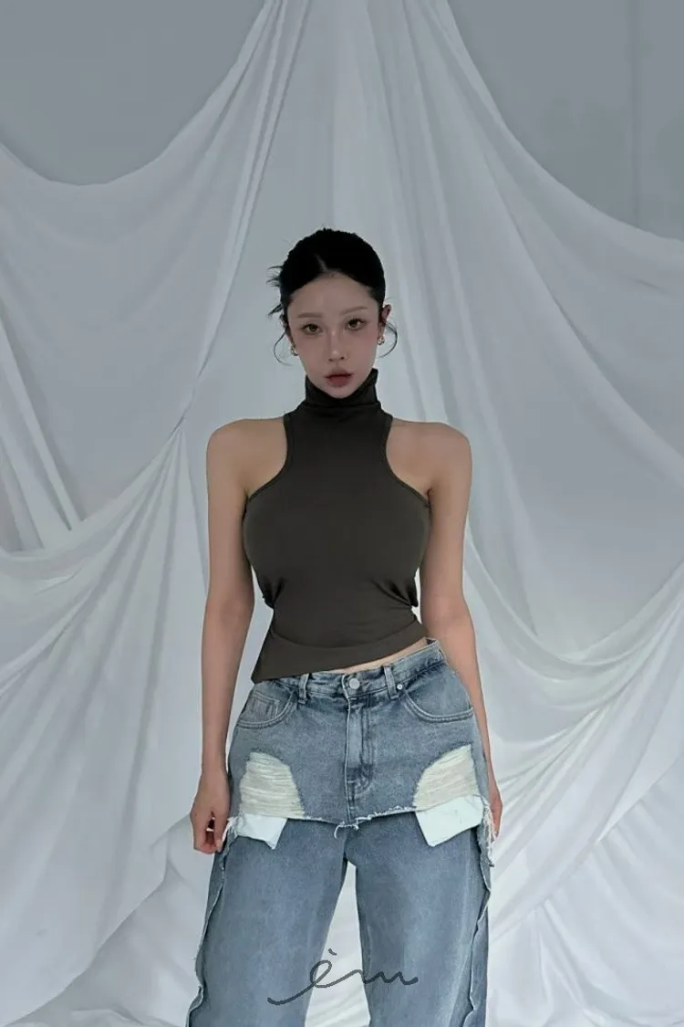 後綁帶高領削肩BRA TOP(肉0清單)