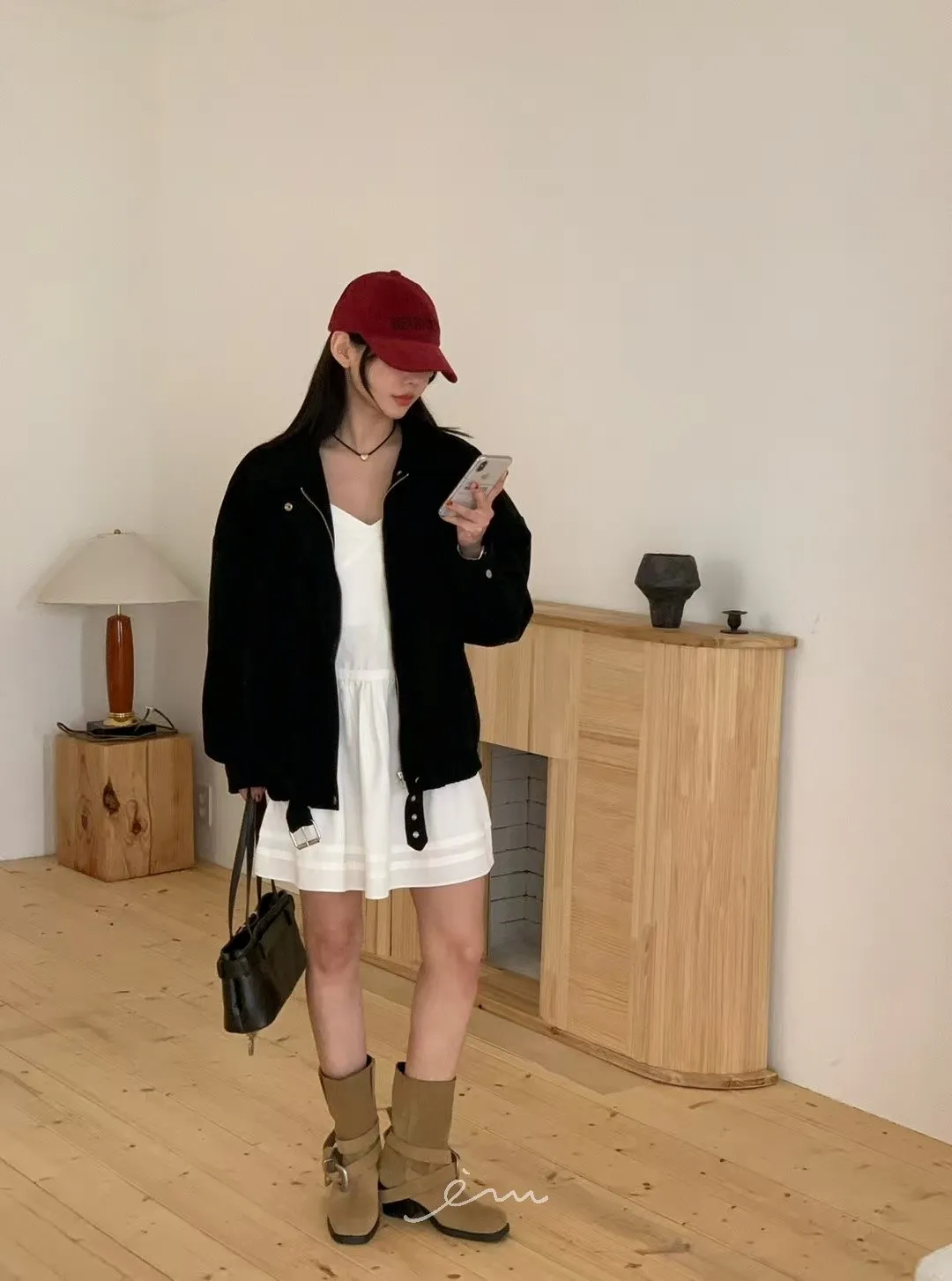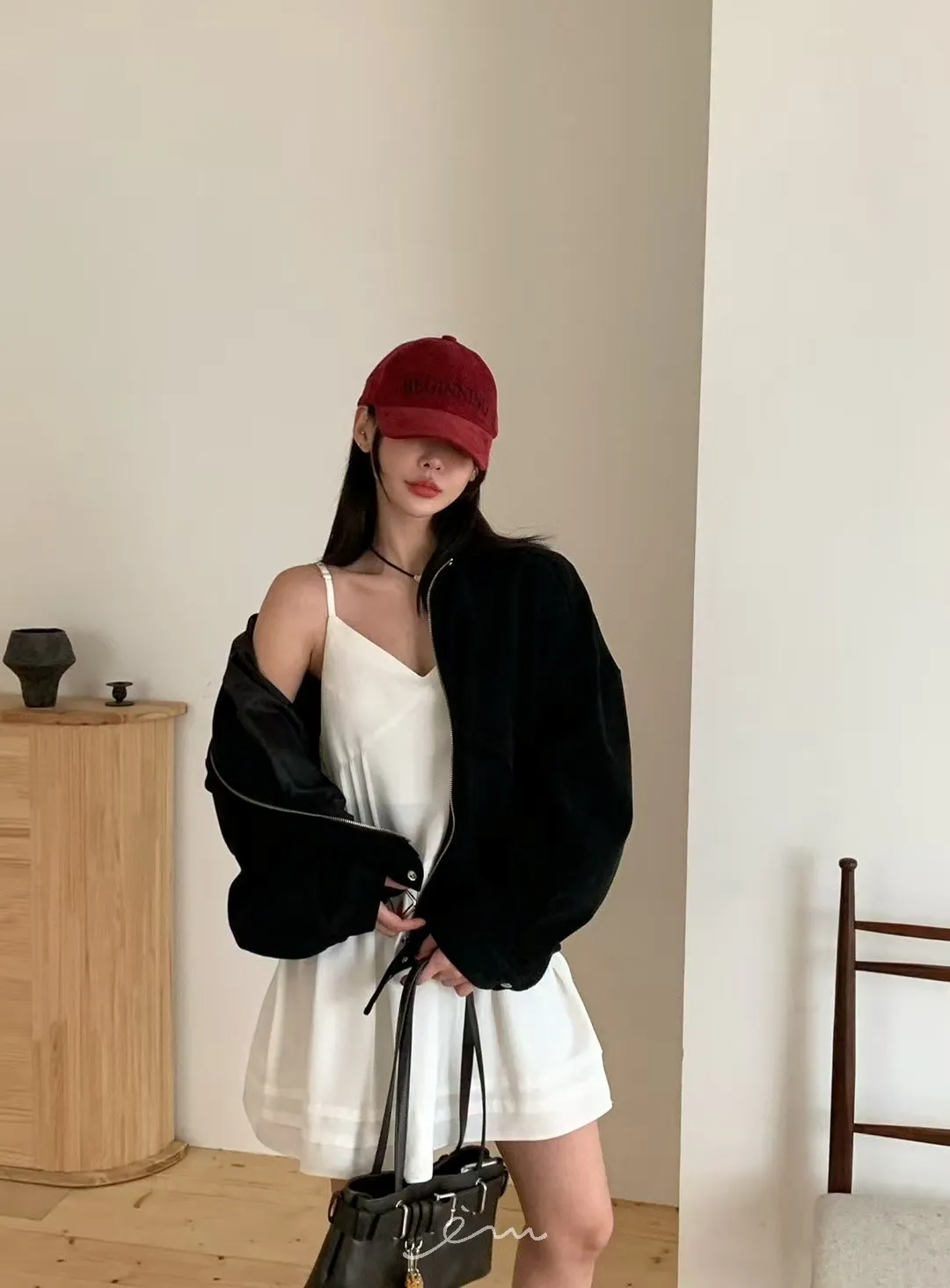 RE天絲微絨細肩V領短洋(肩帶可調)