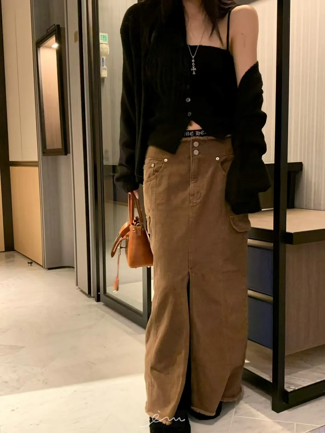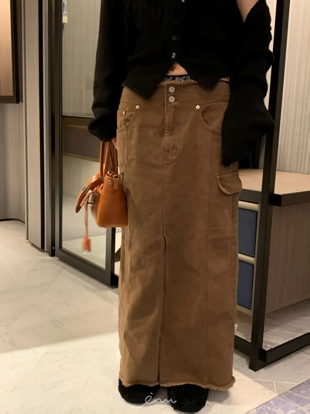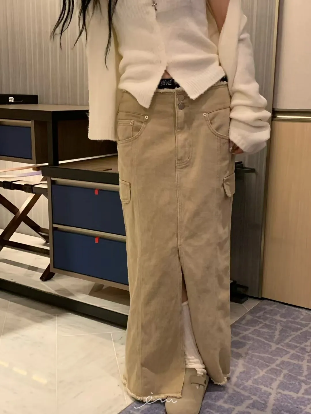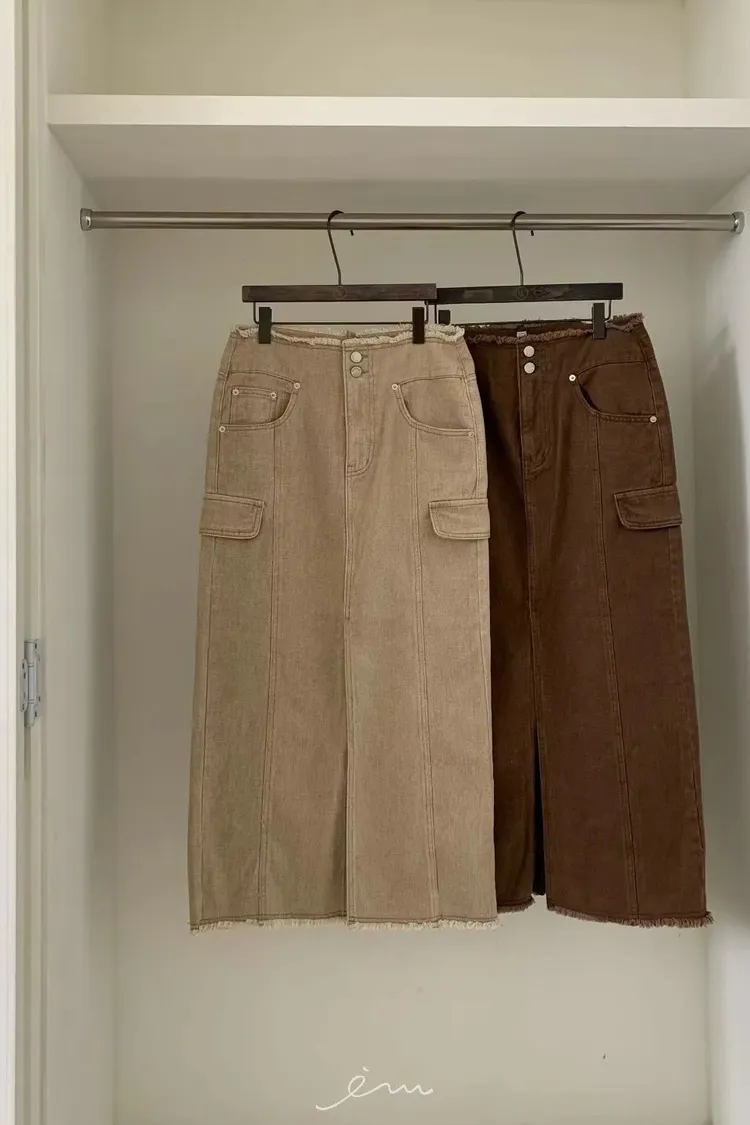 VK褲頭鬚鬚兩釦開岔長裙(sale)