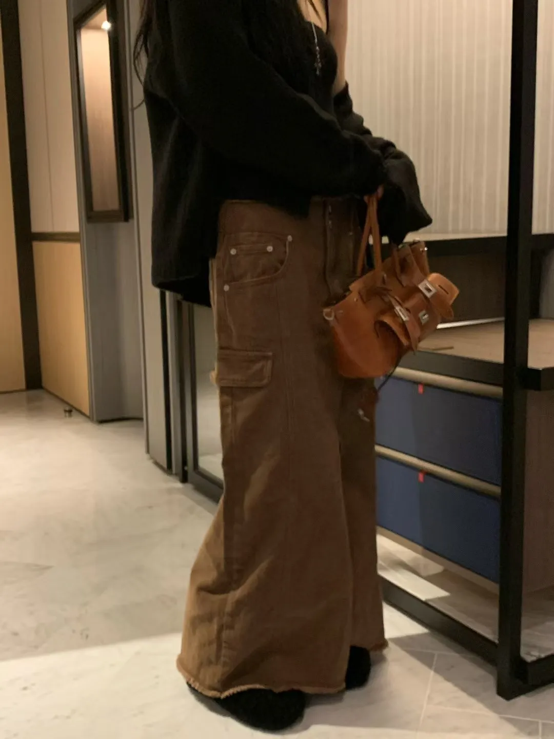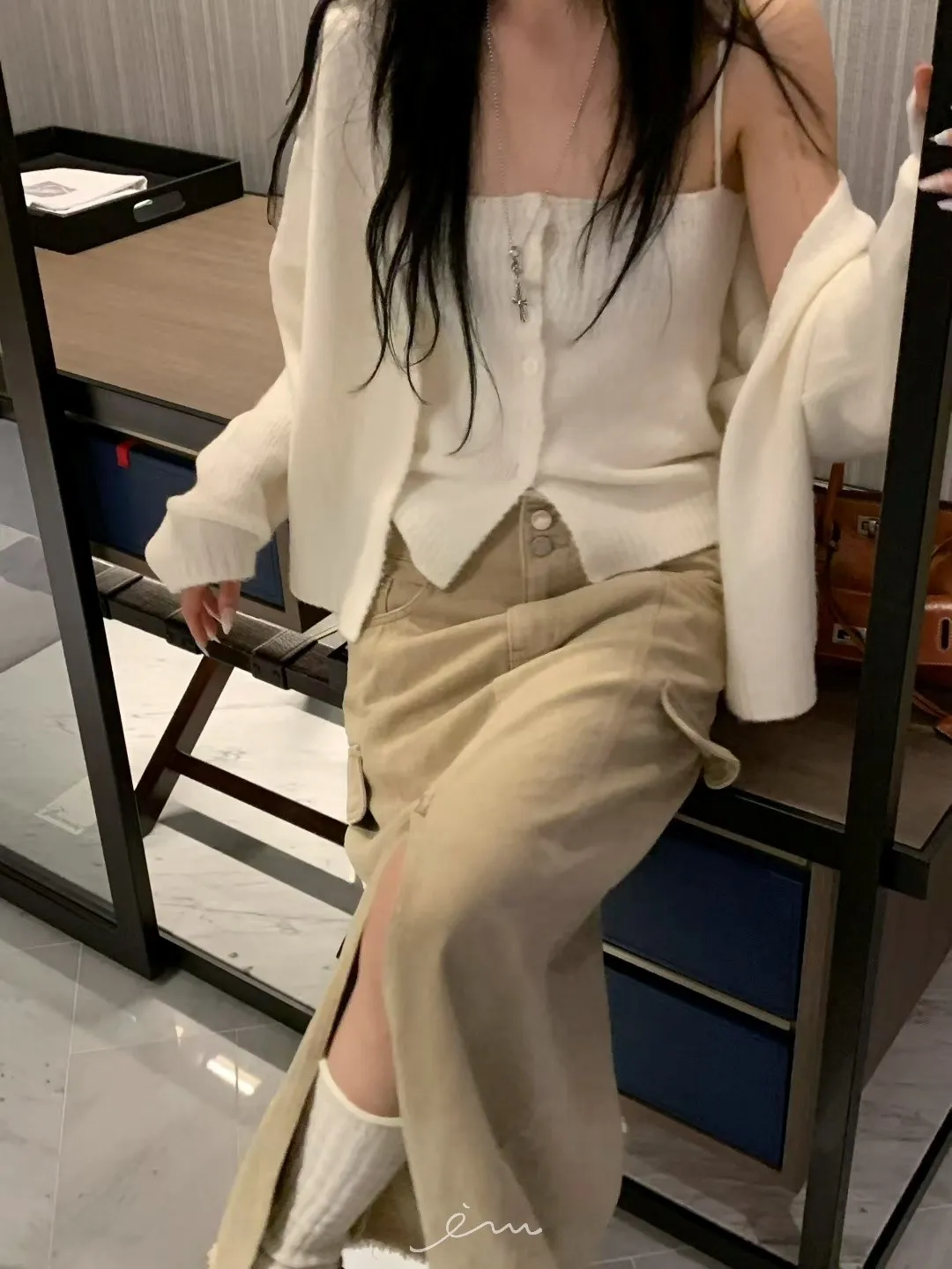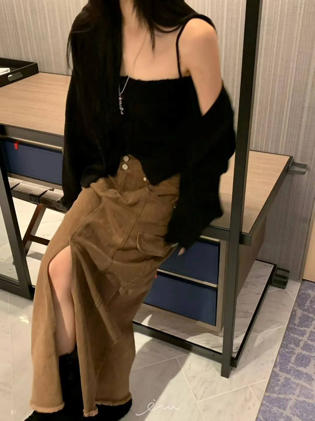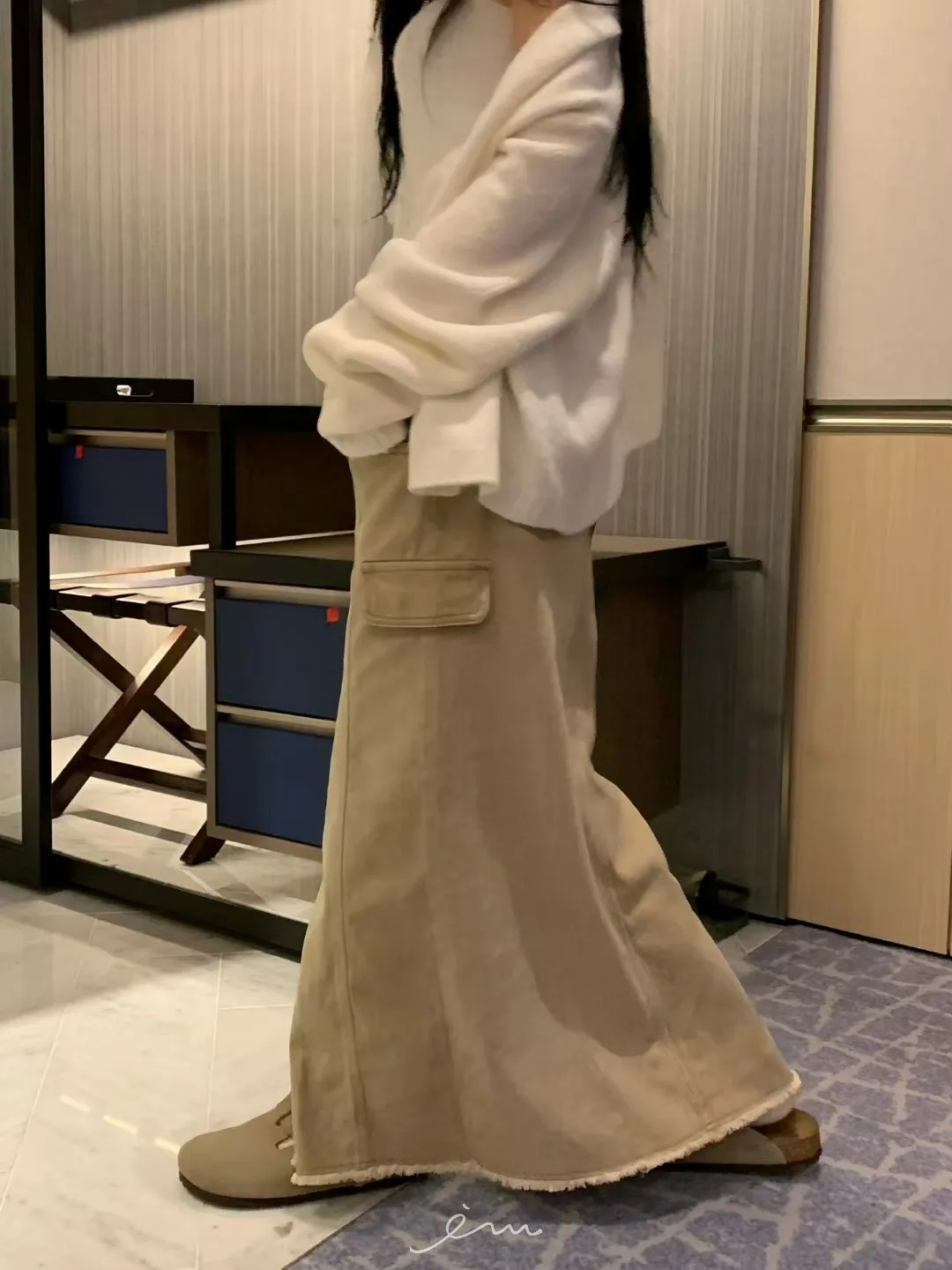 VK褲頭鬚鬚兩釦開岔長裙(sale)