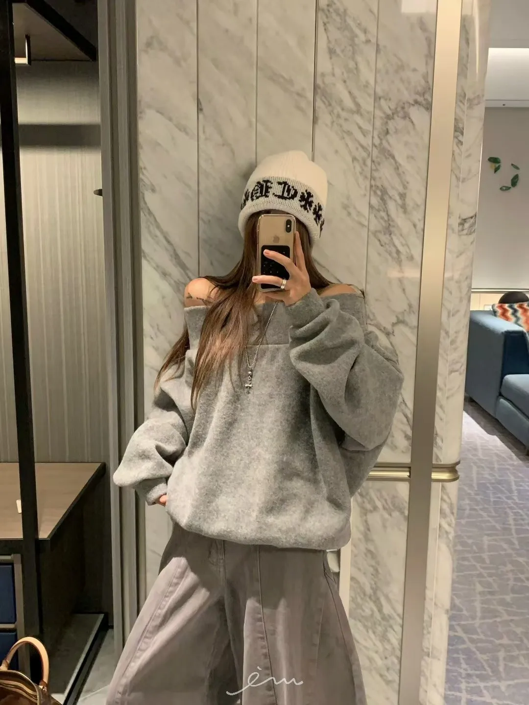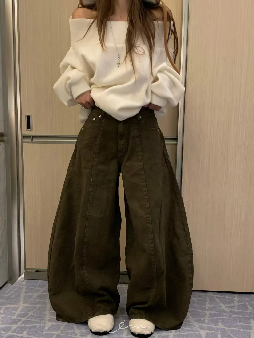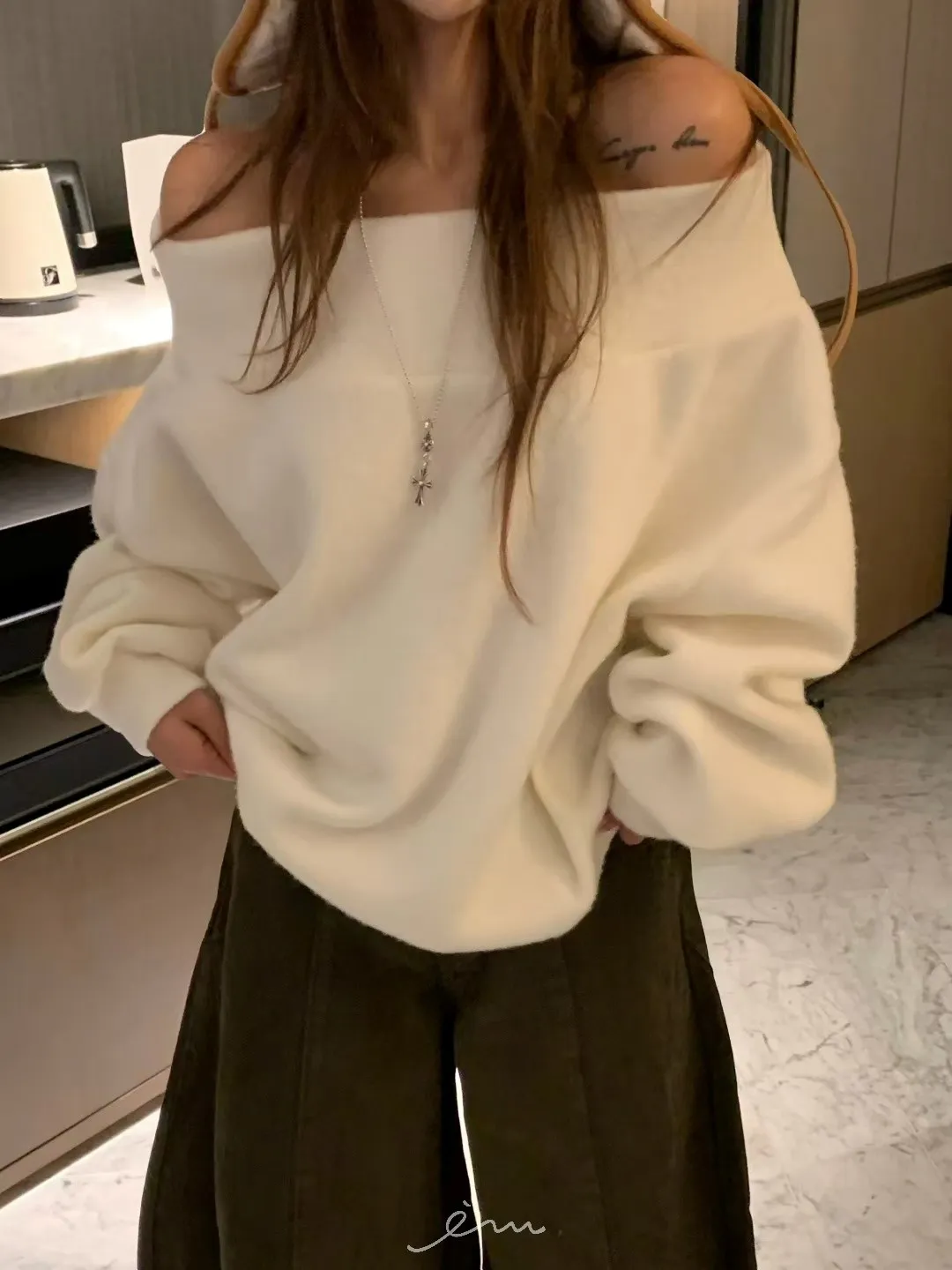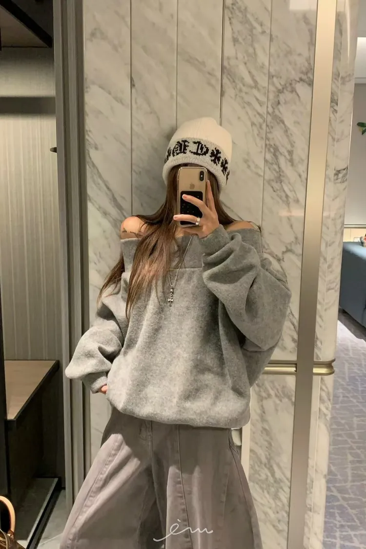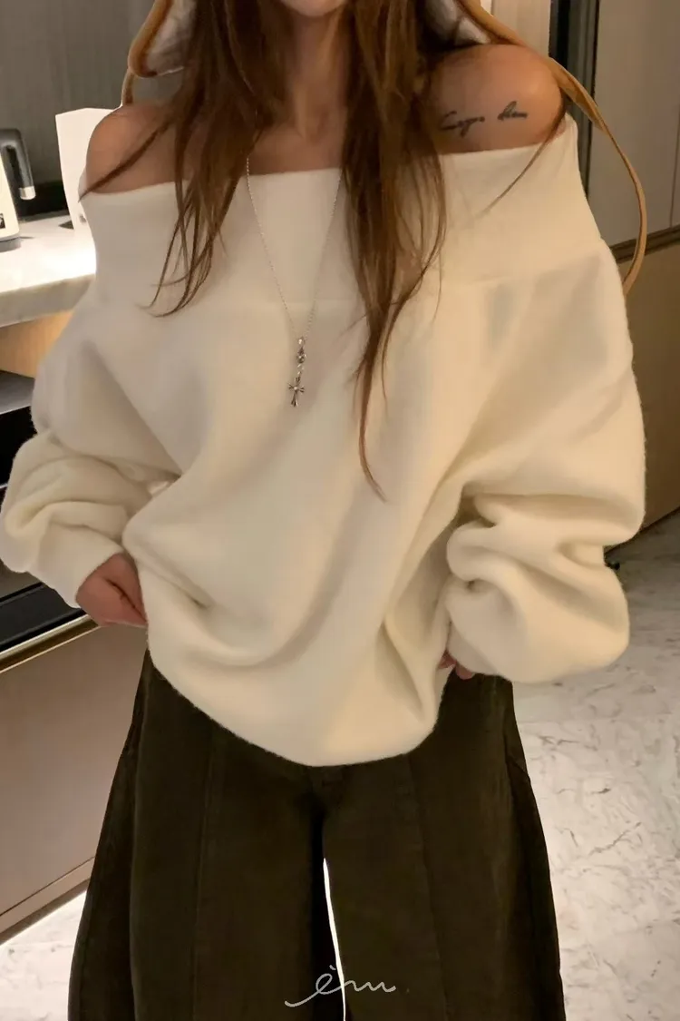 VK羊毛一字領寬鬆素面衣