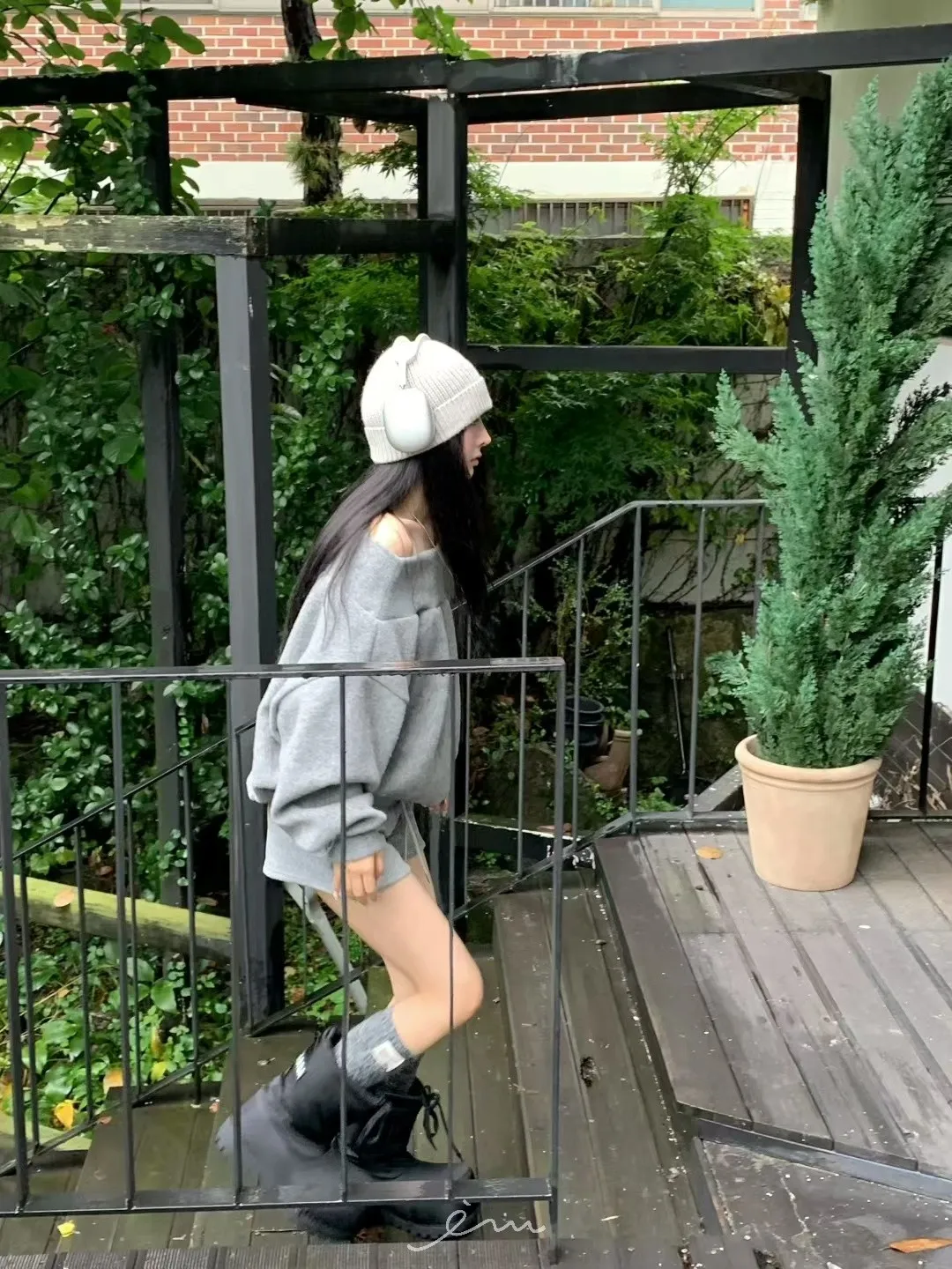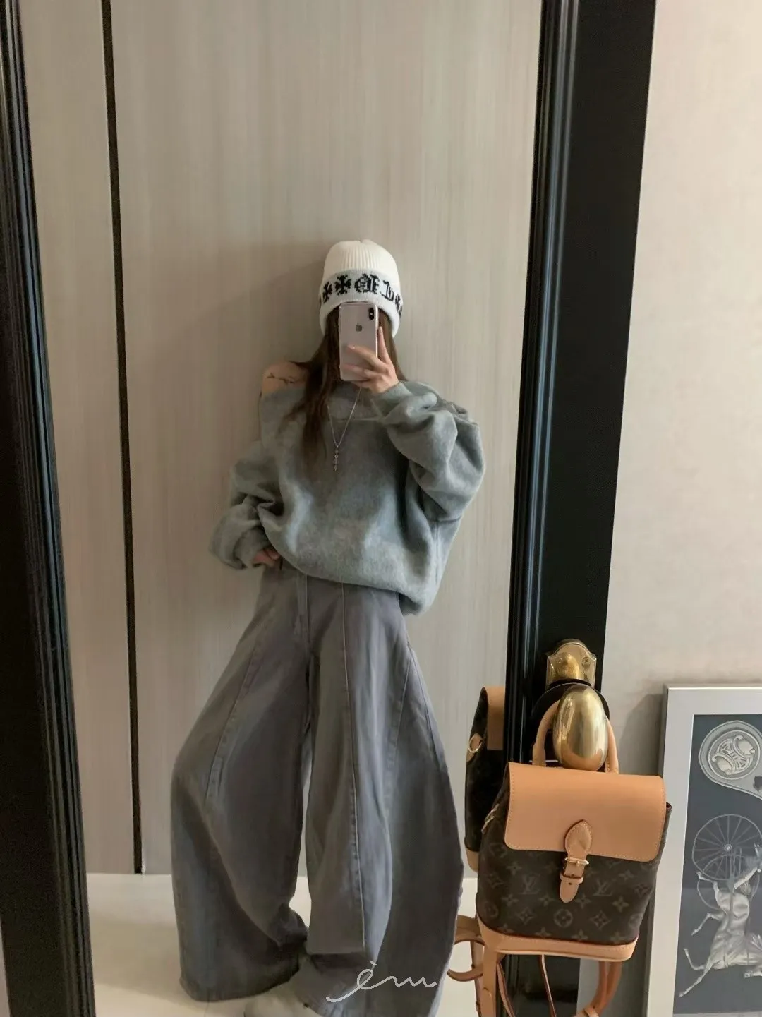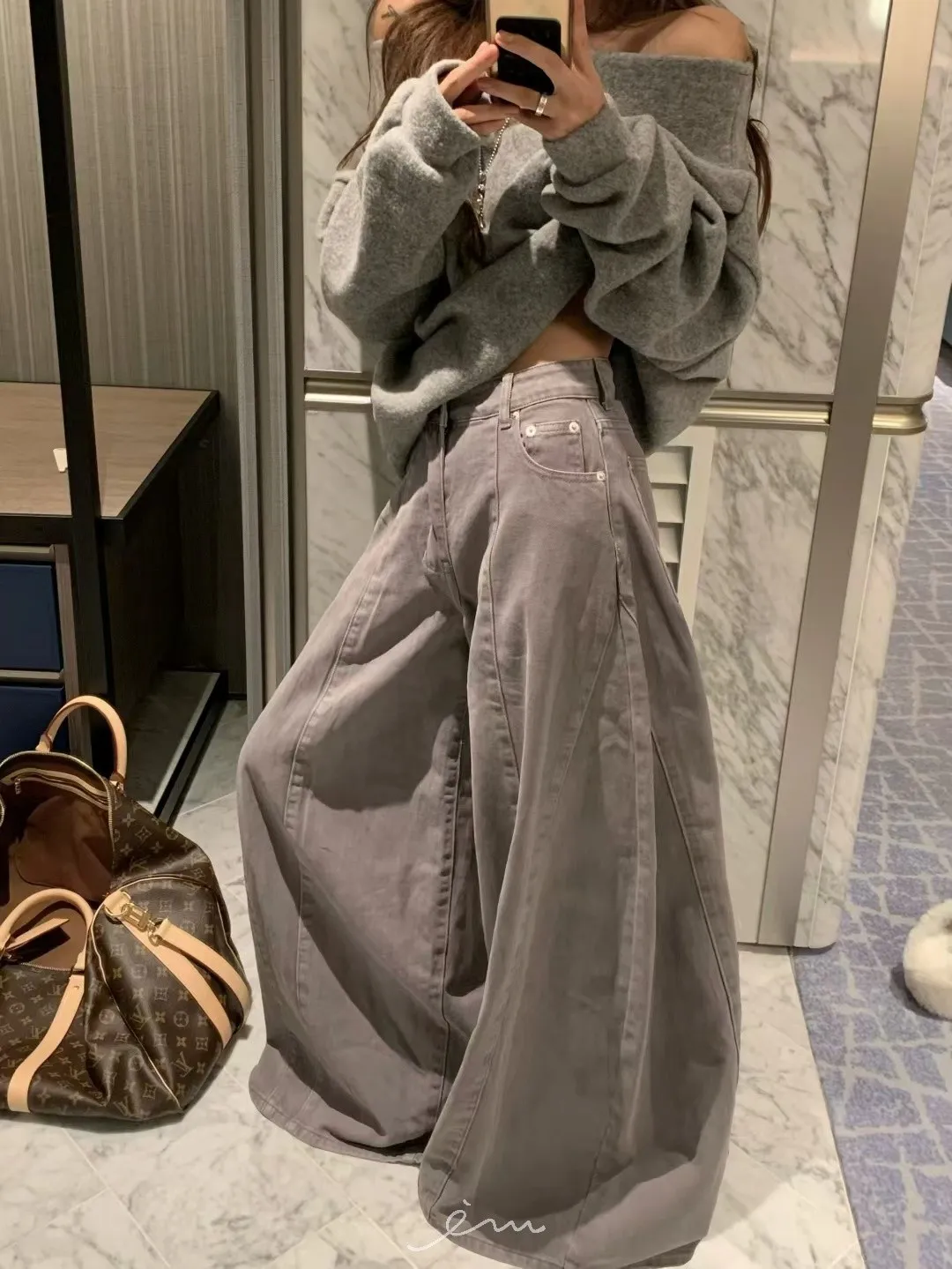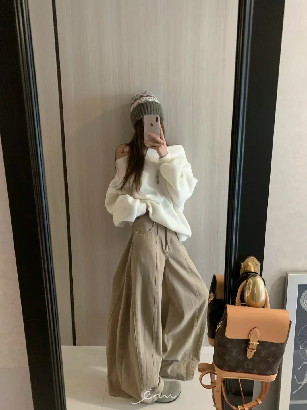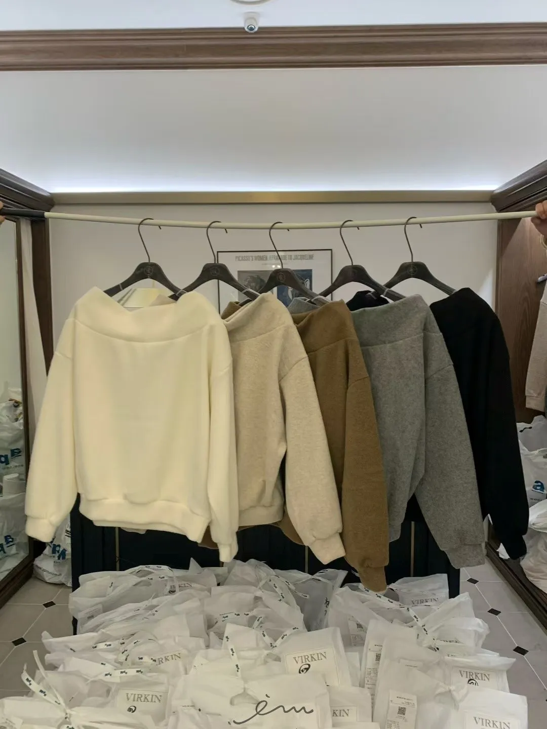 VK羊毛一字領寬鬆素面衣