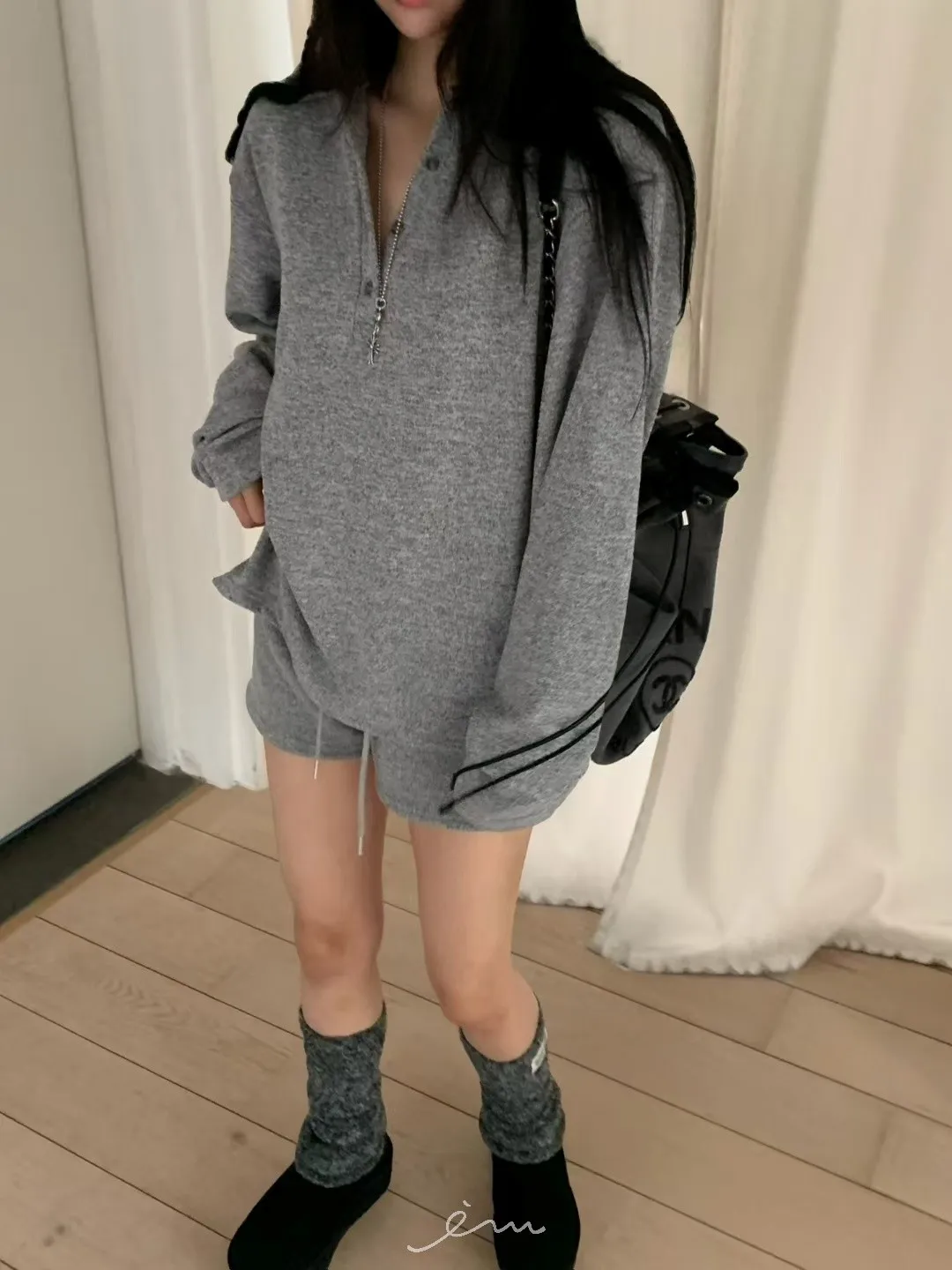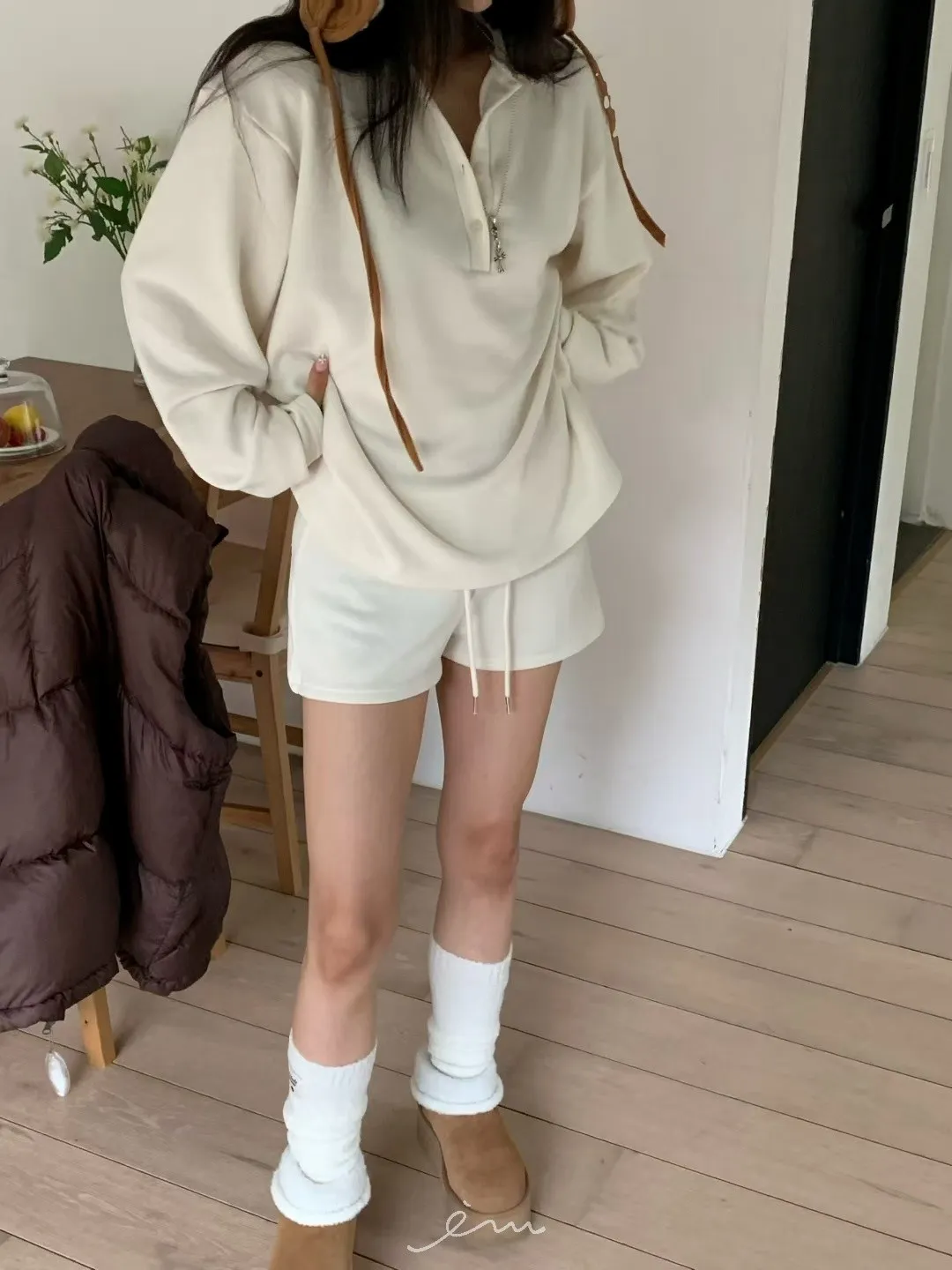 VK羊毛素面抽繩小短褲