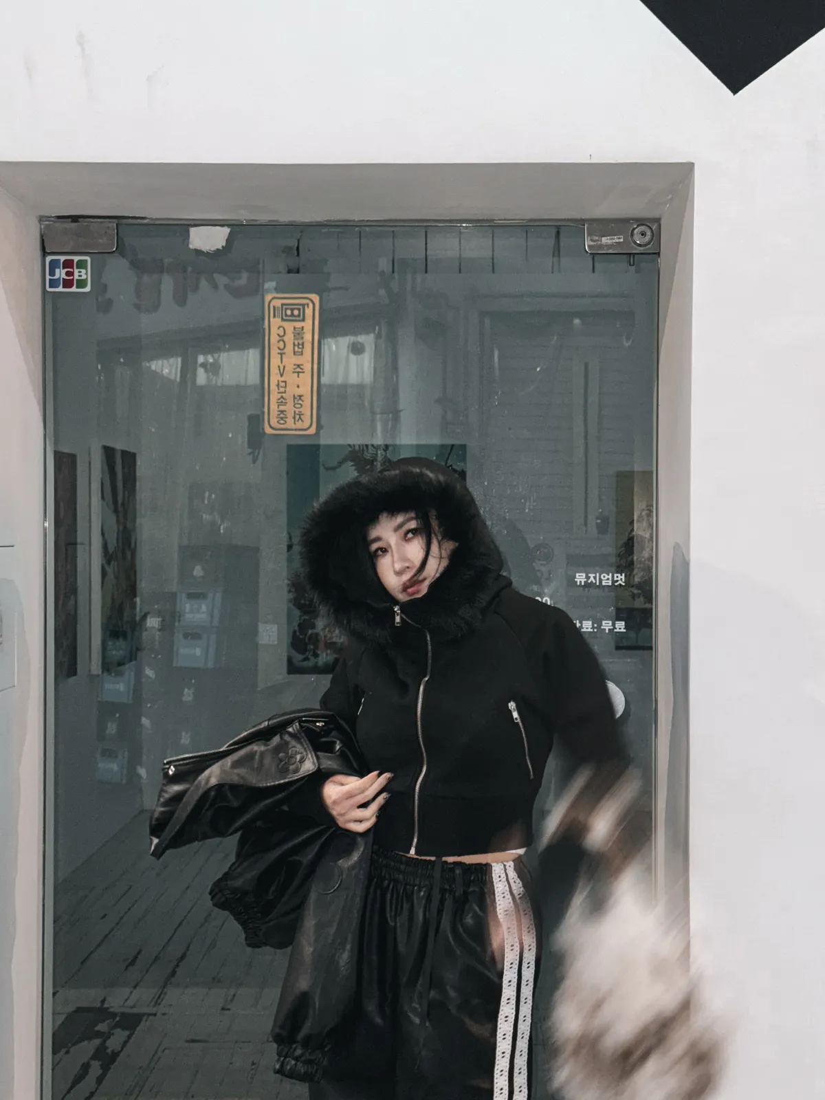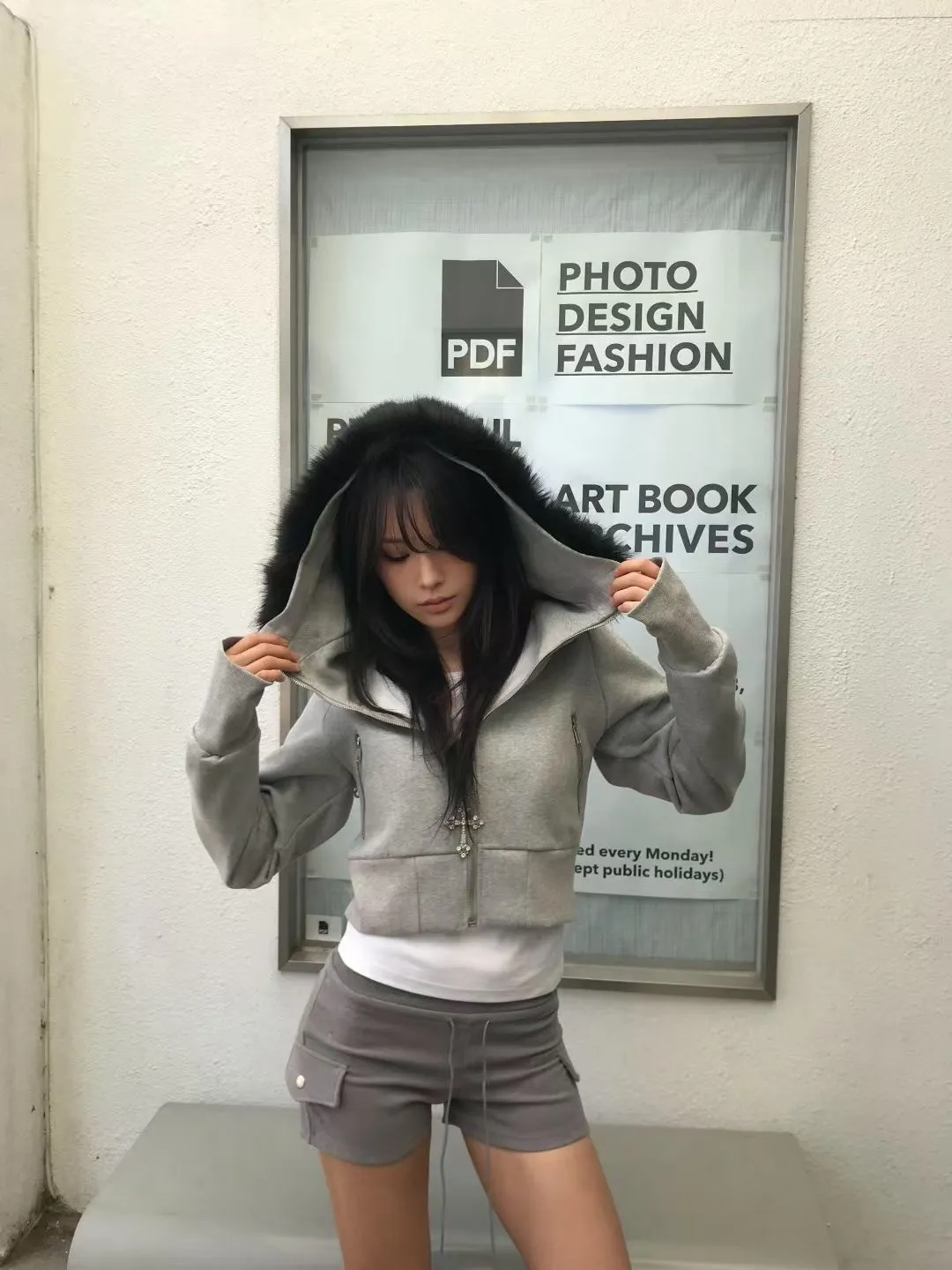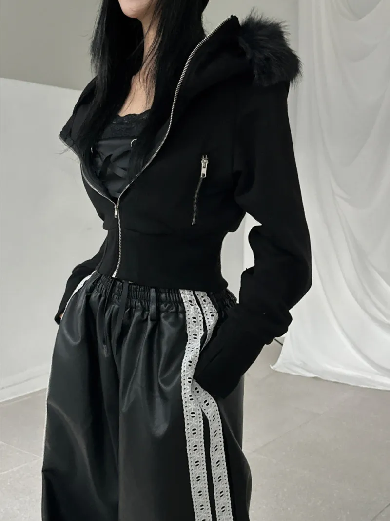 縮腰感連帽絨毛拉鍊外套