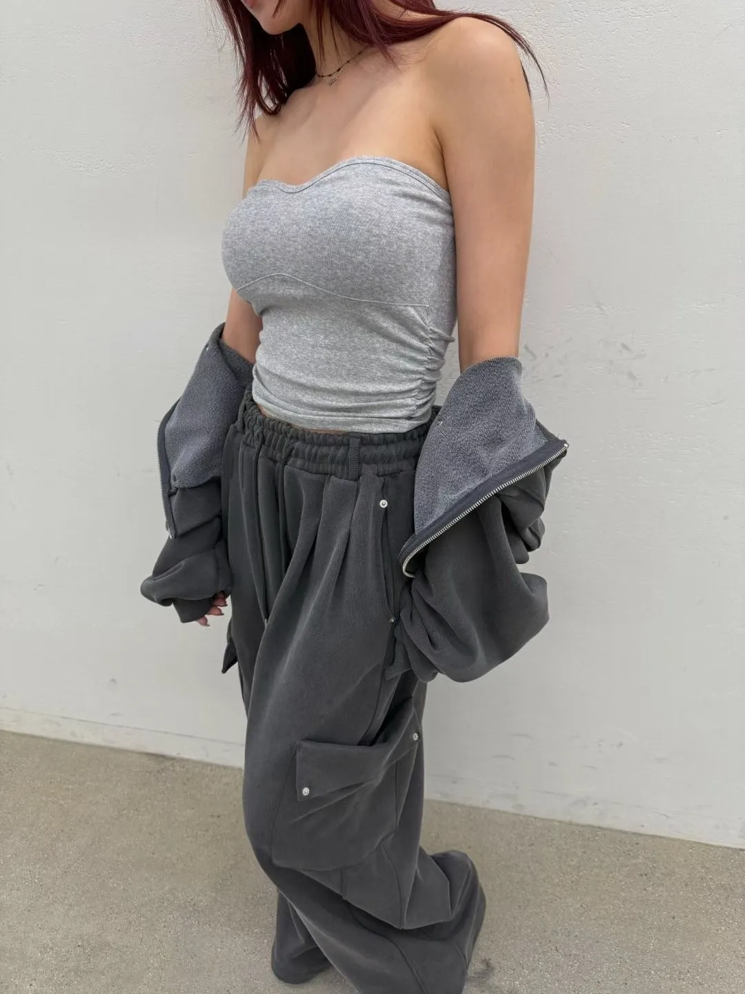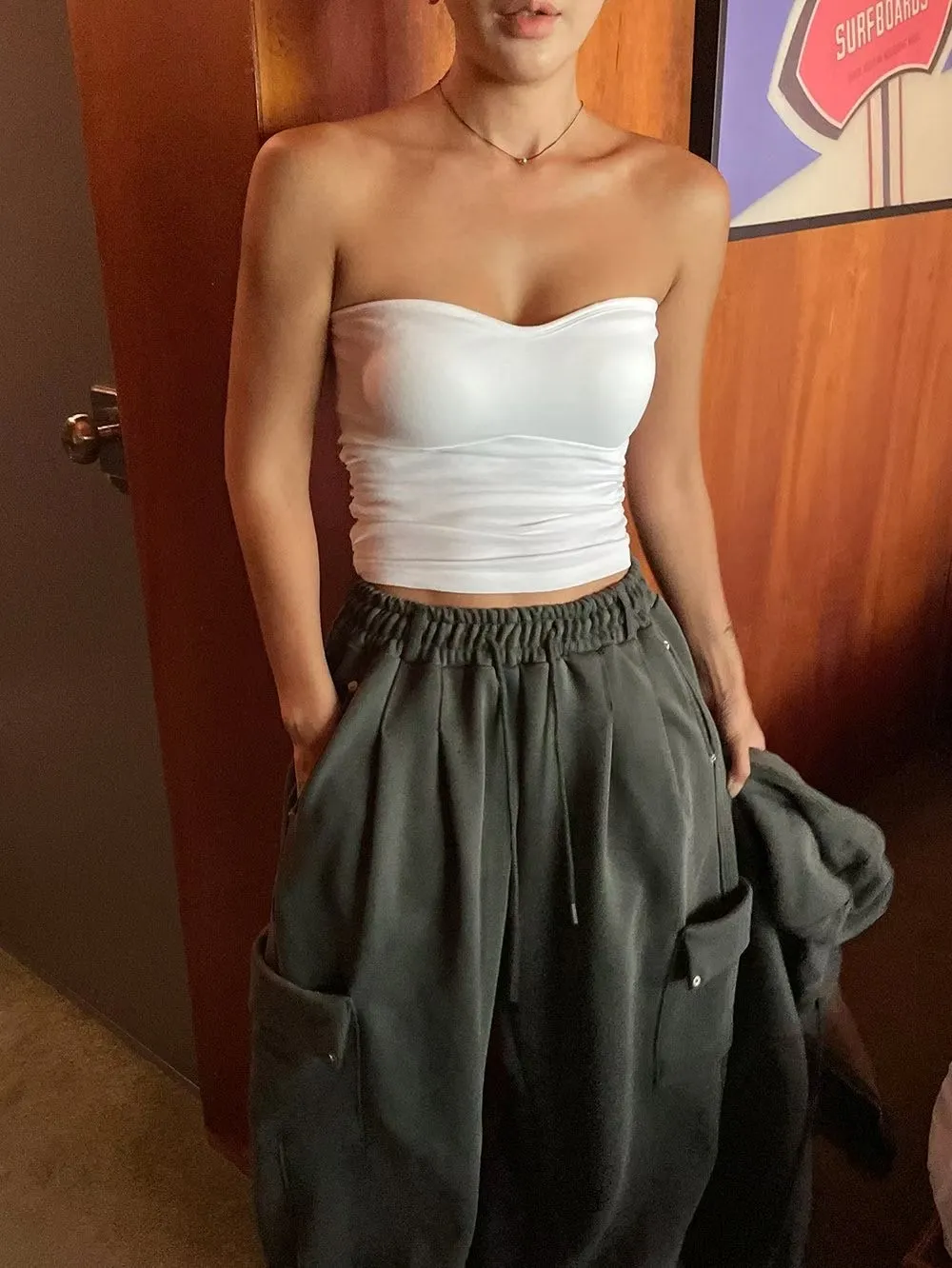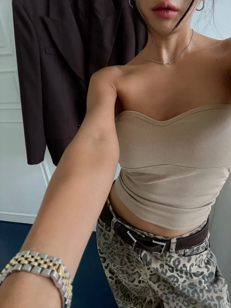 桃心領側抓皺BRA TOP(罩杯不能拆)
