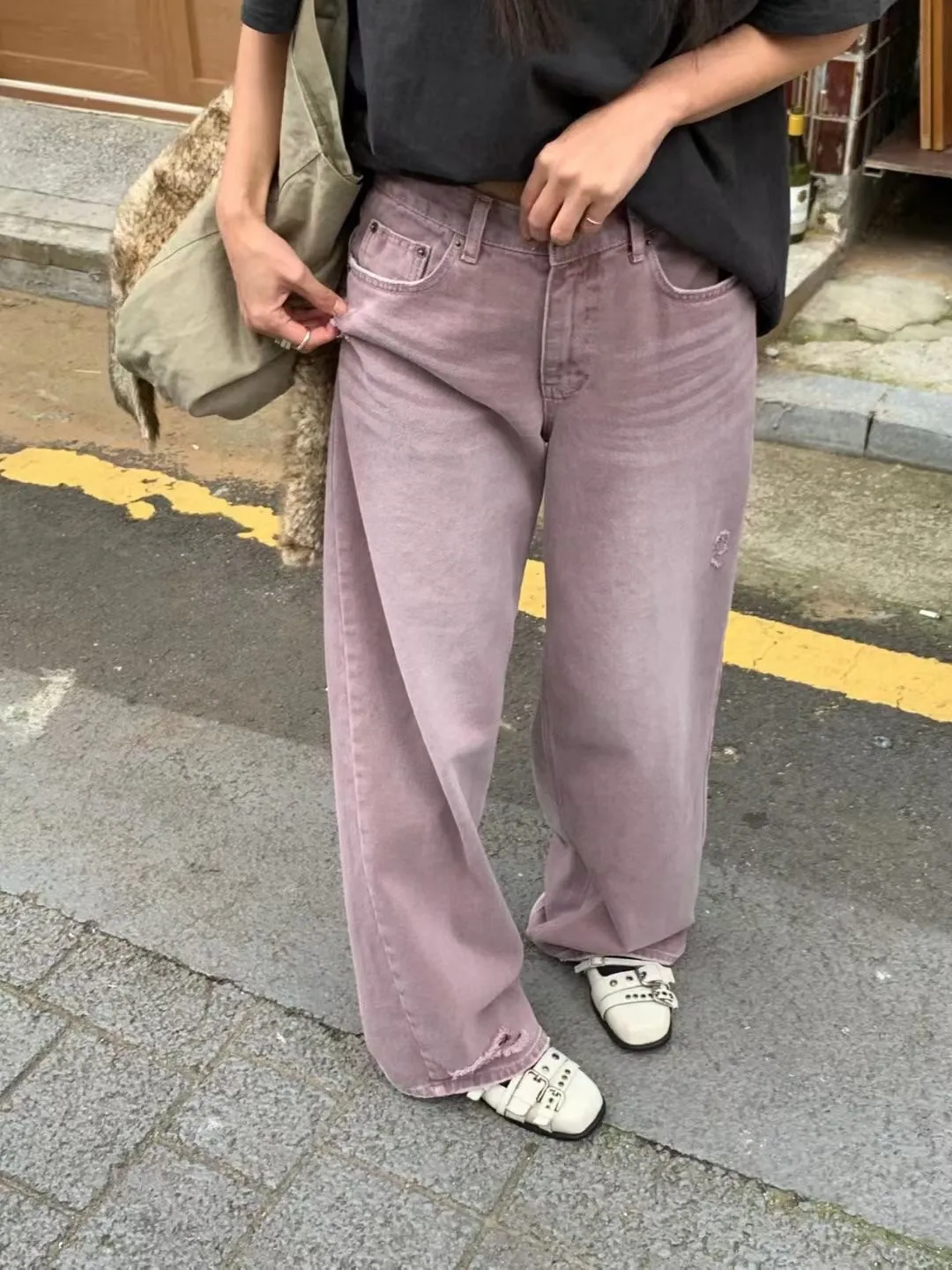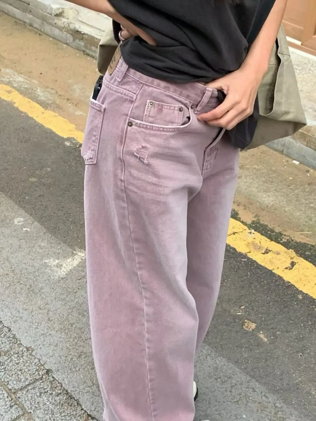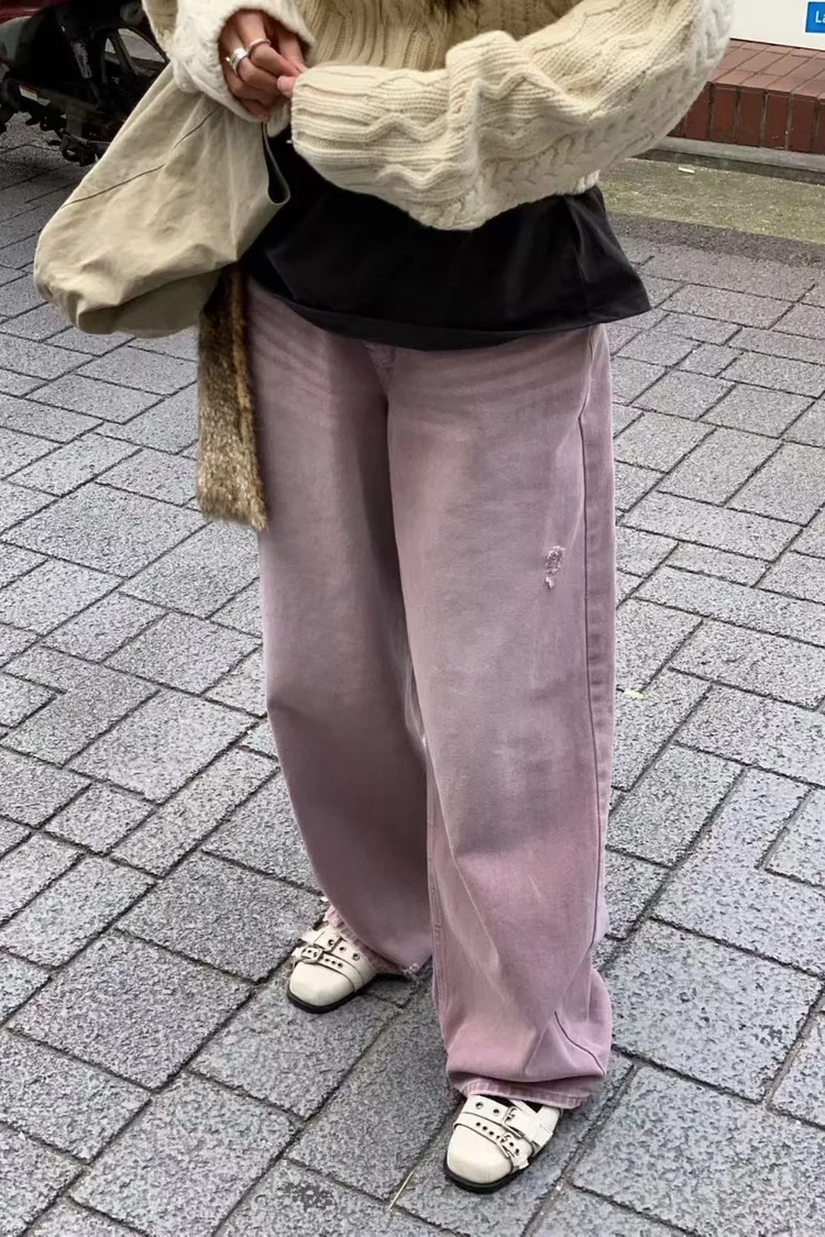 小刷破粉紫牛仔褲