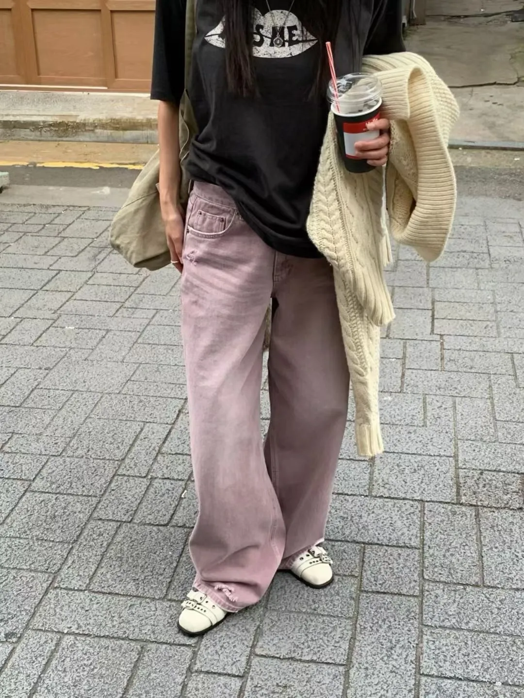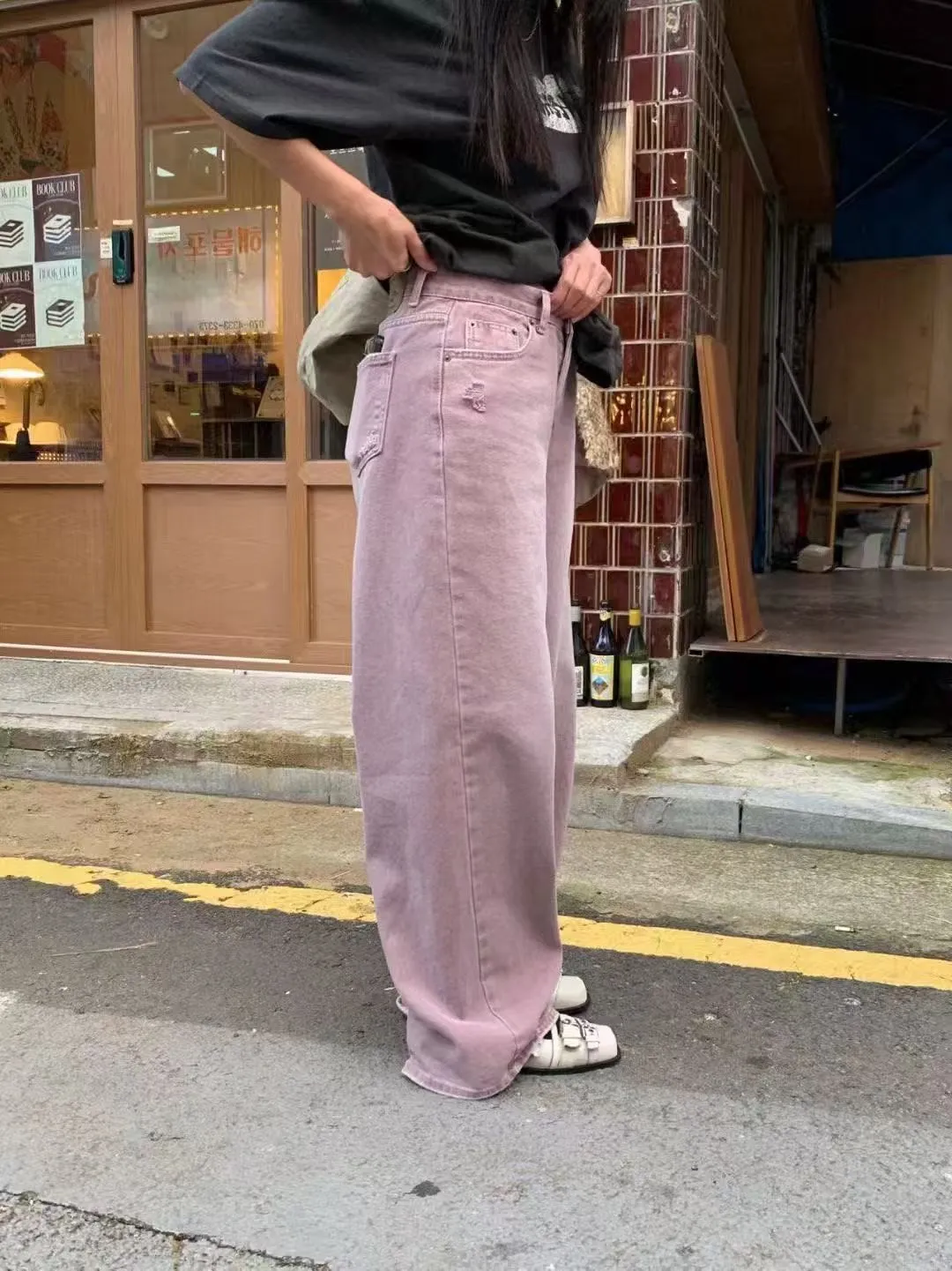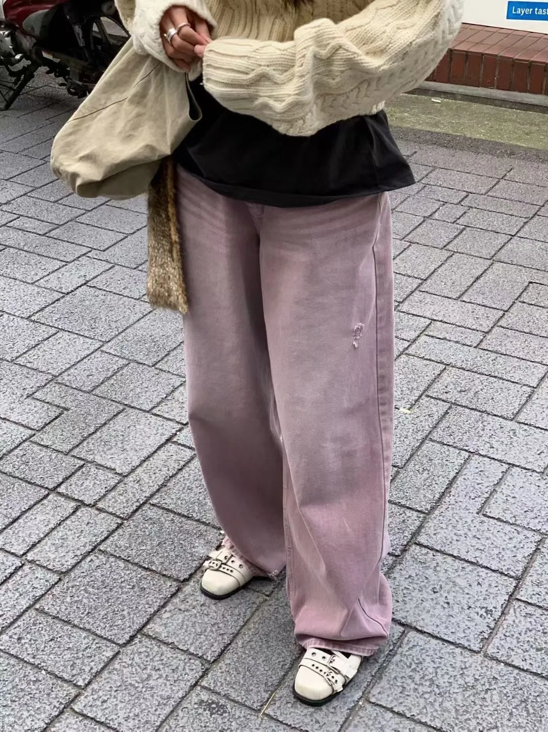 小刷破粉紫牛仔褲
