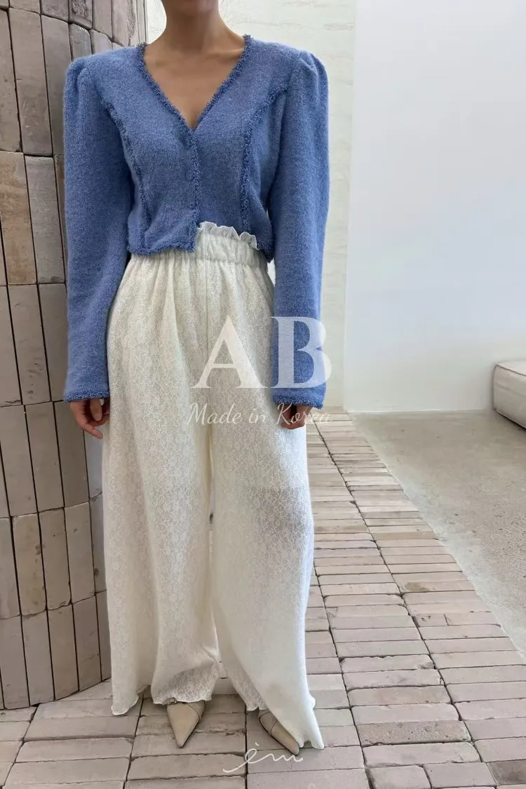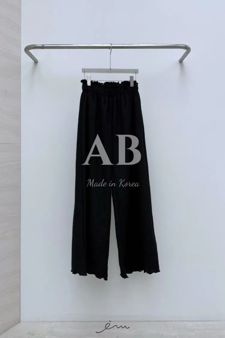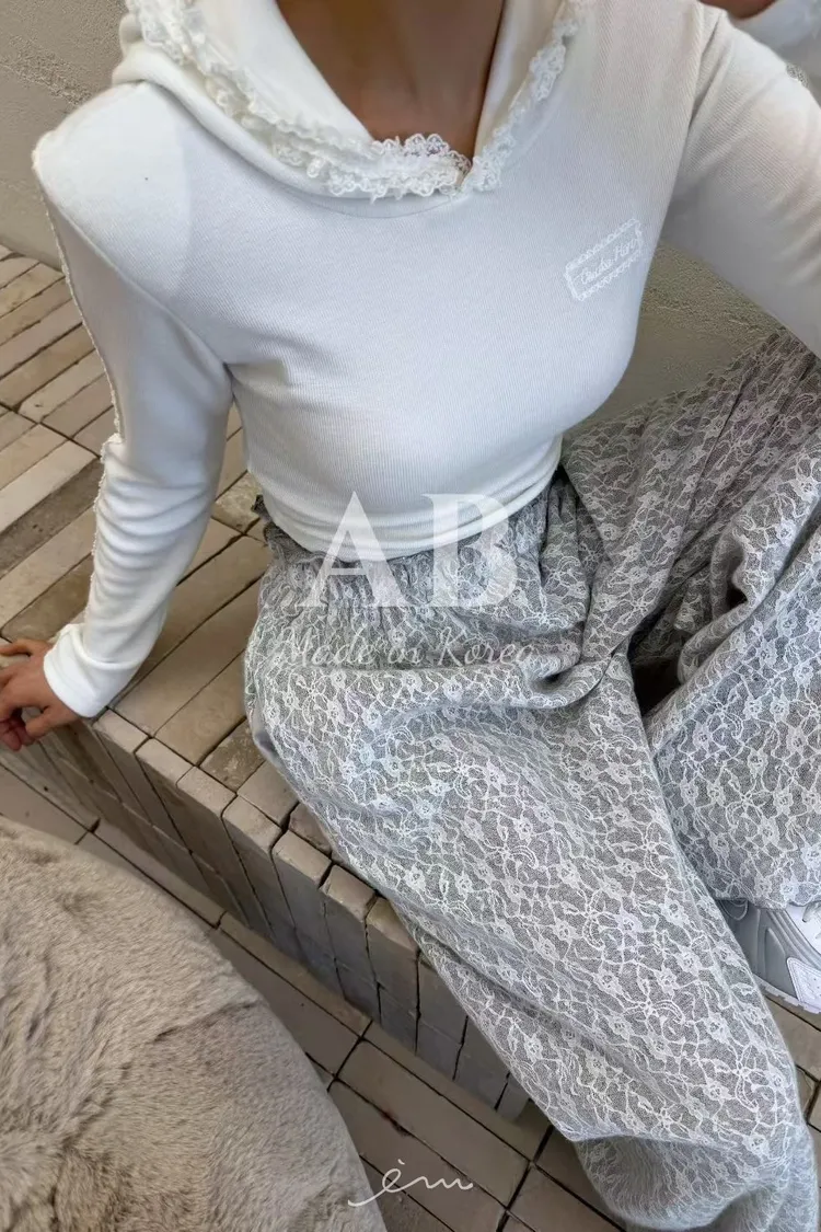 捲邊蕾絲鬆緊長褲(灰.白斷)