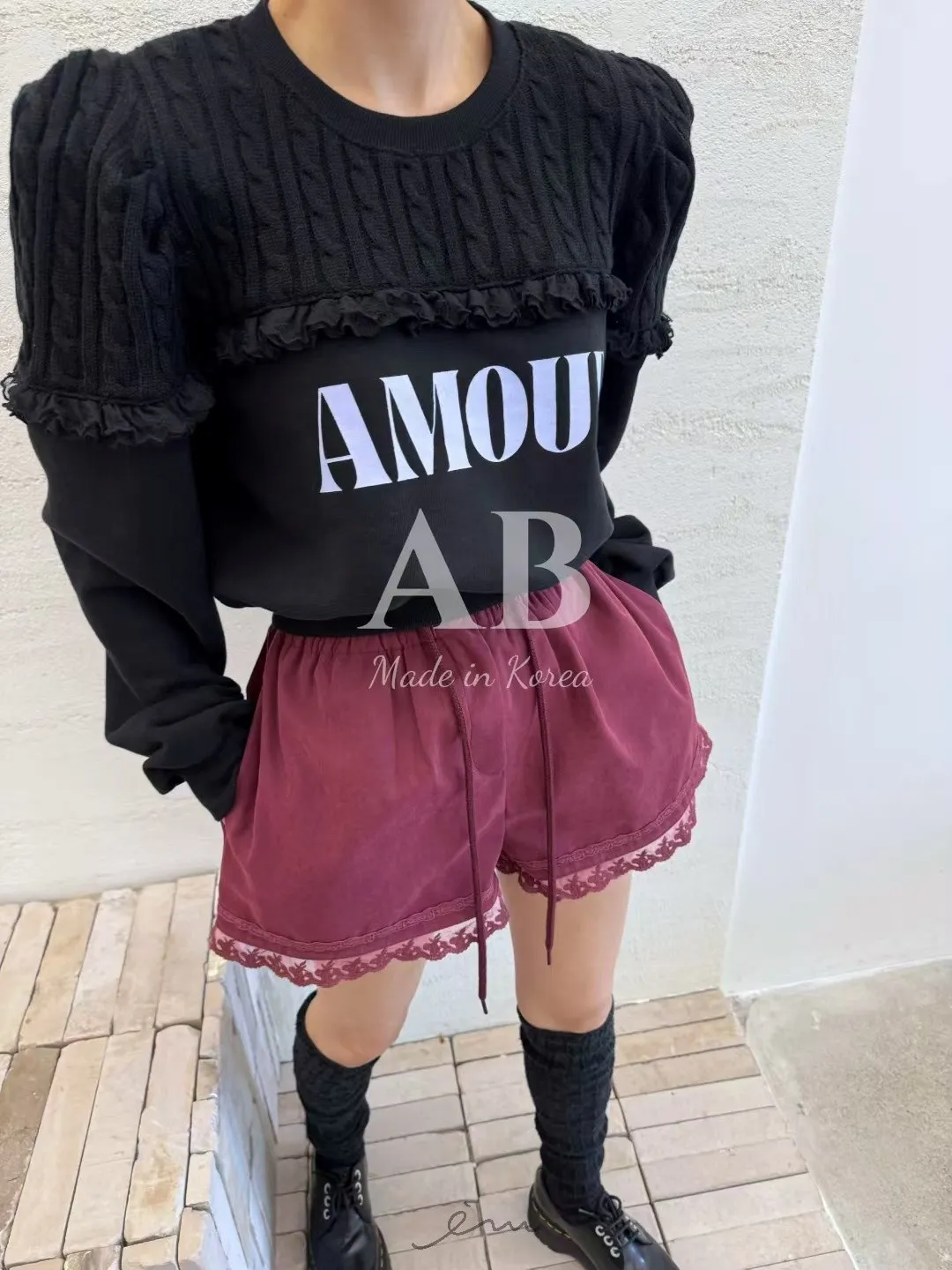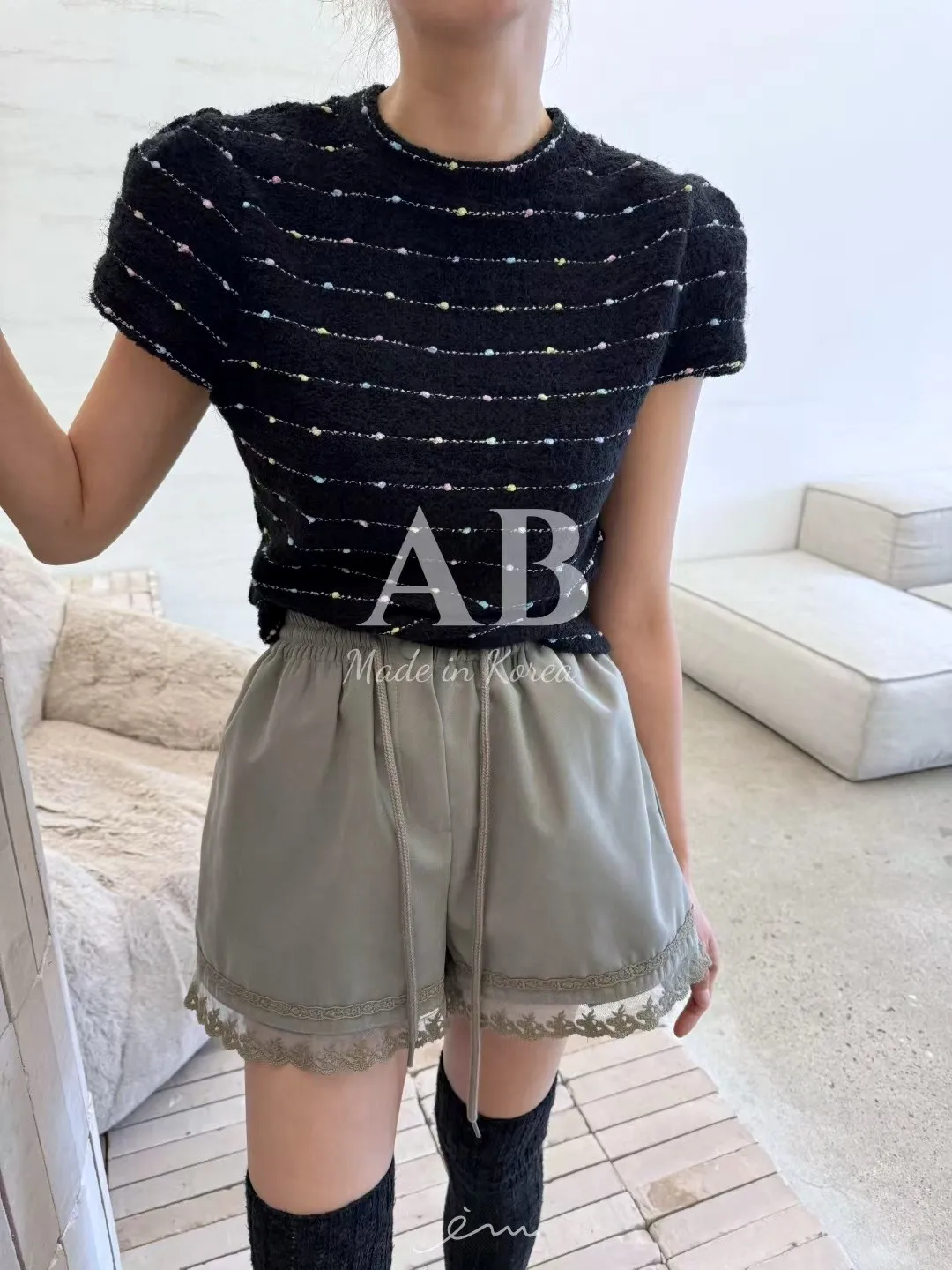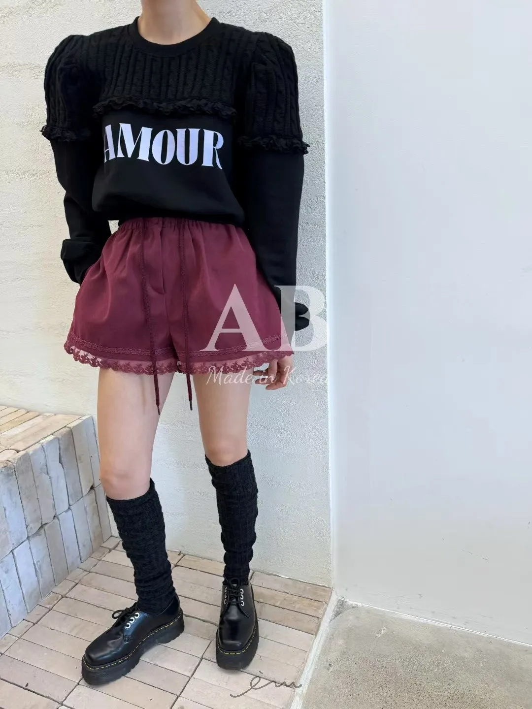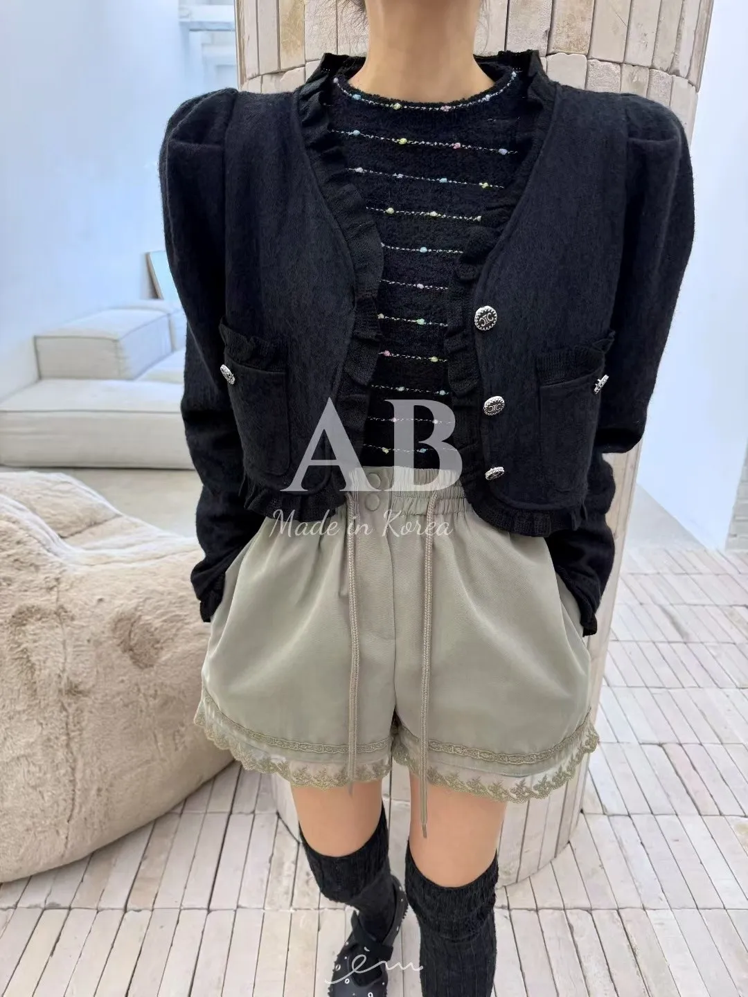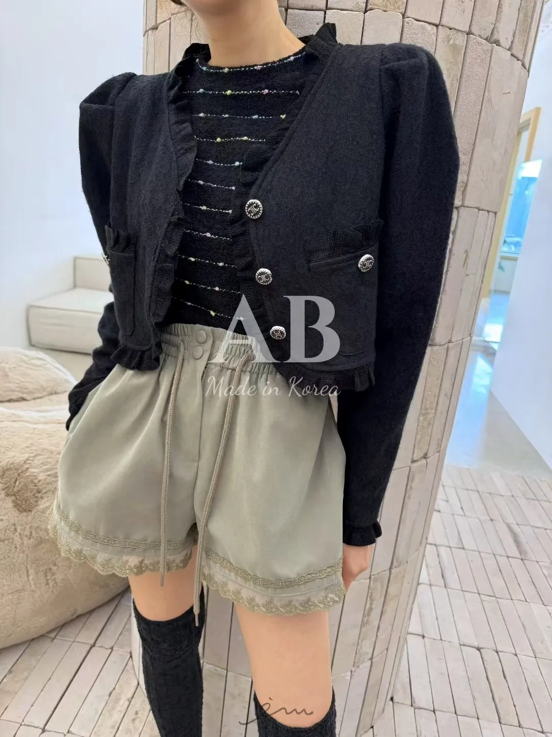 下蕾絲壓釦抽繩鬆緊短褲(黑斷)
