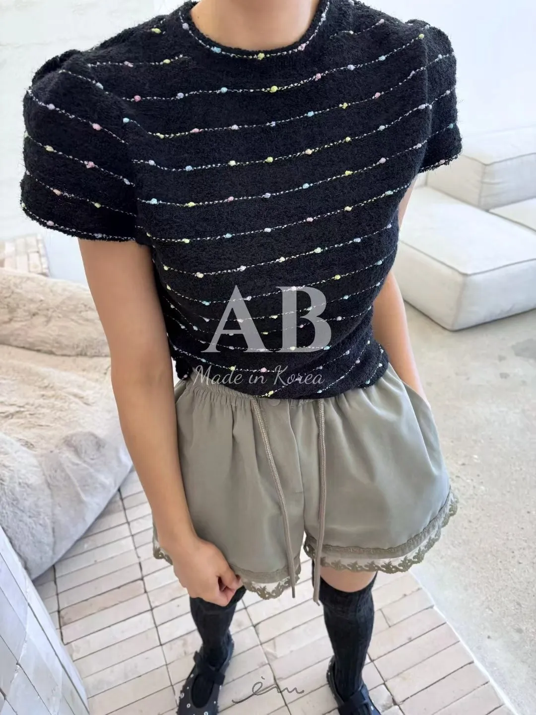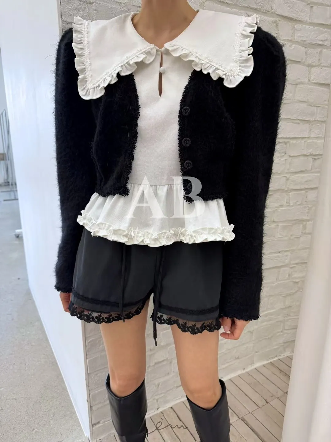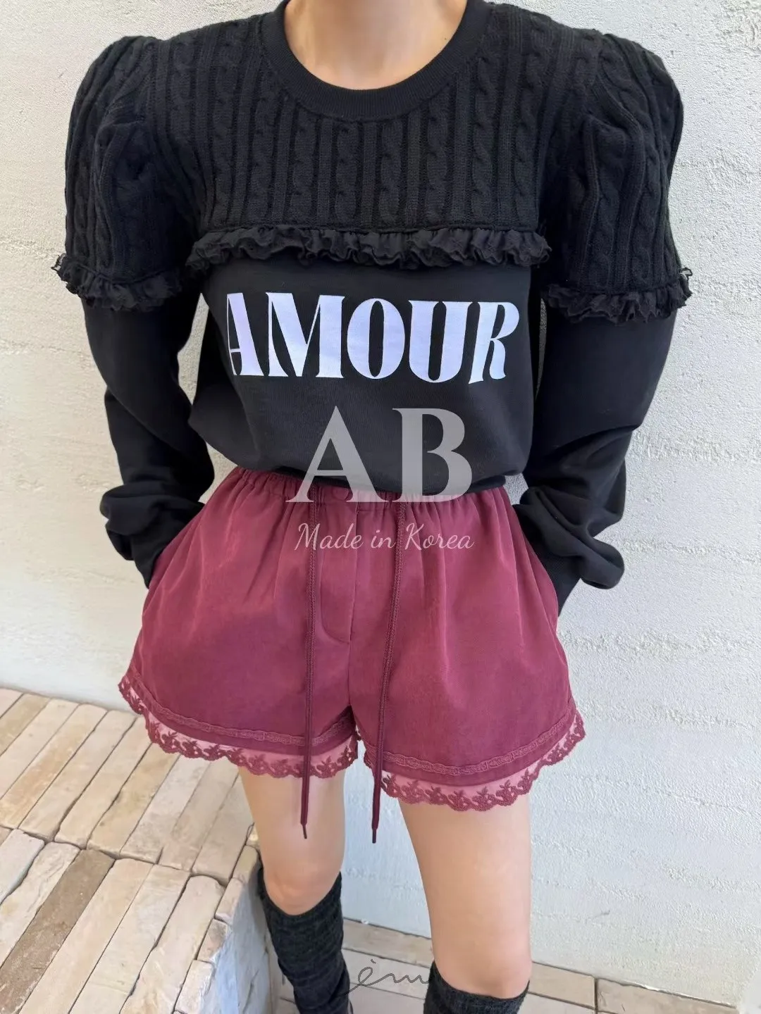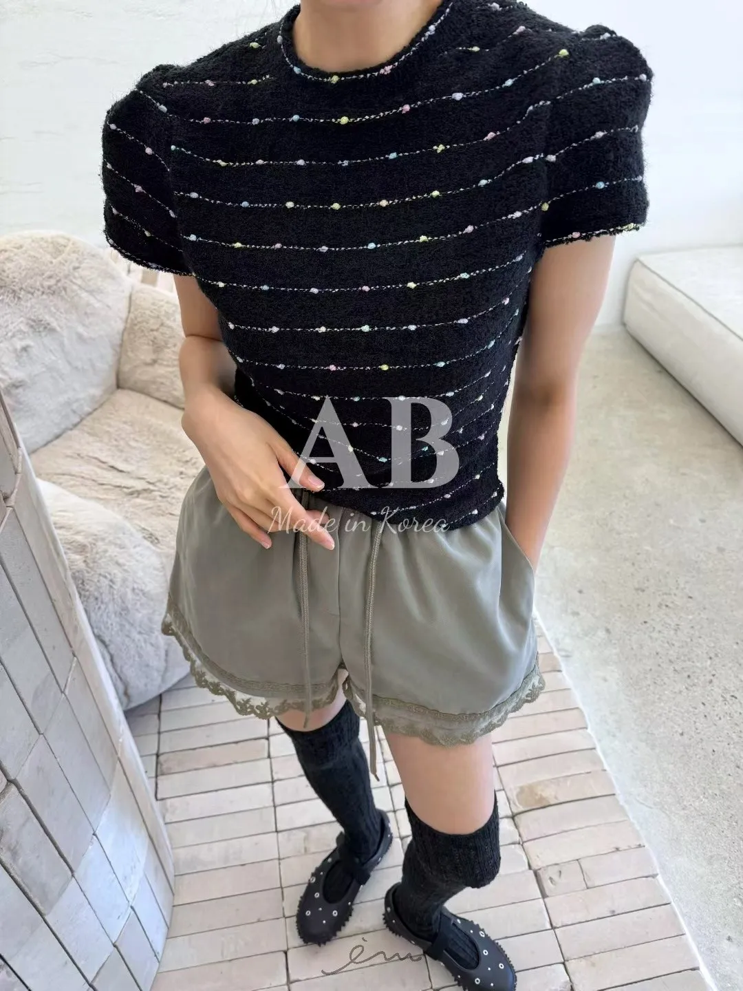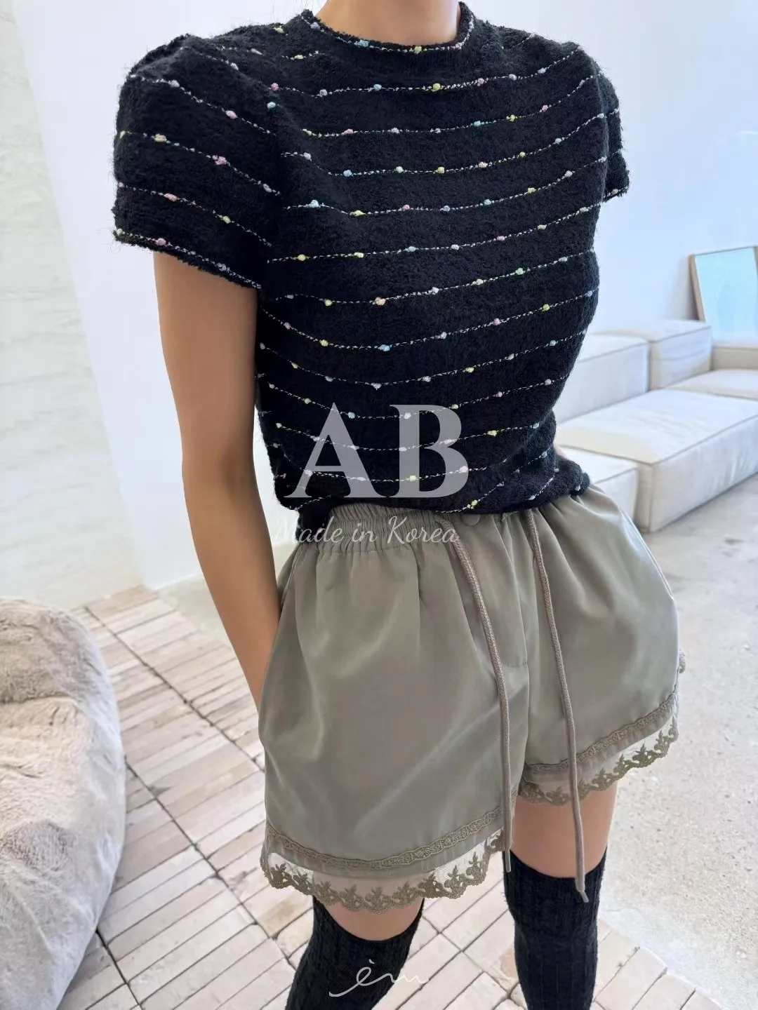 下蕾絲壓釦抽繩鬆緊短褲(黑斷)
