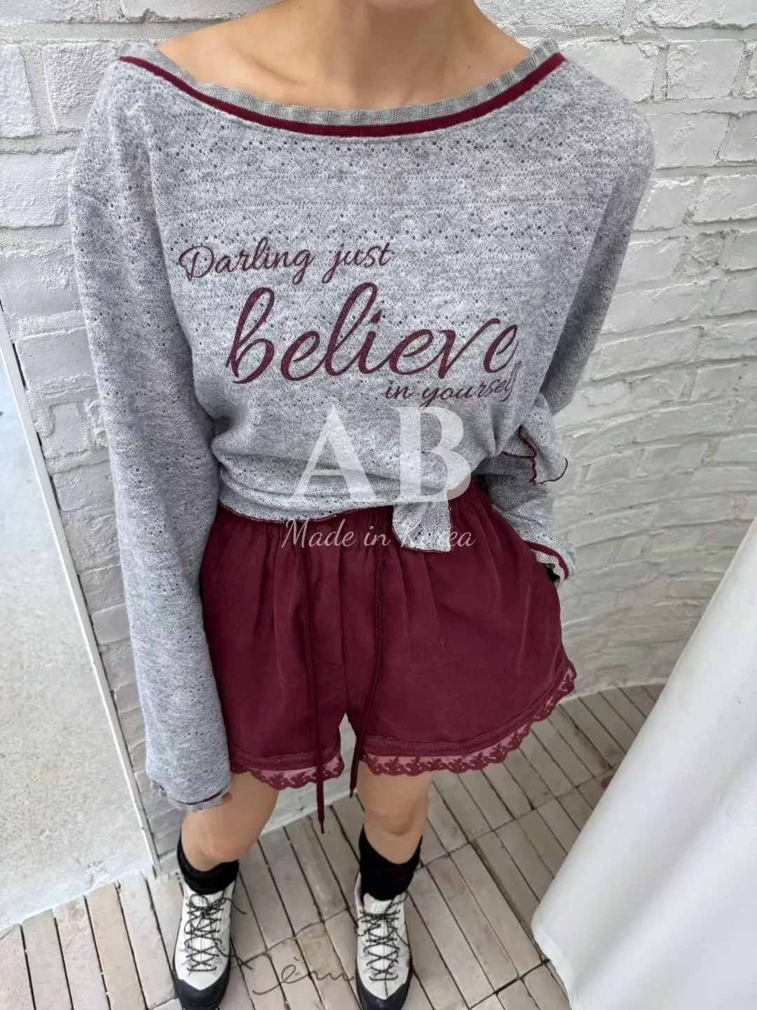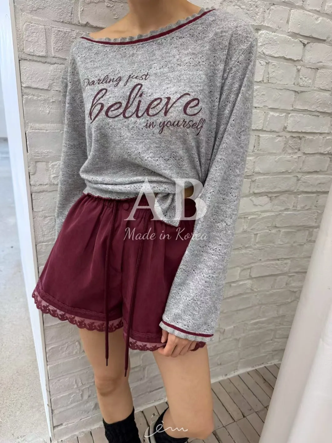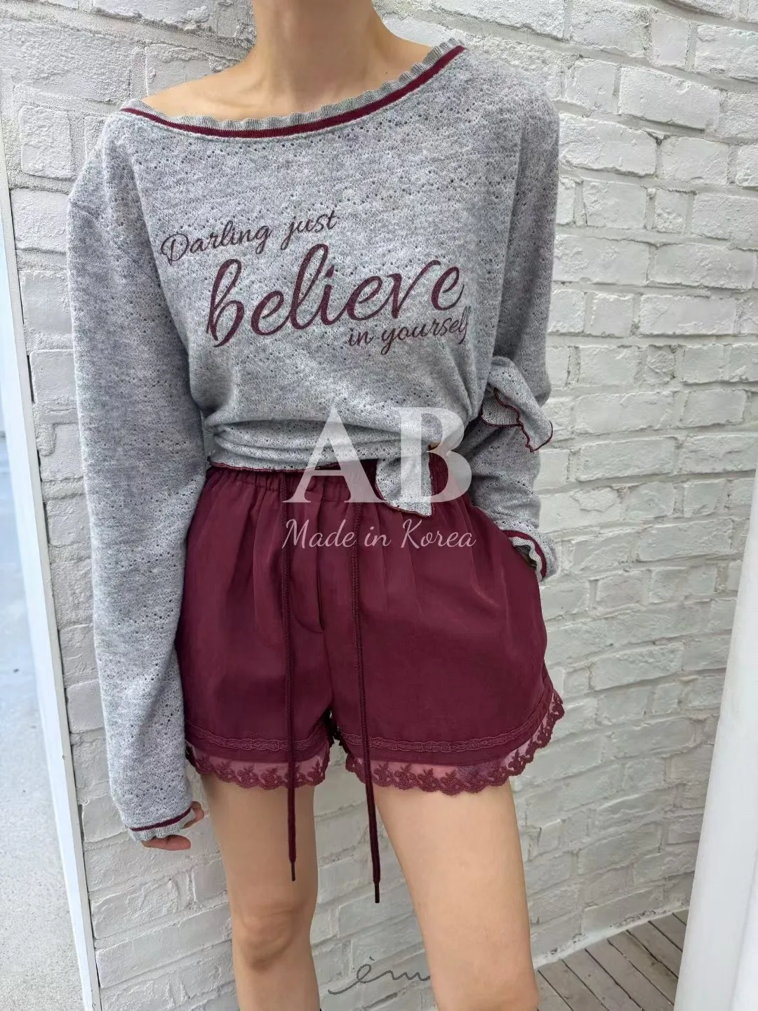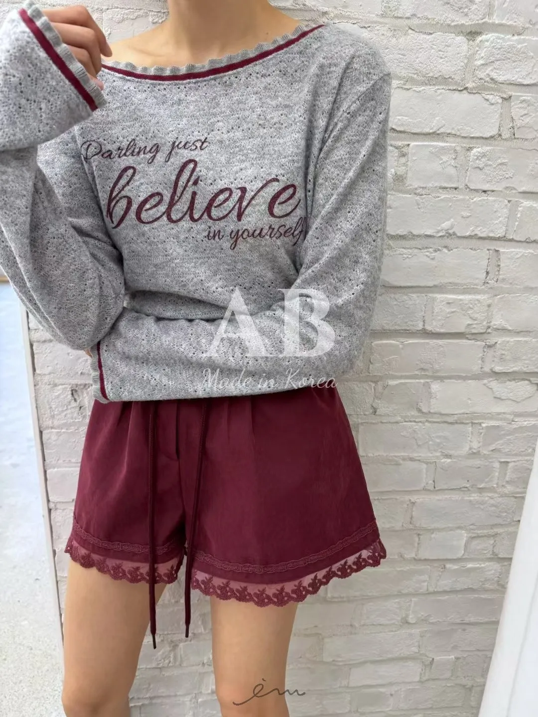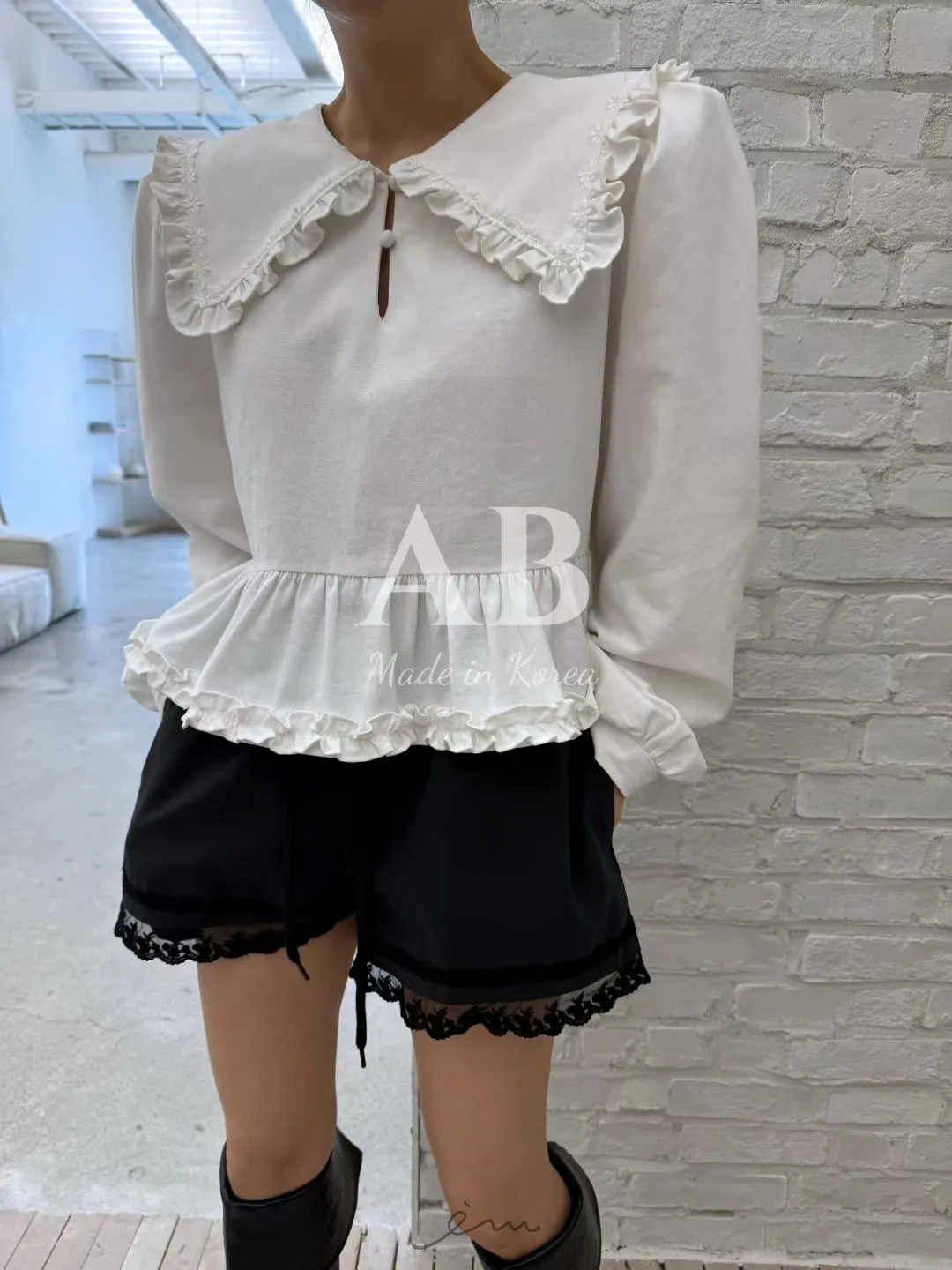 下蕾絲壓釦抽繩鬆緊短褲(黑斷)