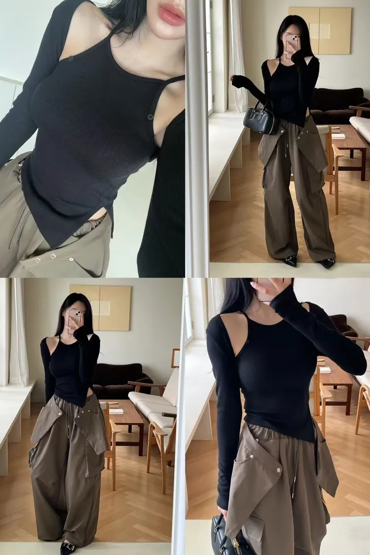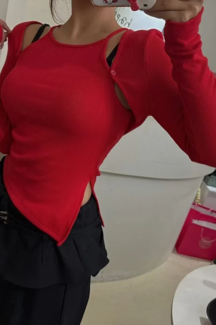 鈕釦細肩背心+小外套