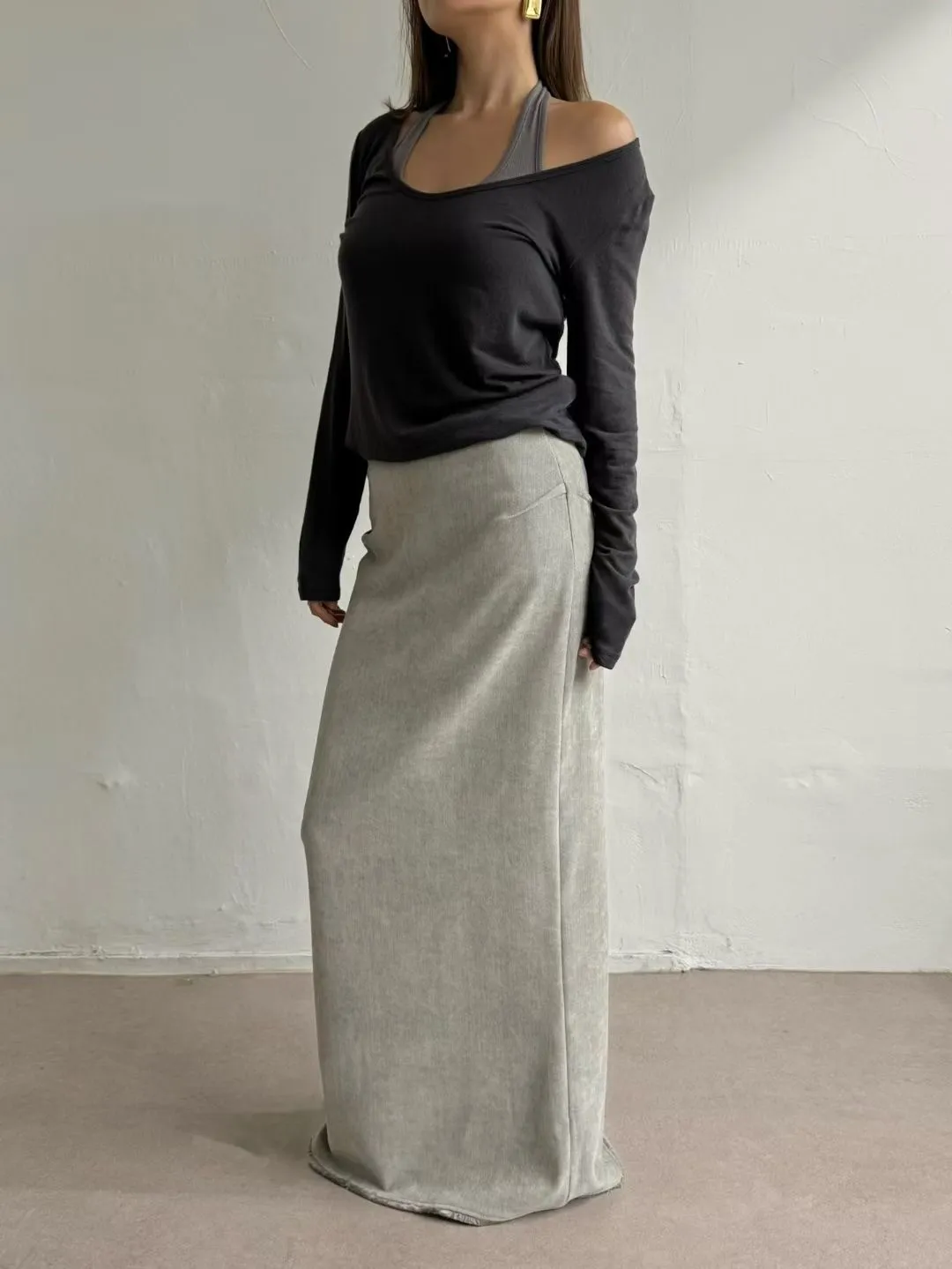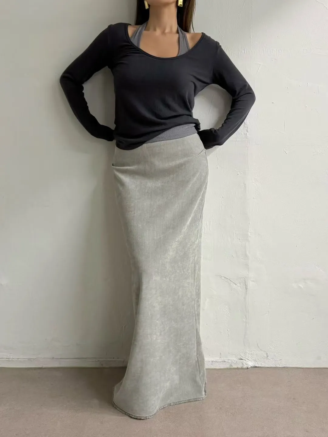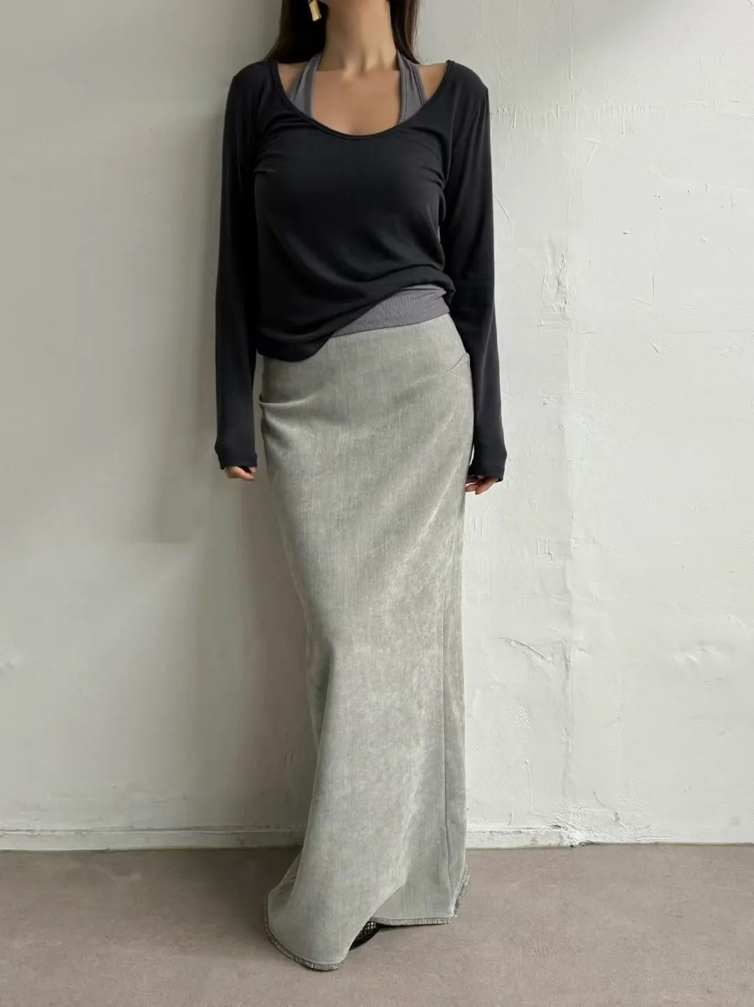 絲絨下鬚鬚長裙(灰M斷)