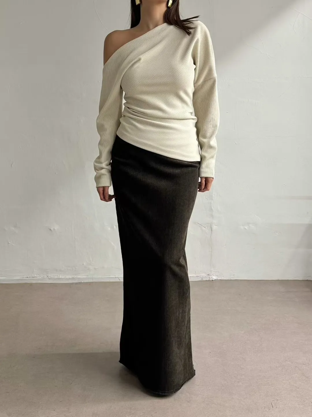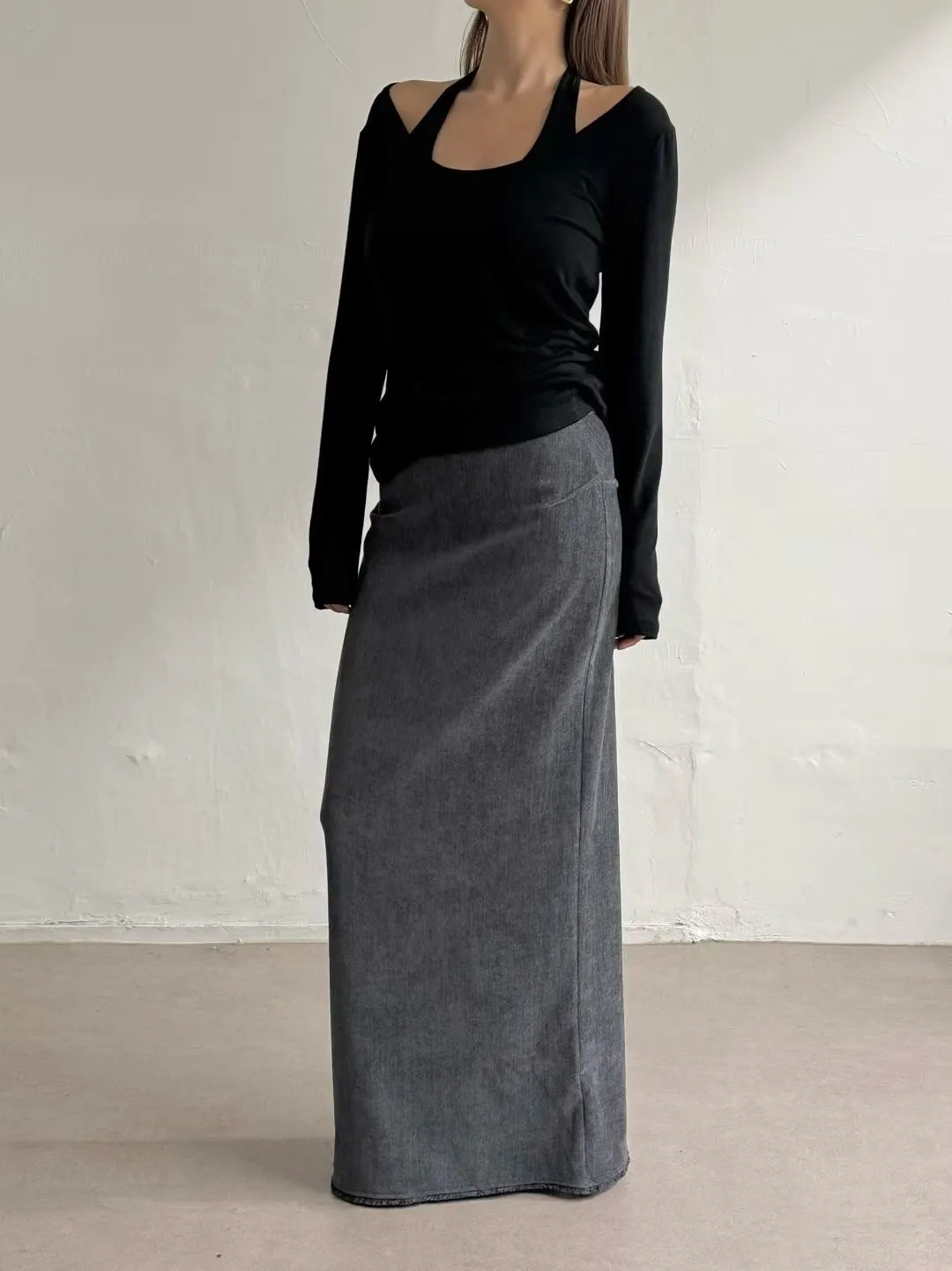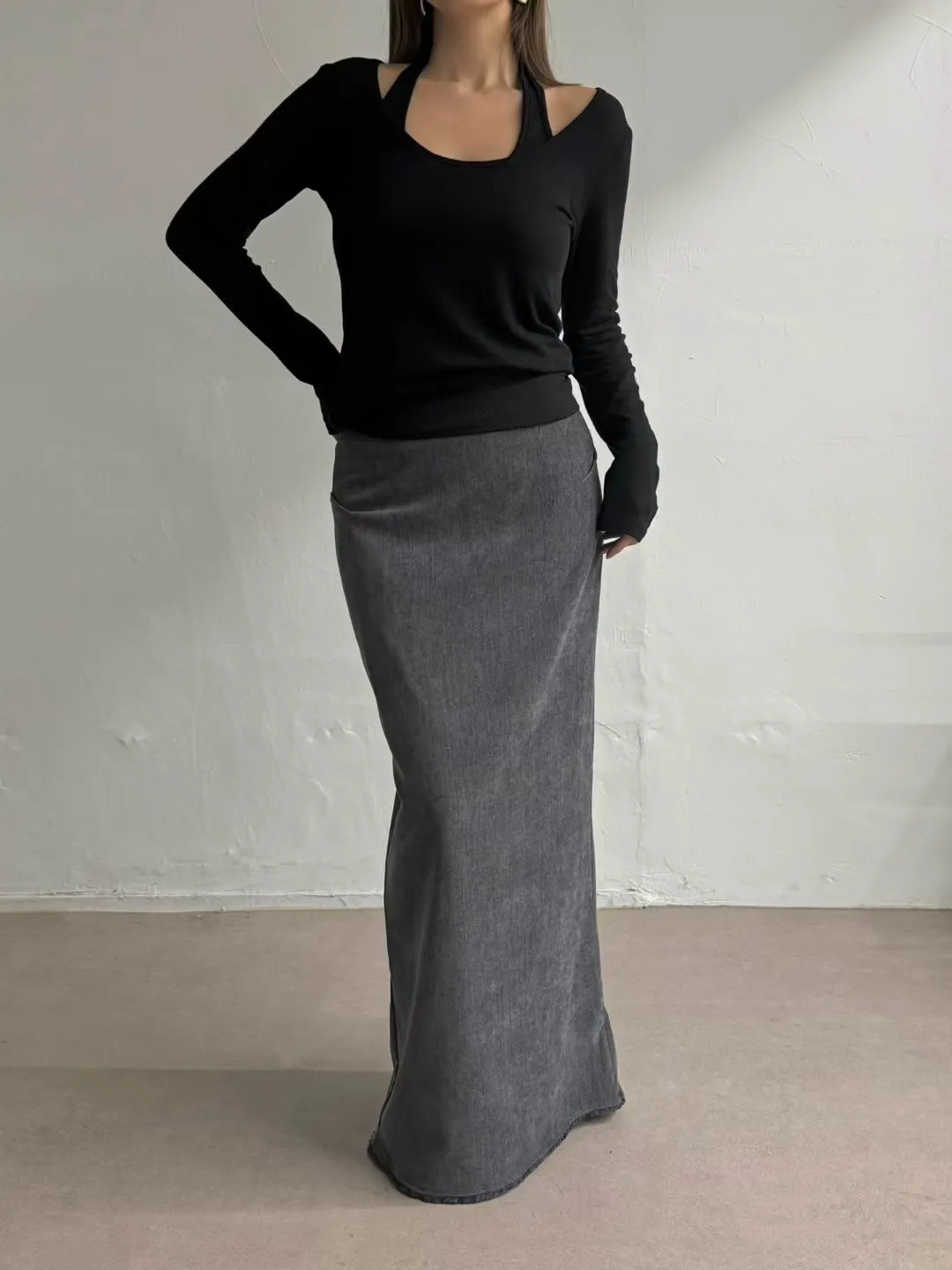 絲絨下鬚鬚長裙(灰M斷)