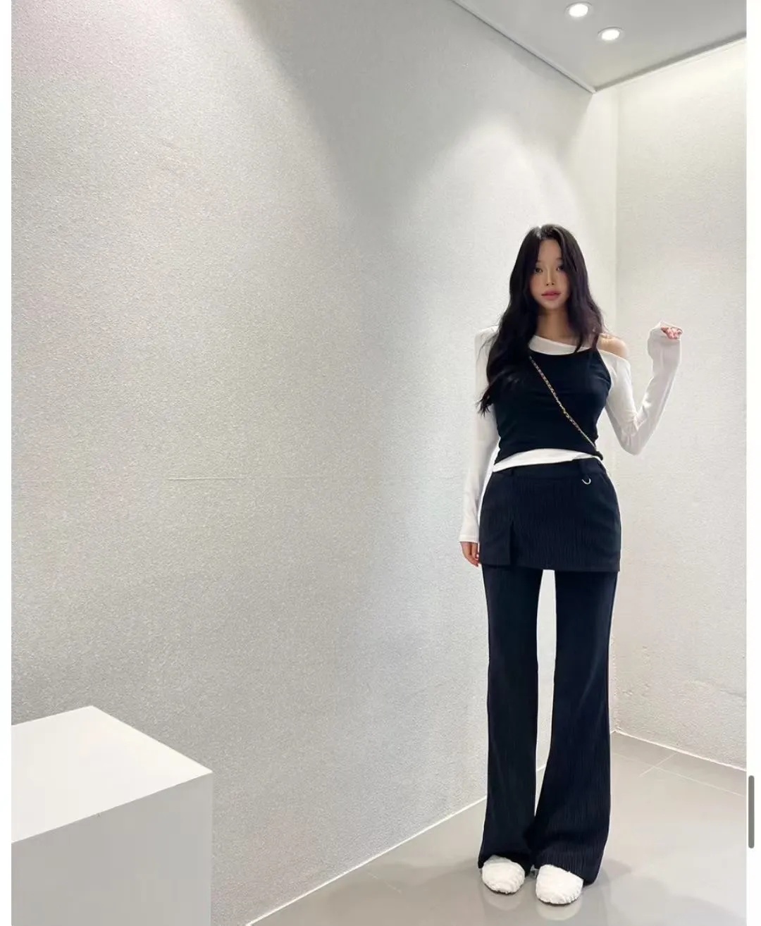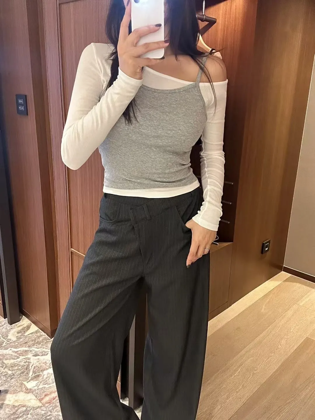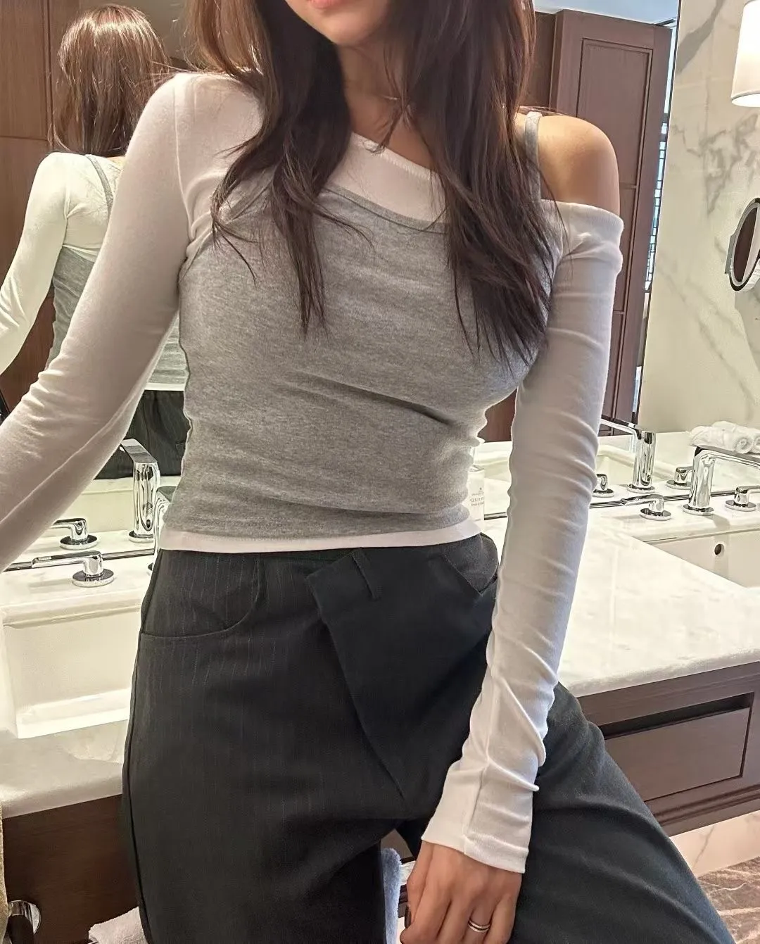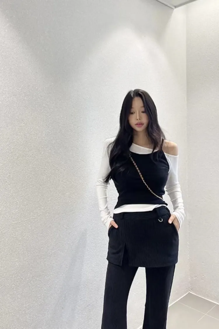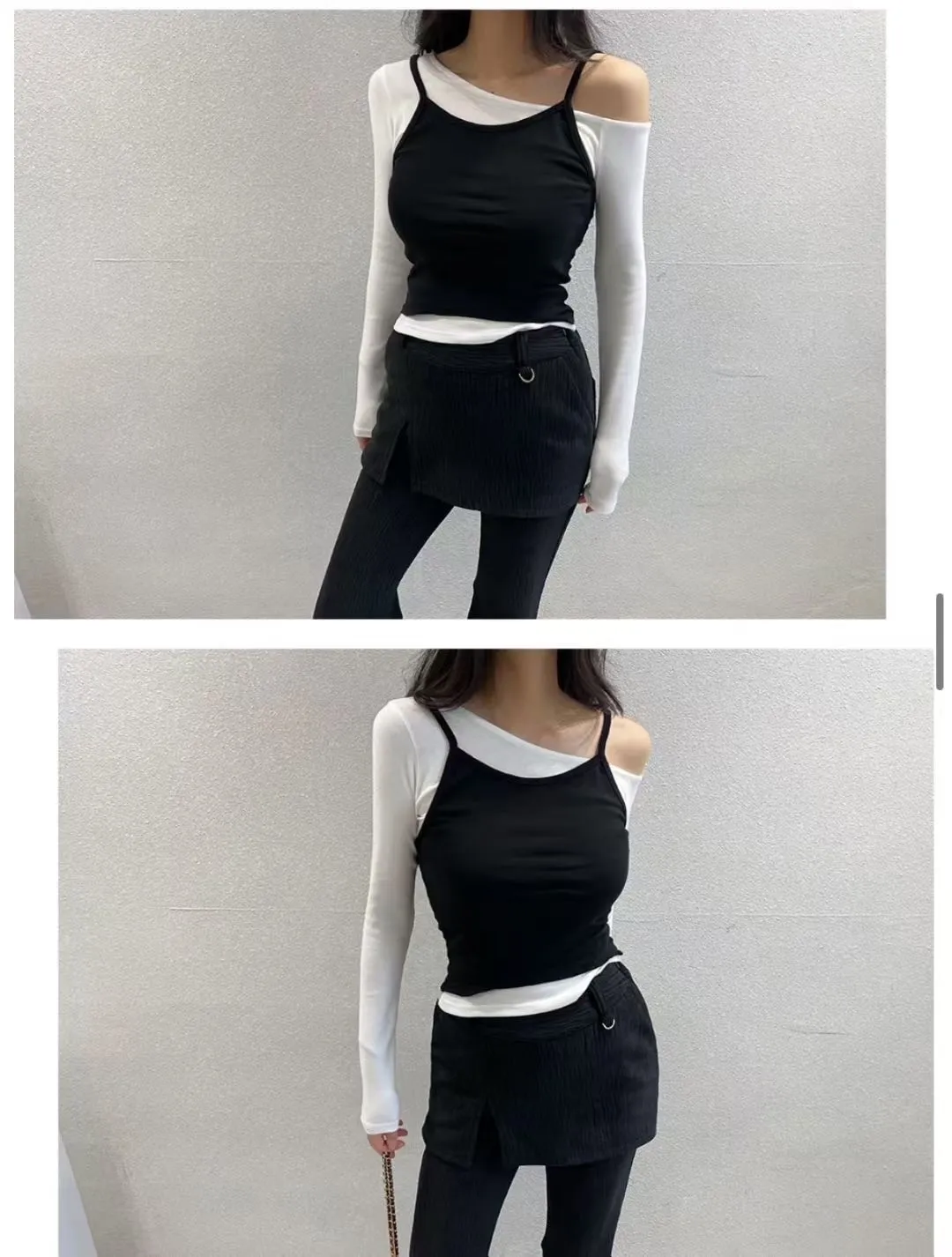 假兩件背心長袖上衣