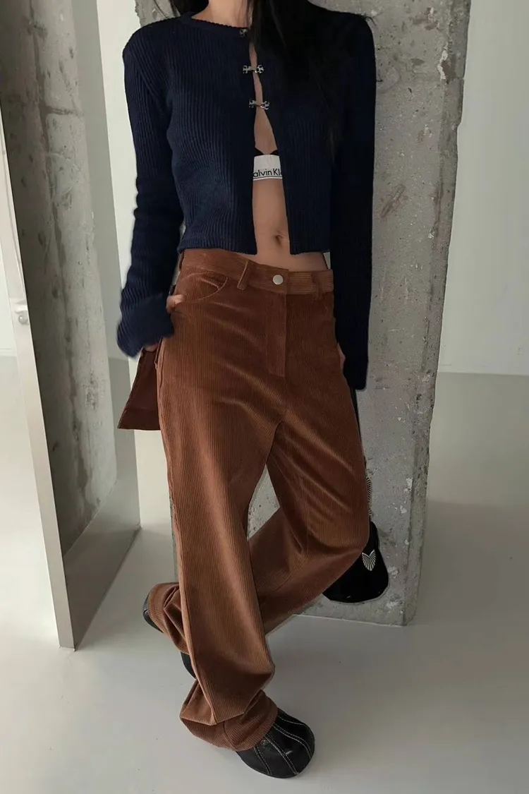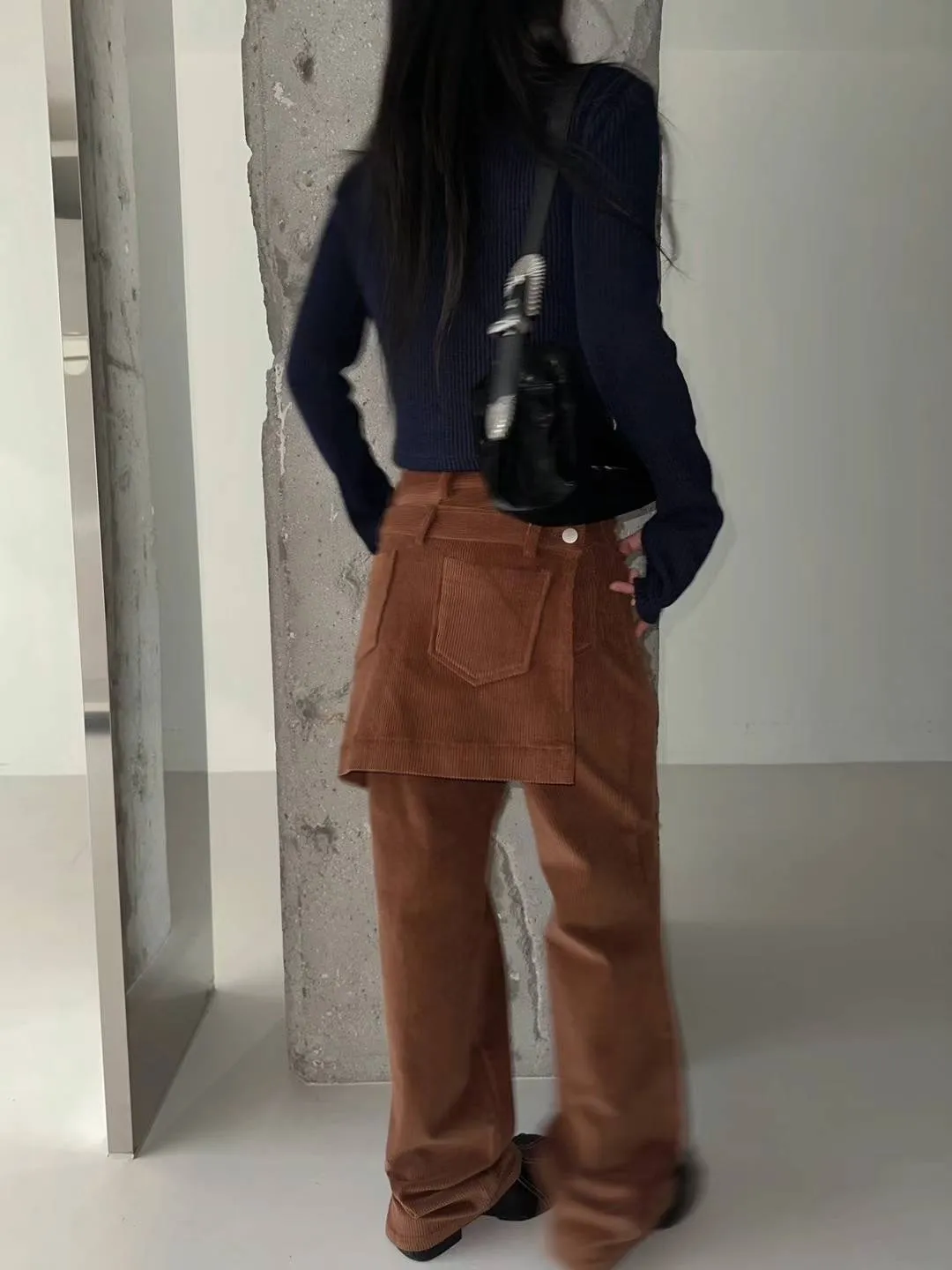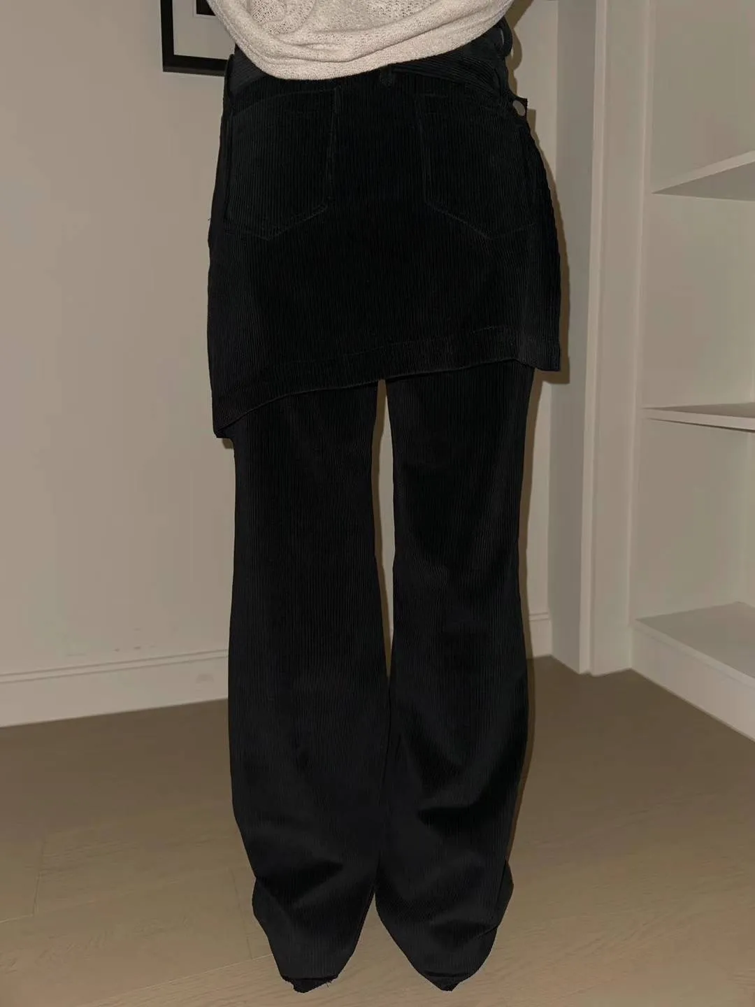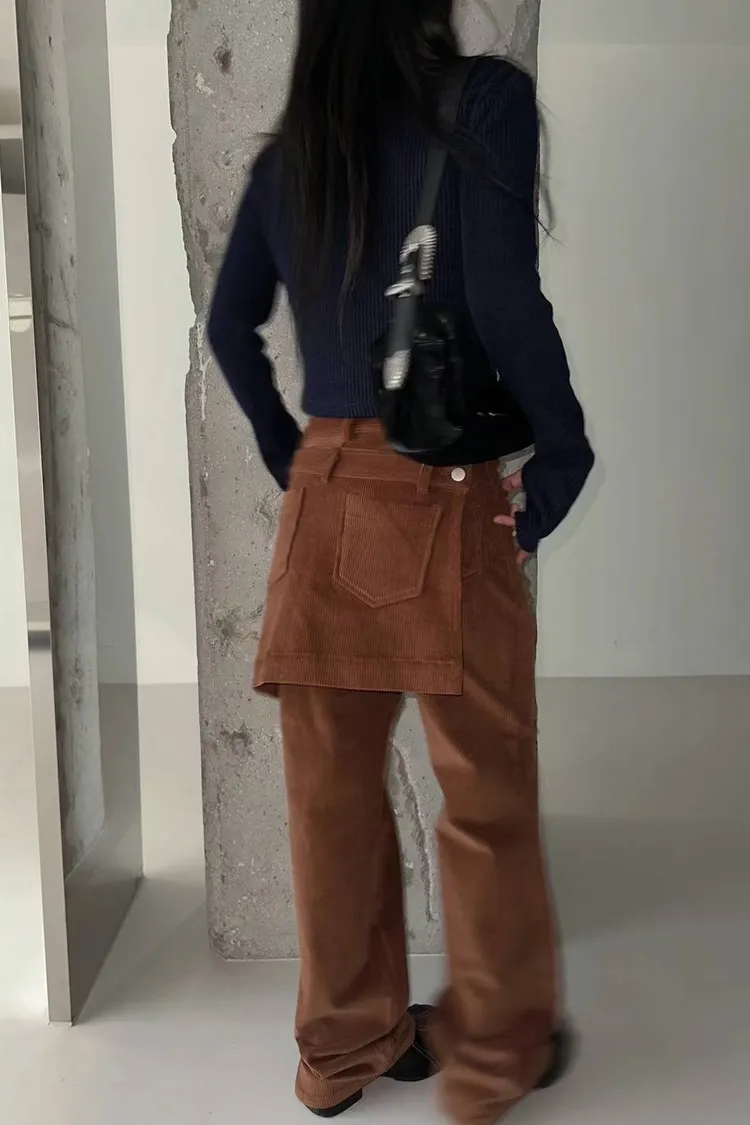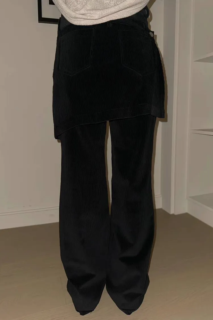 燈芯絨後面多裙直筒褲