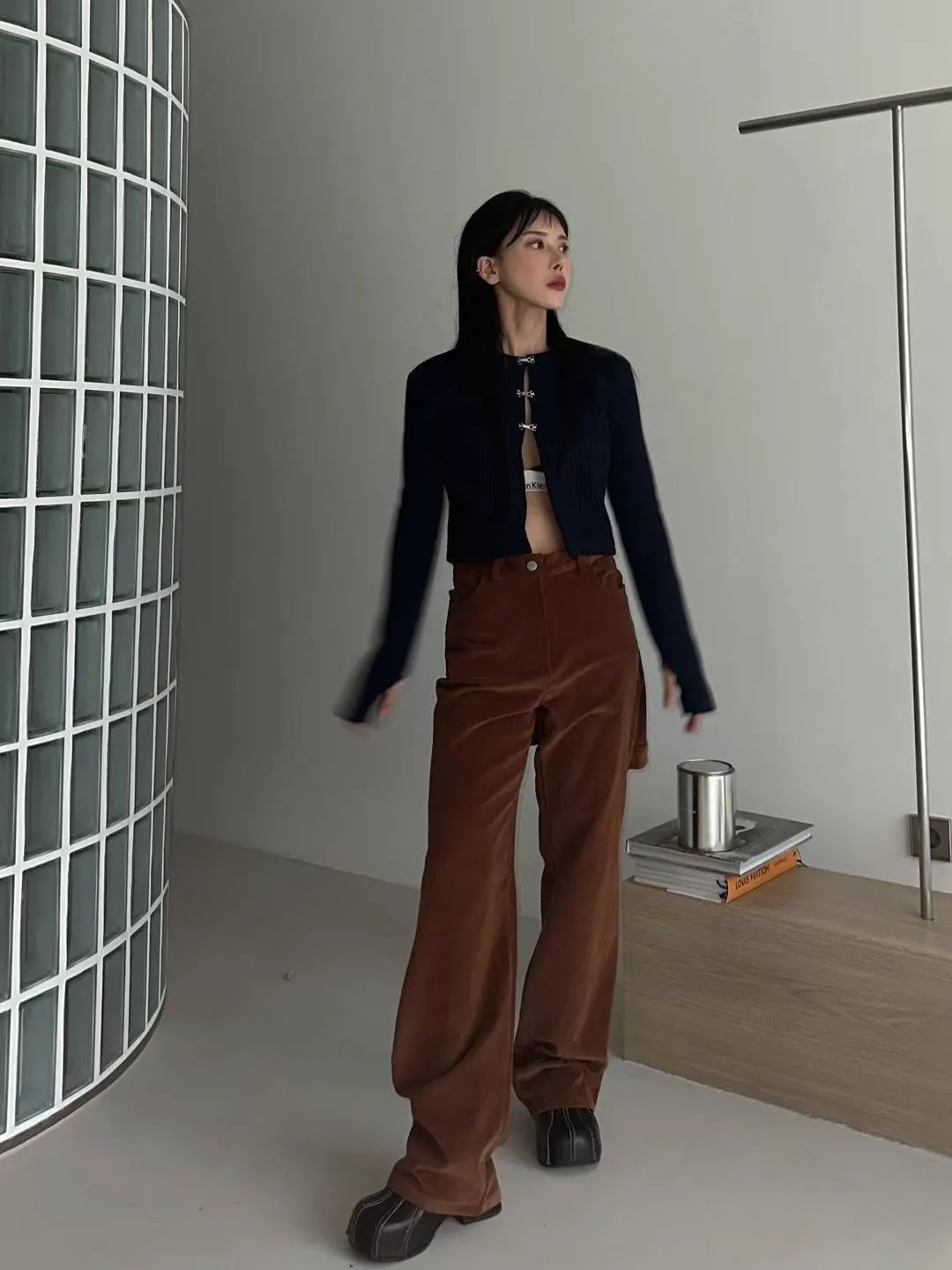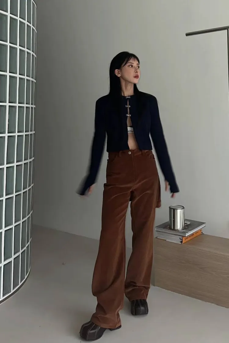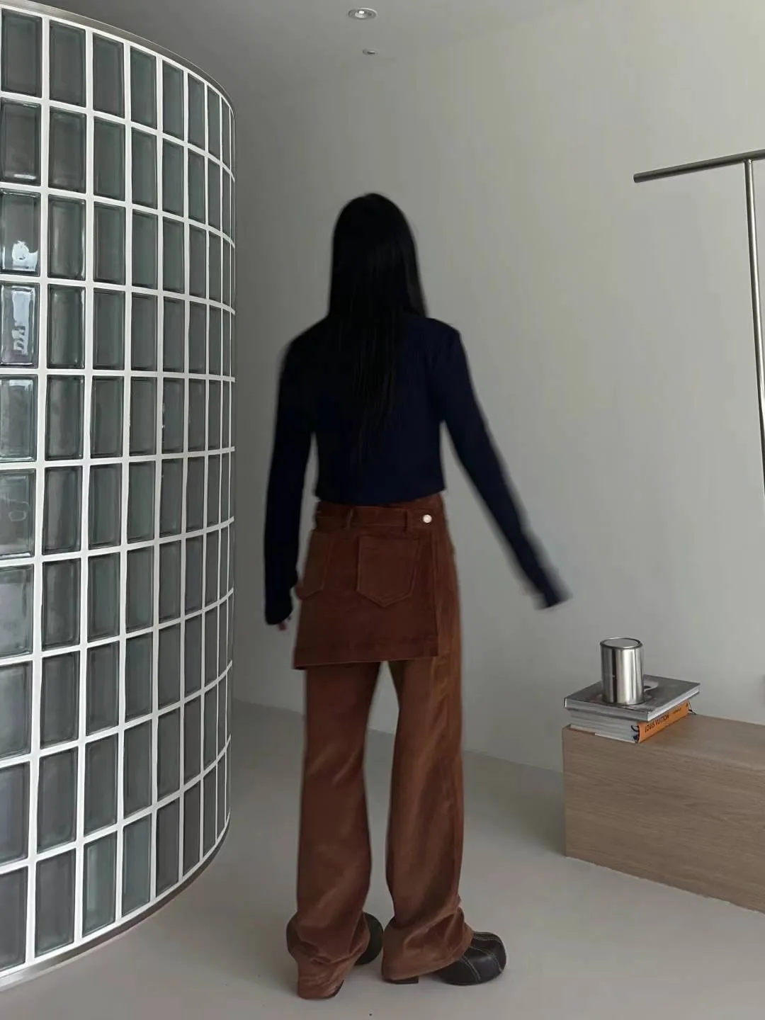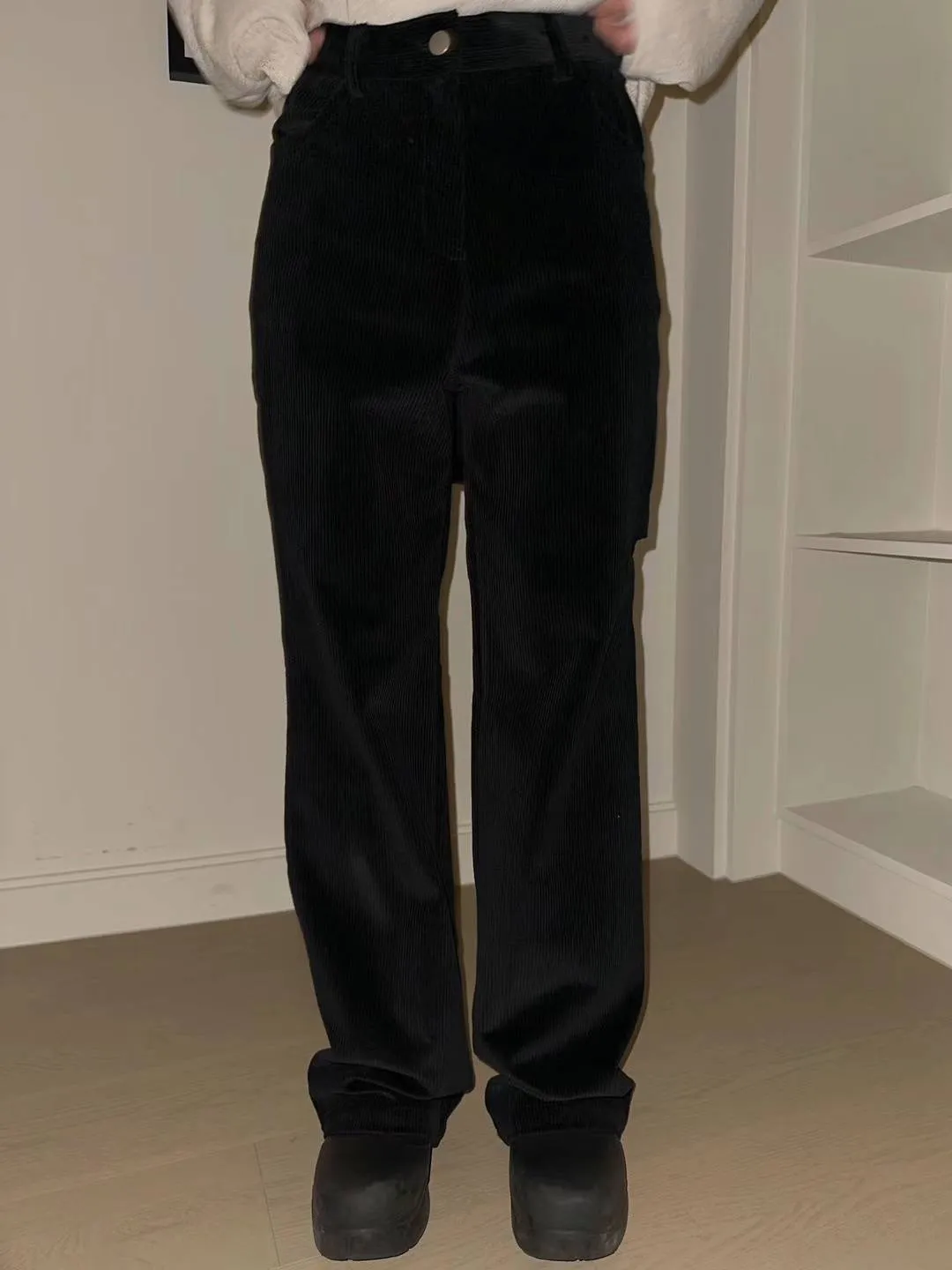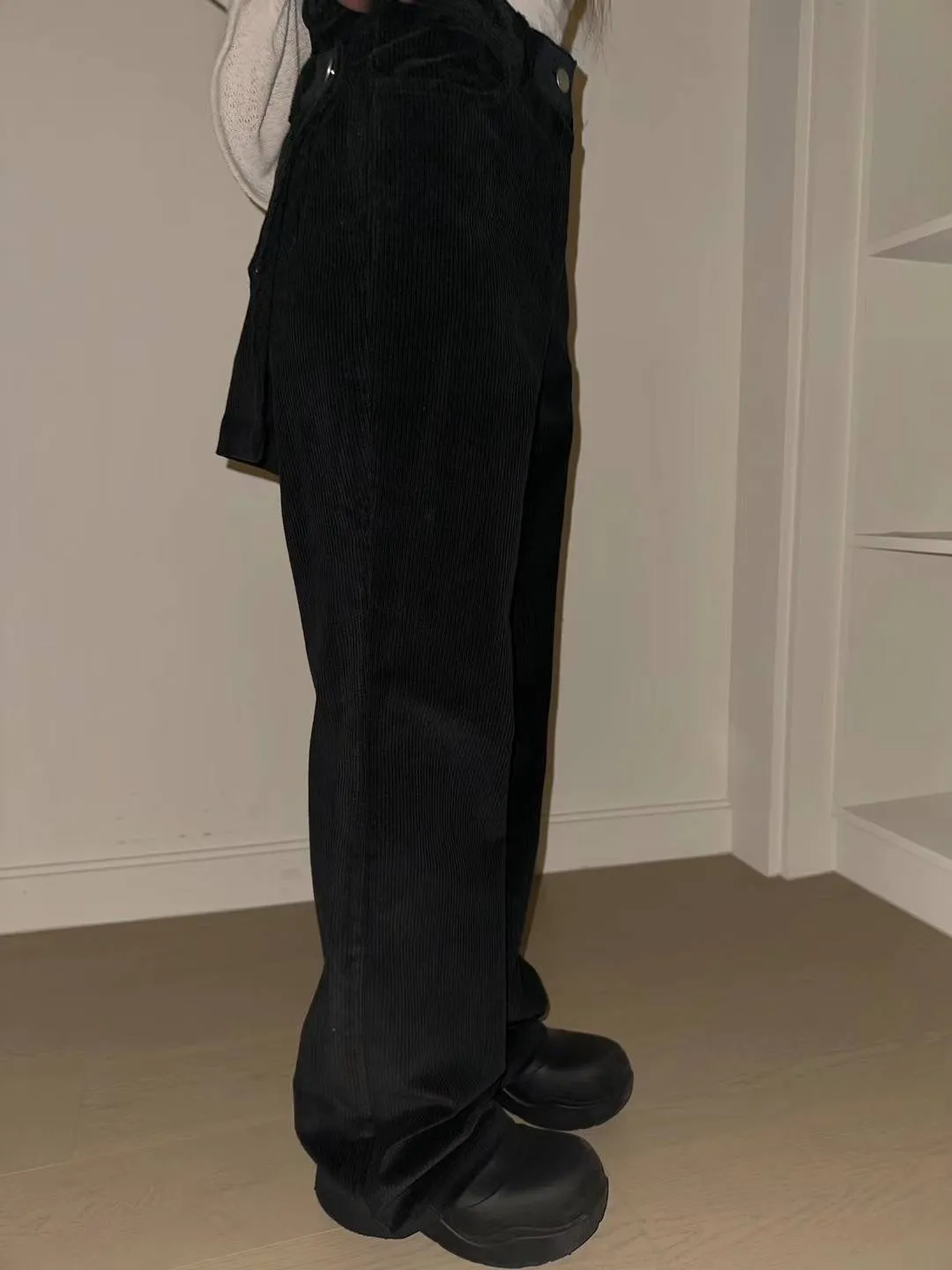 燈芯絨後面多裙直筒褲