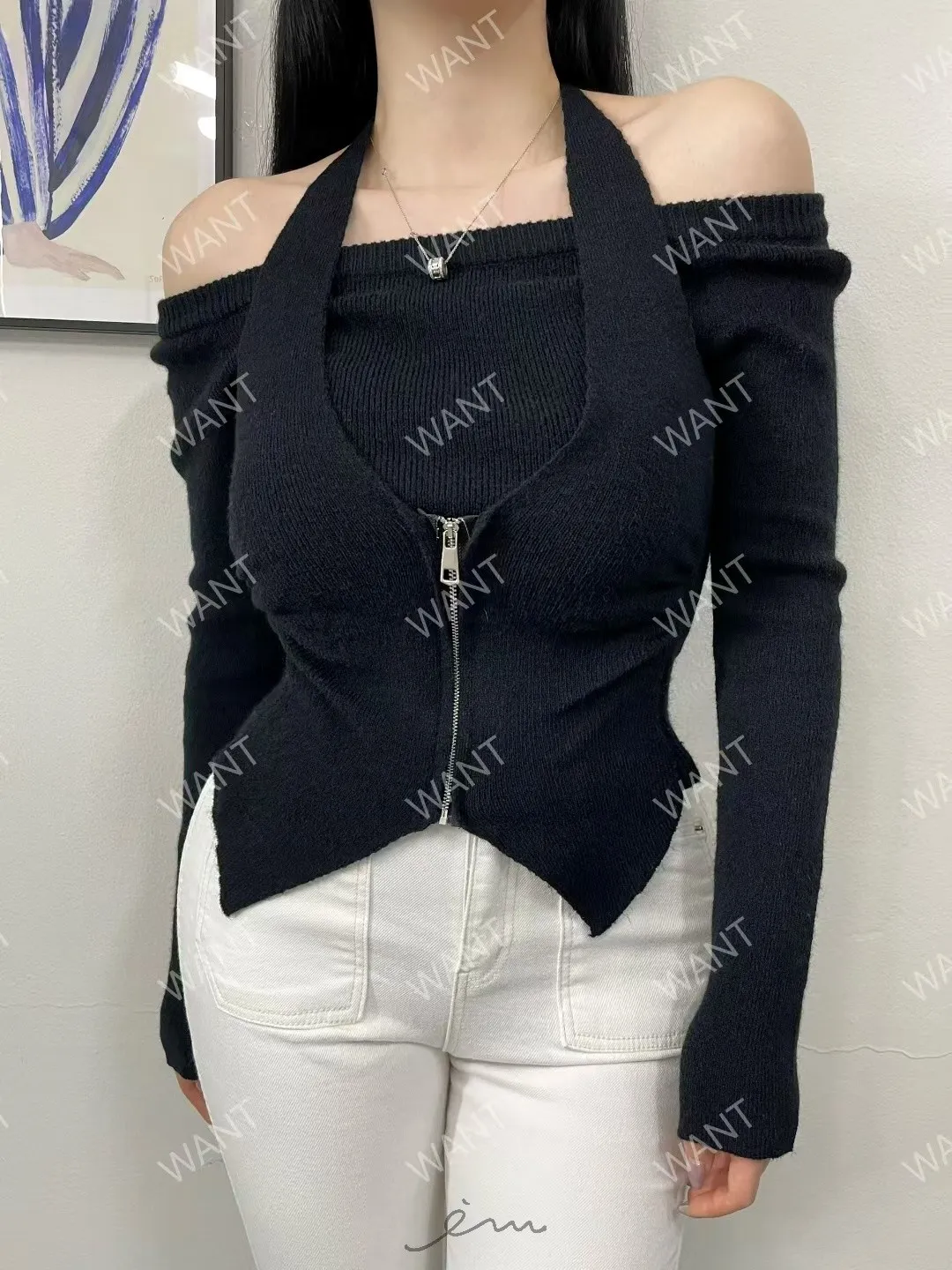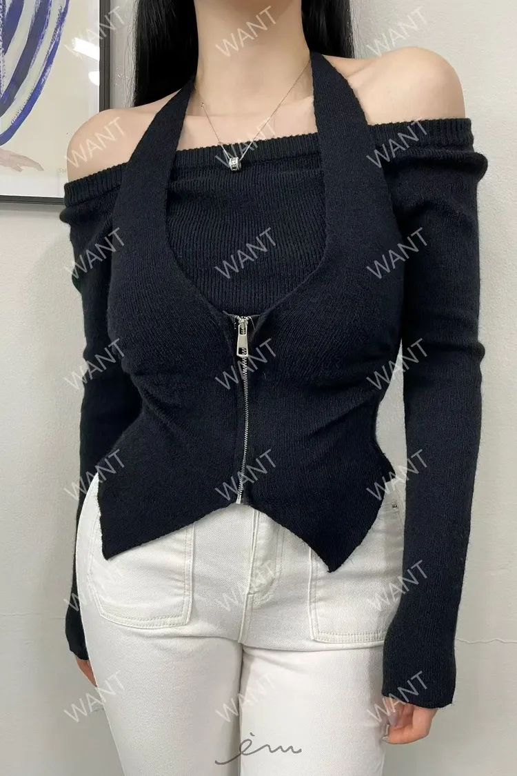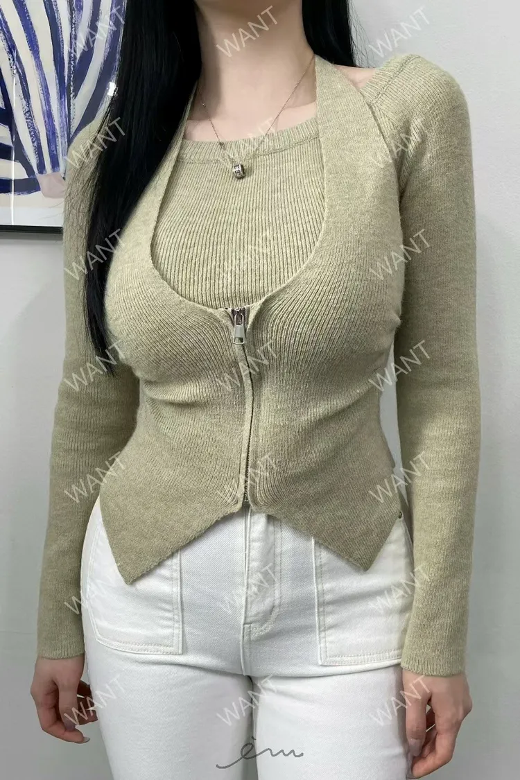WANT綁脖拉鍊假兩件上衣