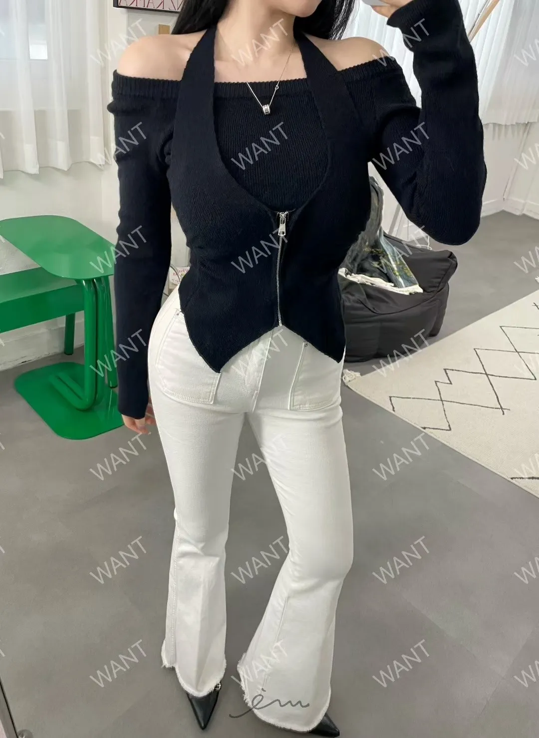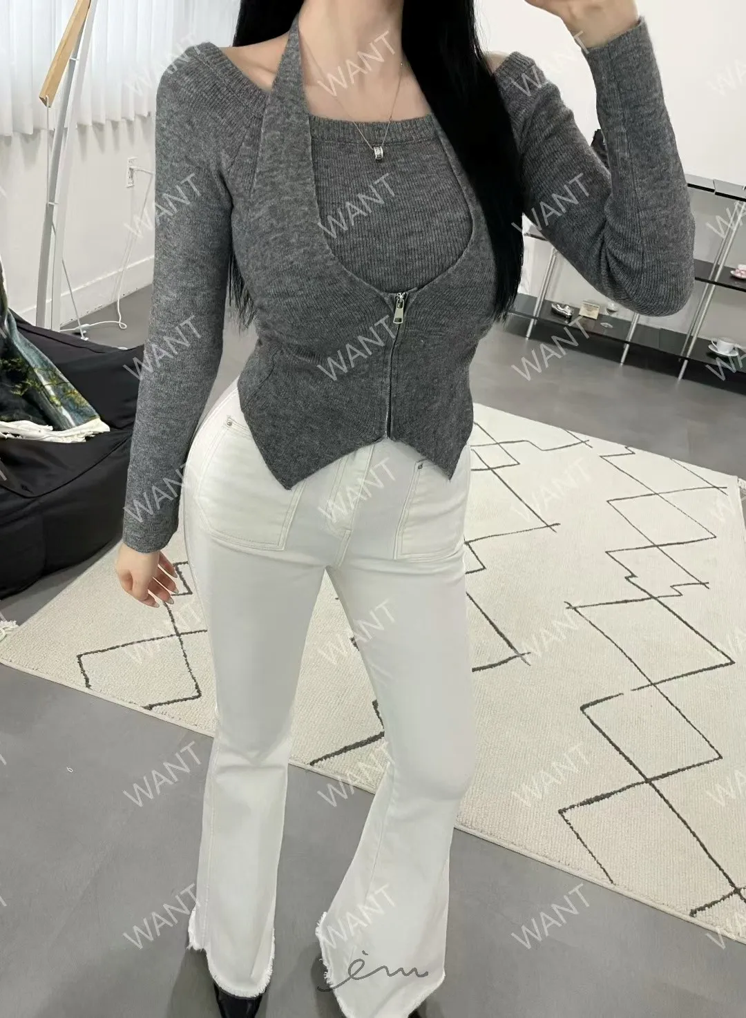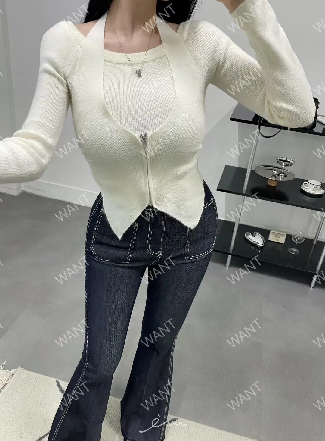 WANT綁脖拉鍊假兩件上衣