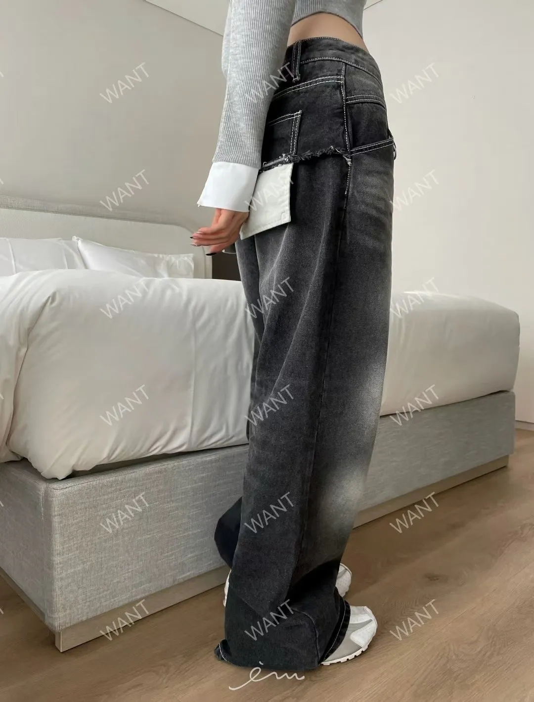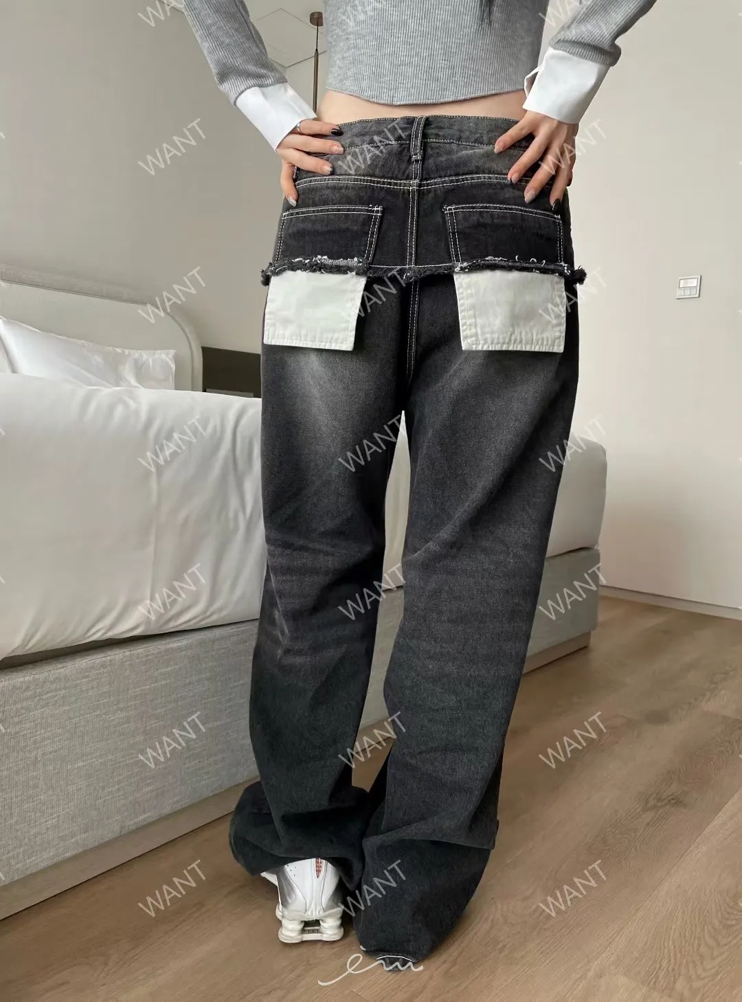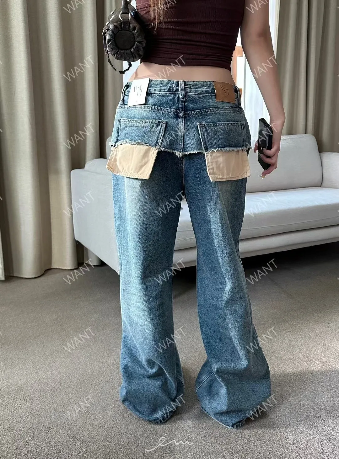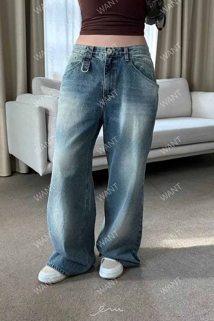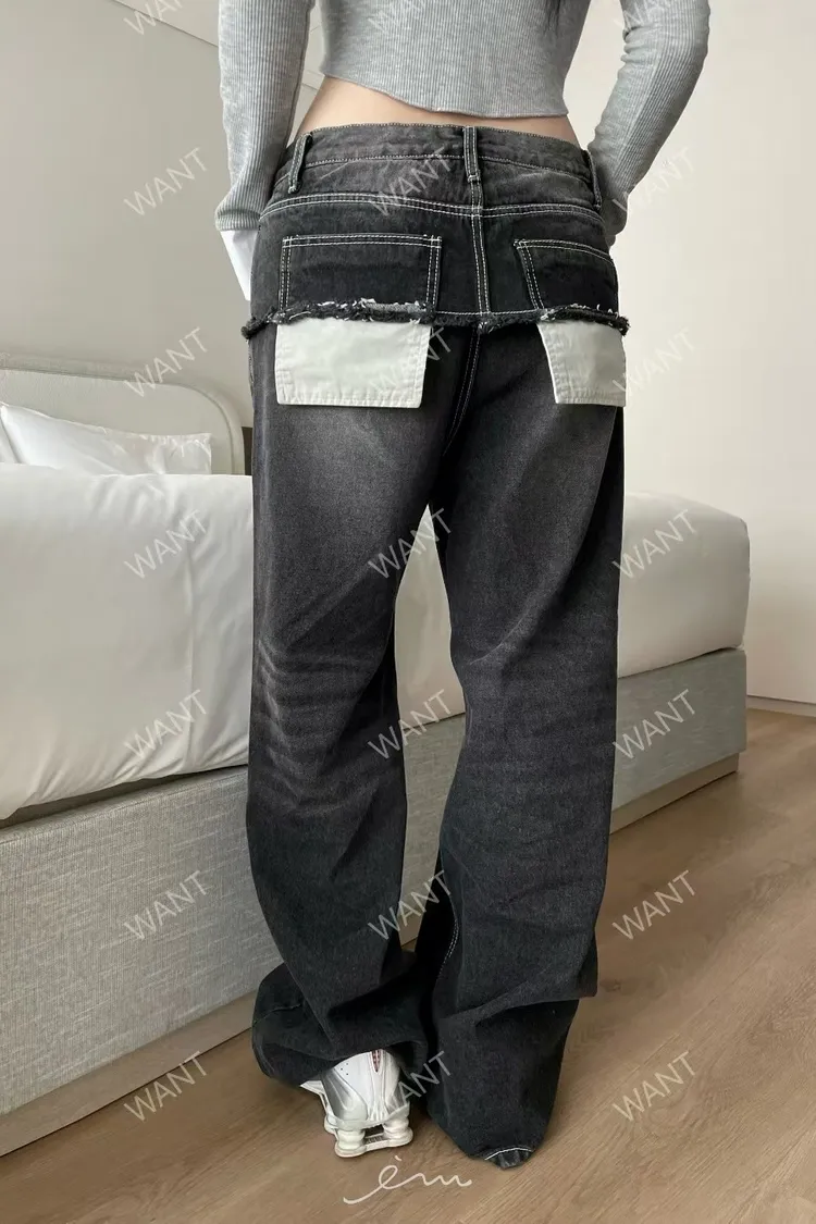 WANT後口袋異材質鐵環牛仔褲