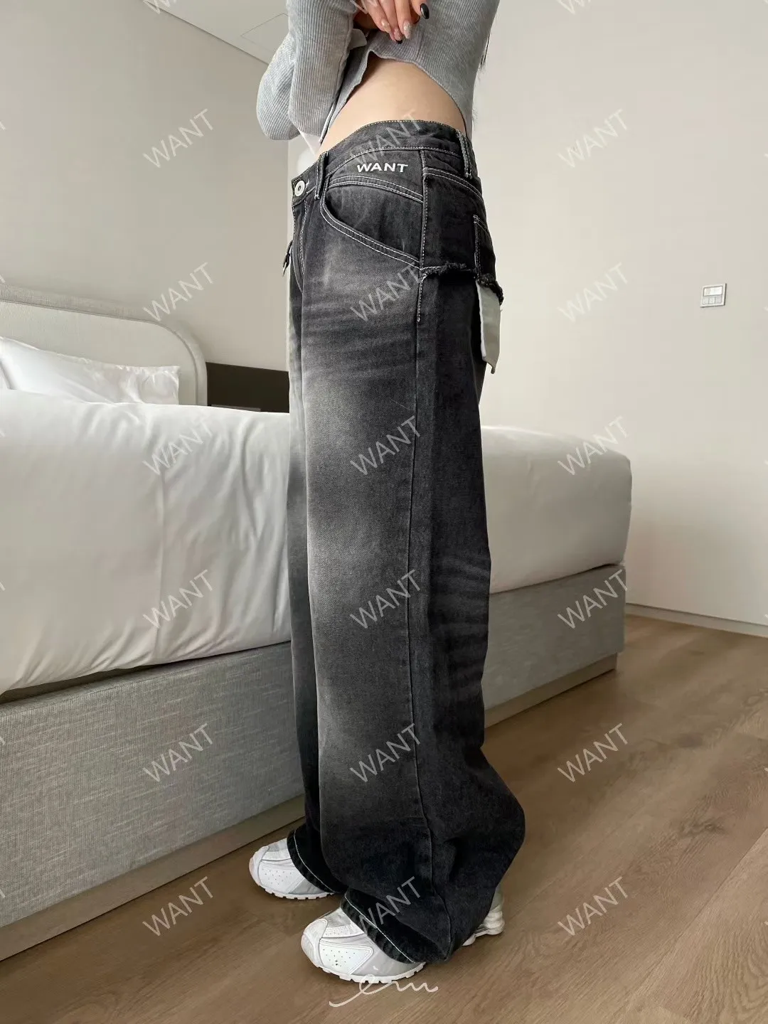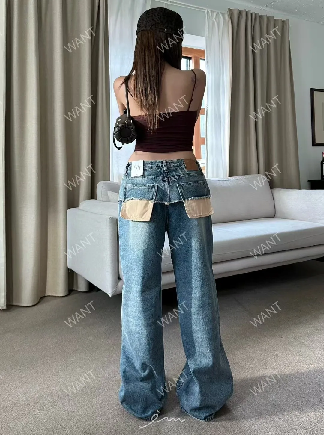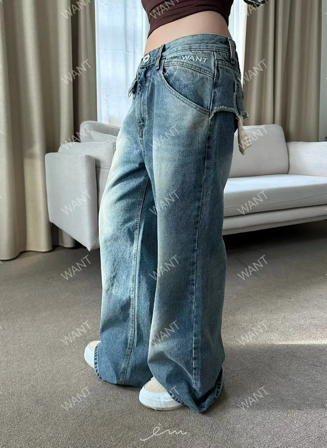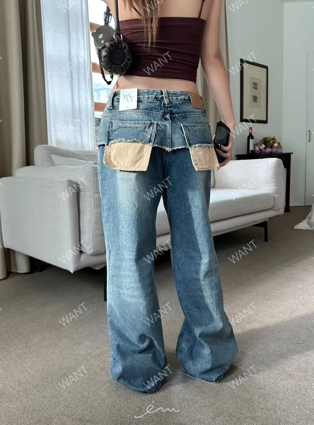 WANT後口袋異材質鐵環牛仔褲