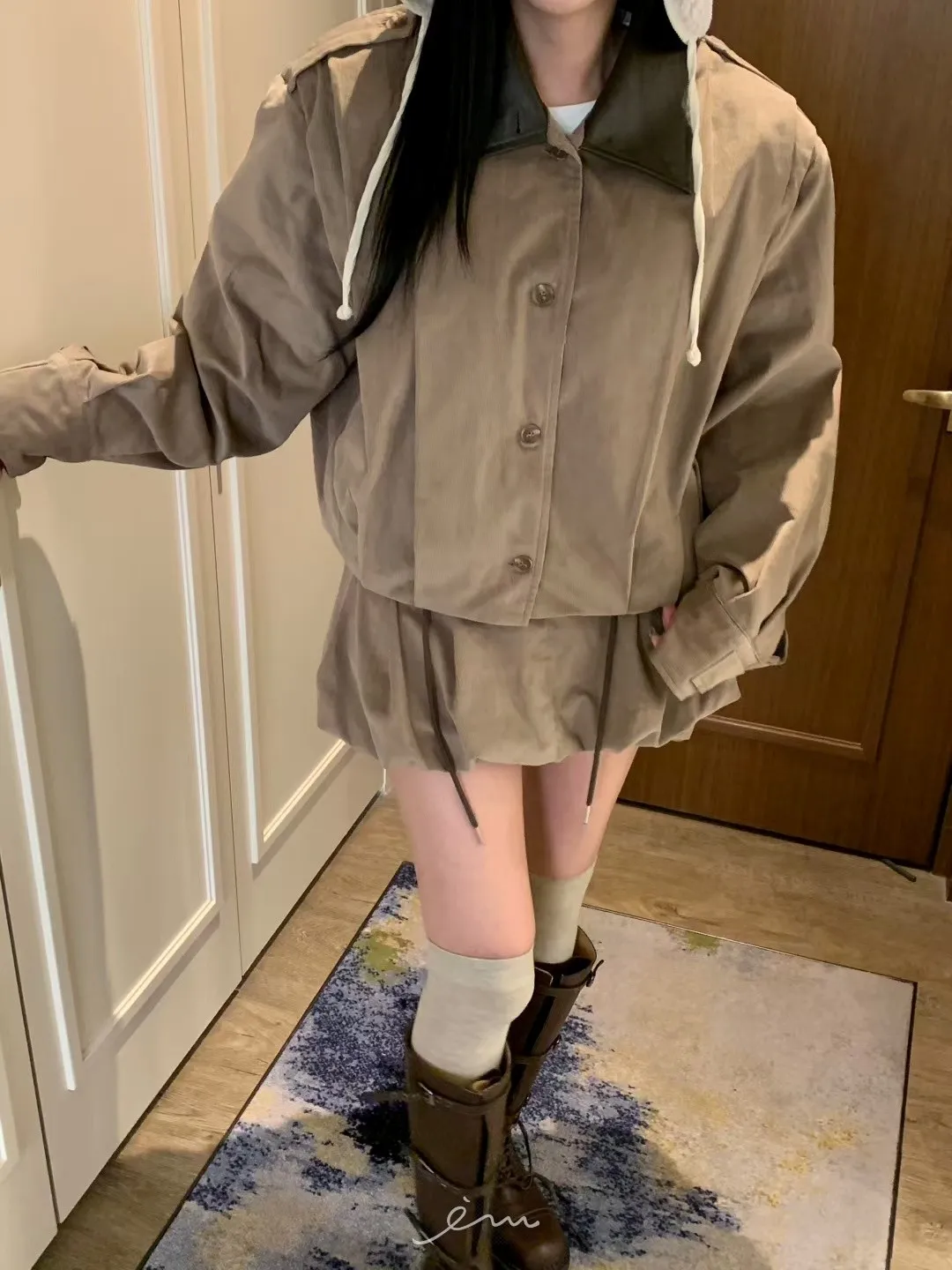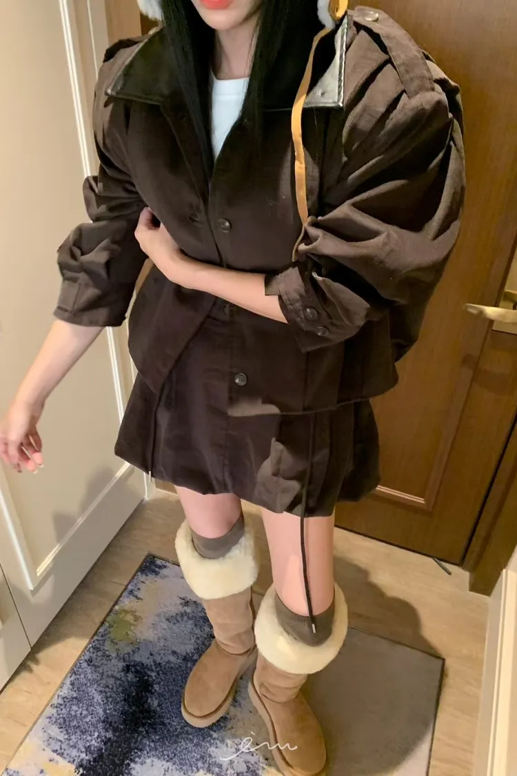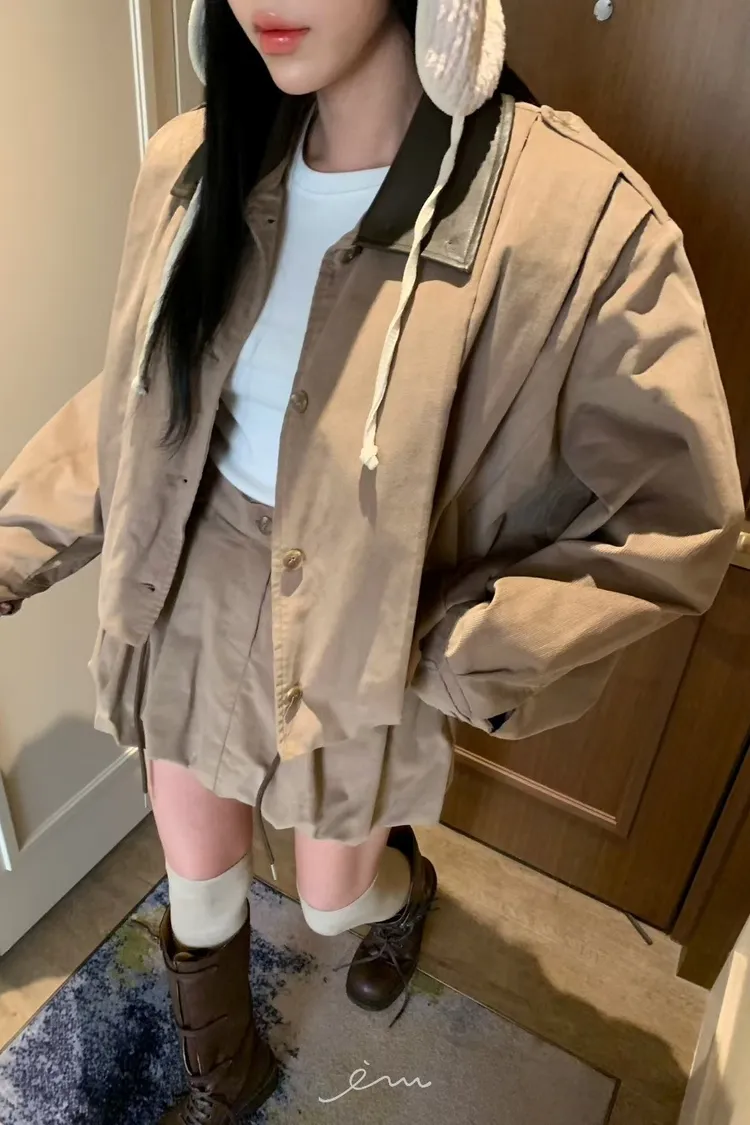 BAD皮革領打摺燈芯絨外套