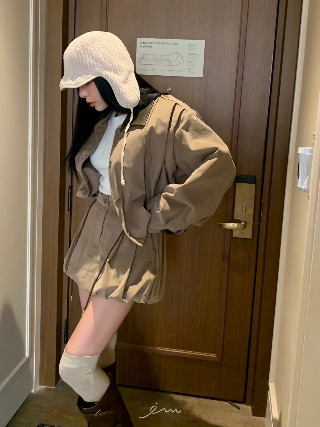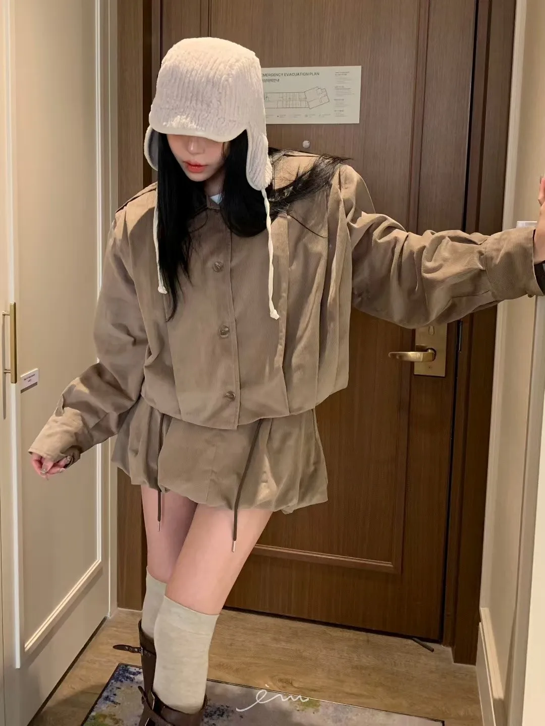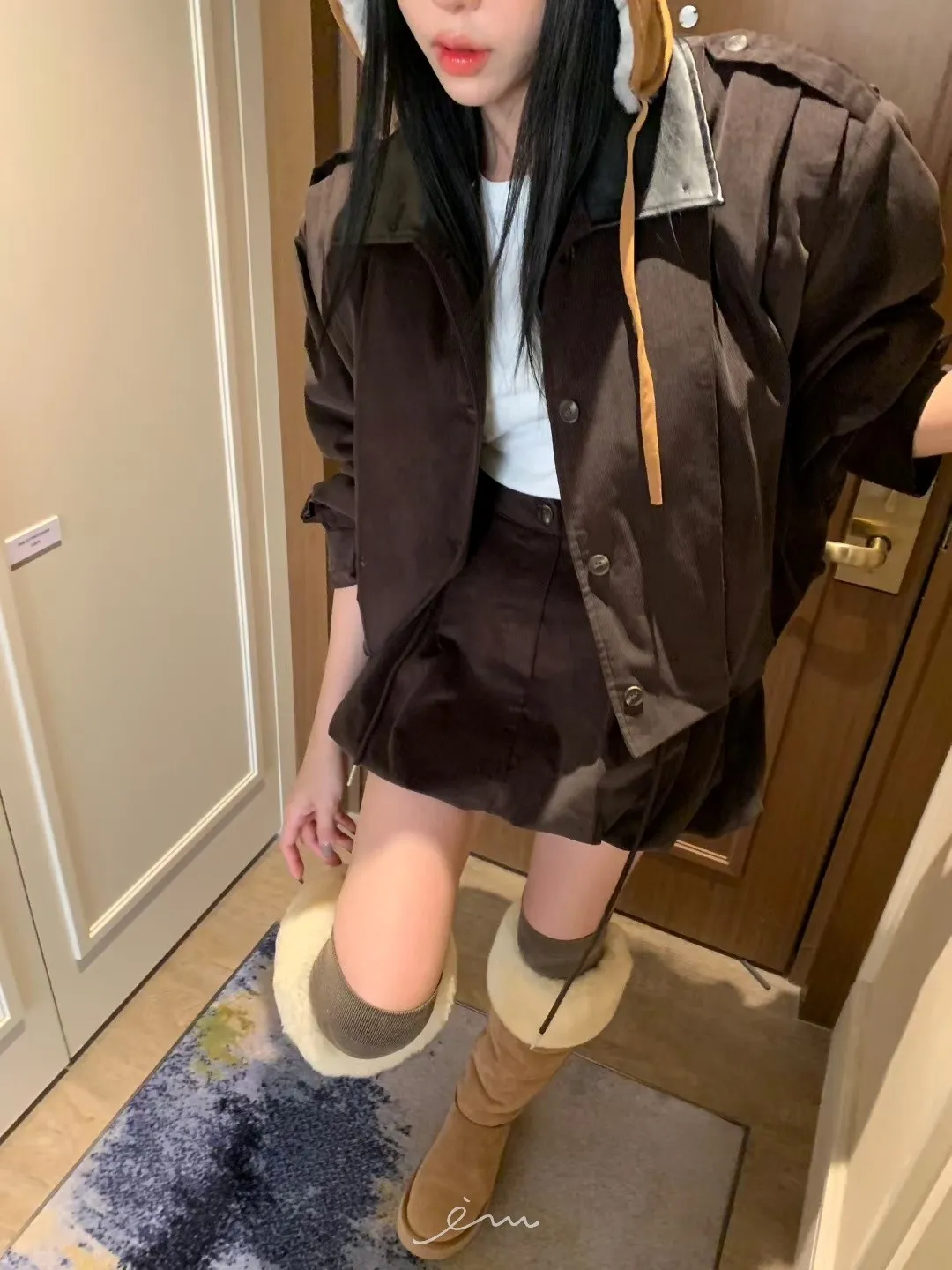 BAD皮革領打摺燈芯絨外套