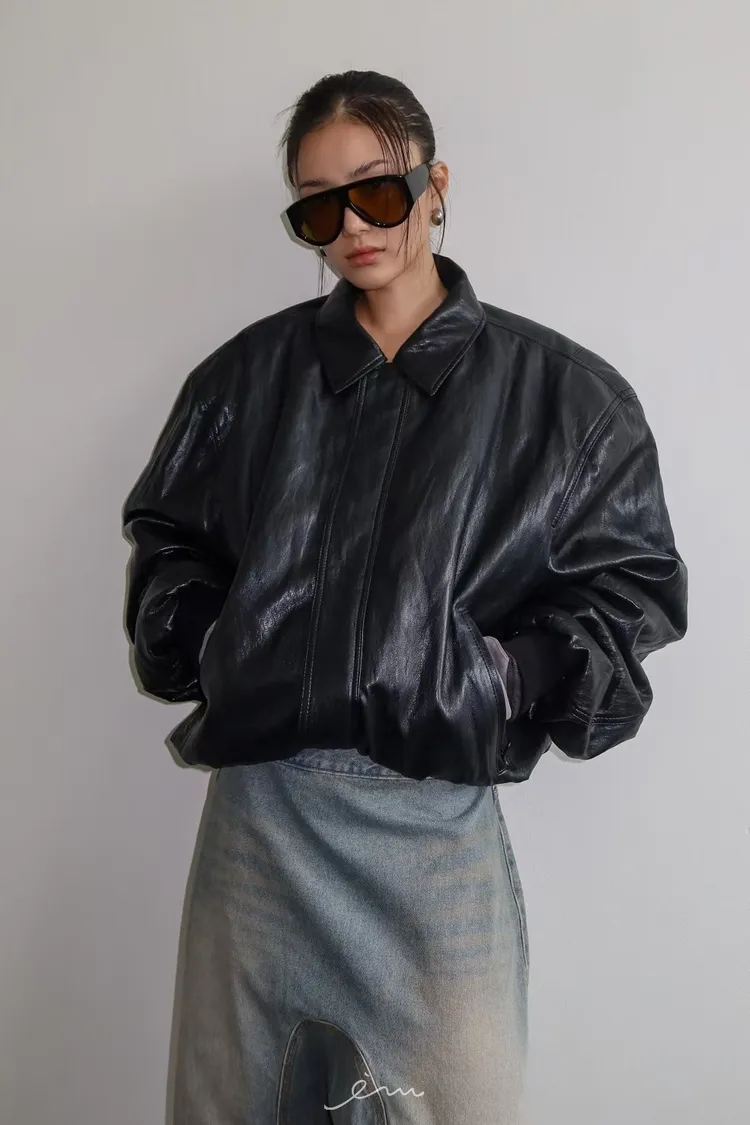 WAVE蓬蓬鋪棉皮革外套