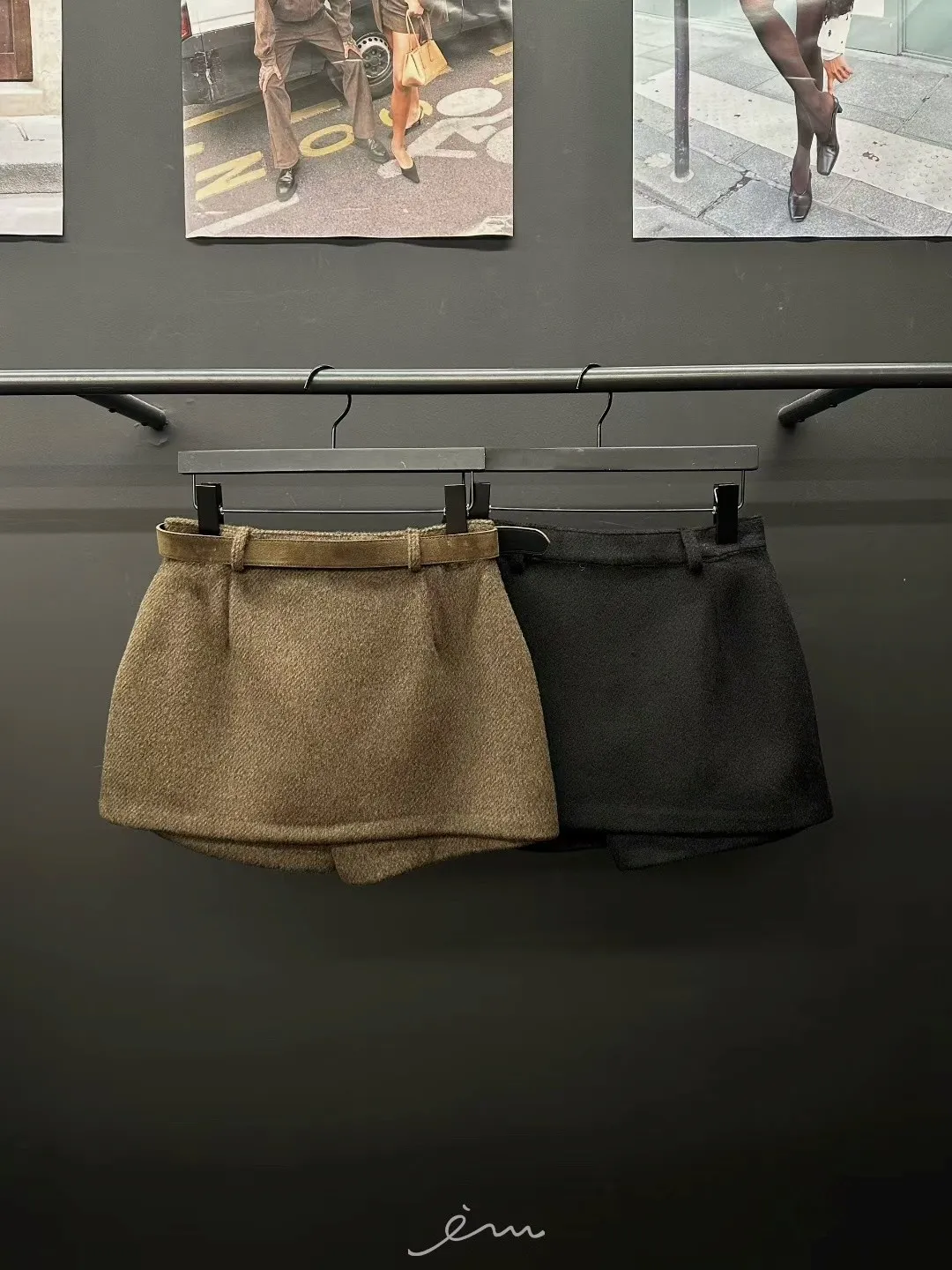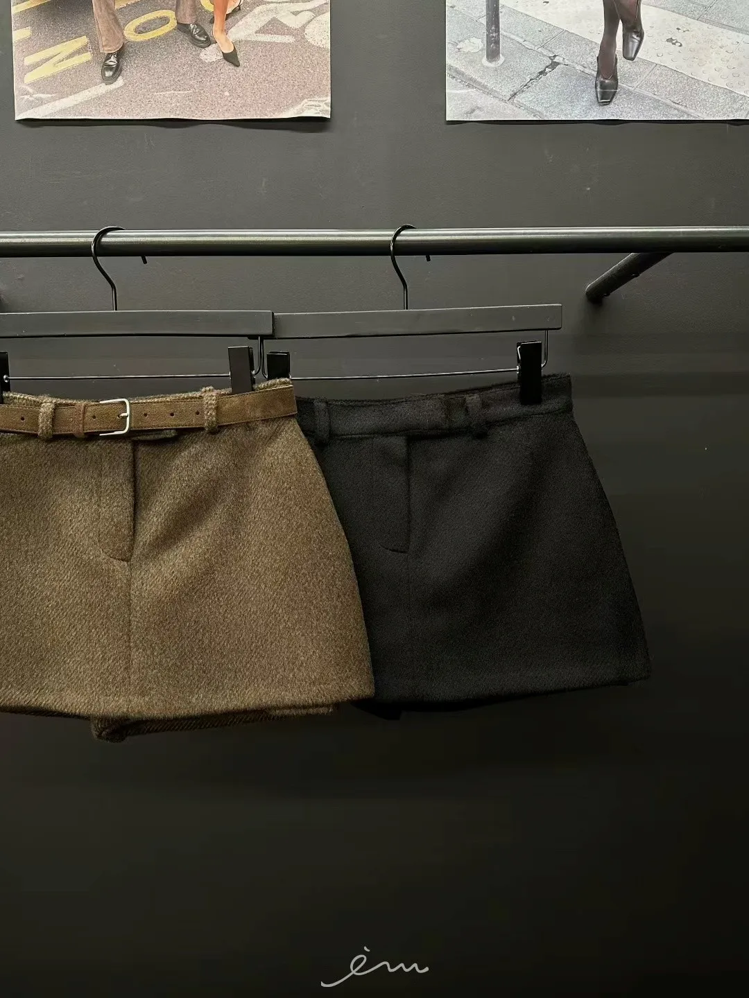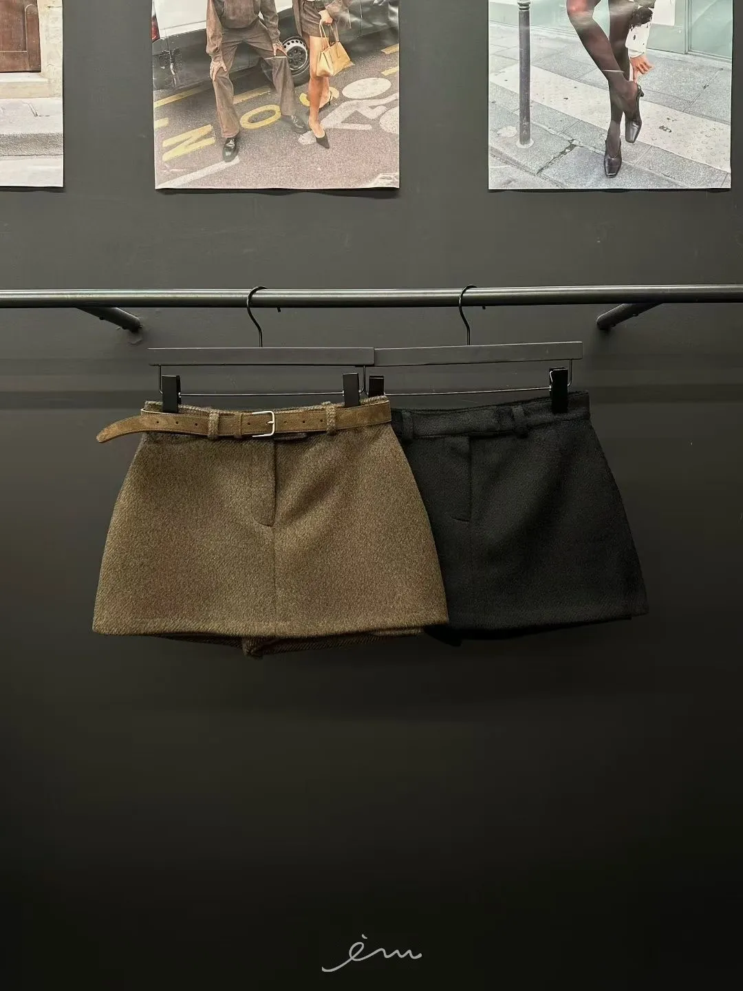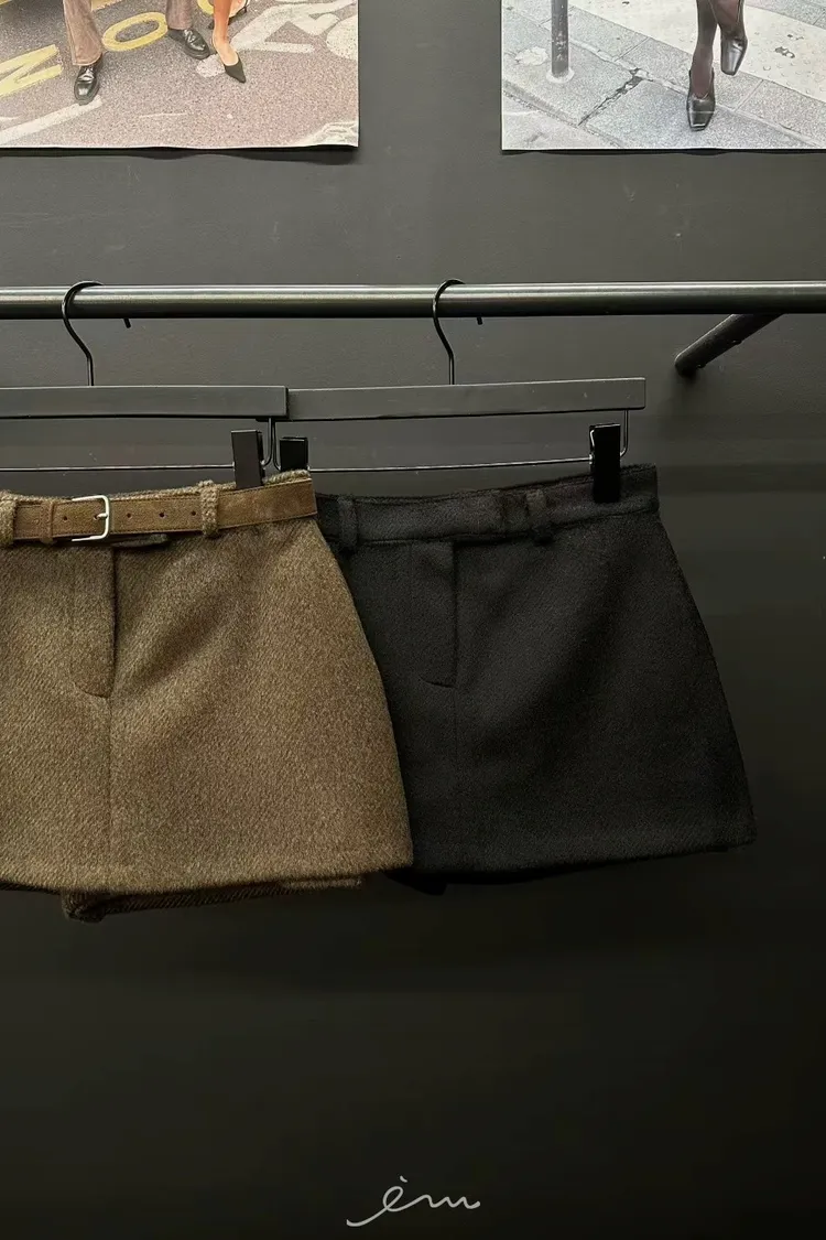 WAVE皮帶羊毛短褲裙(不含皮帶)