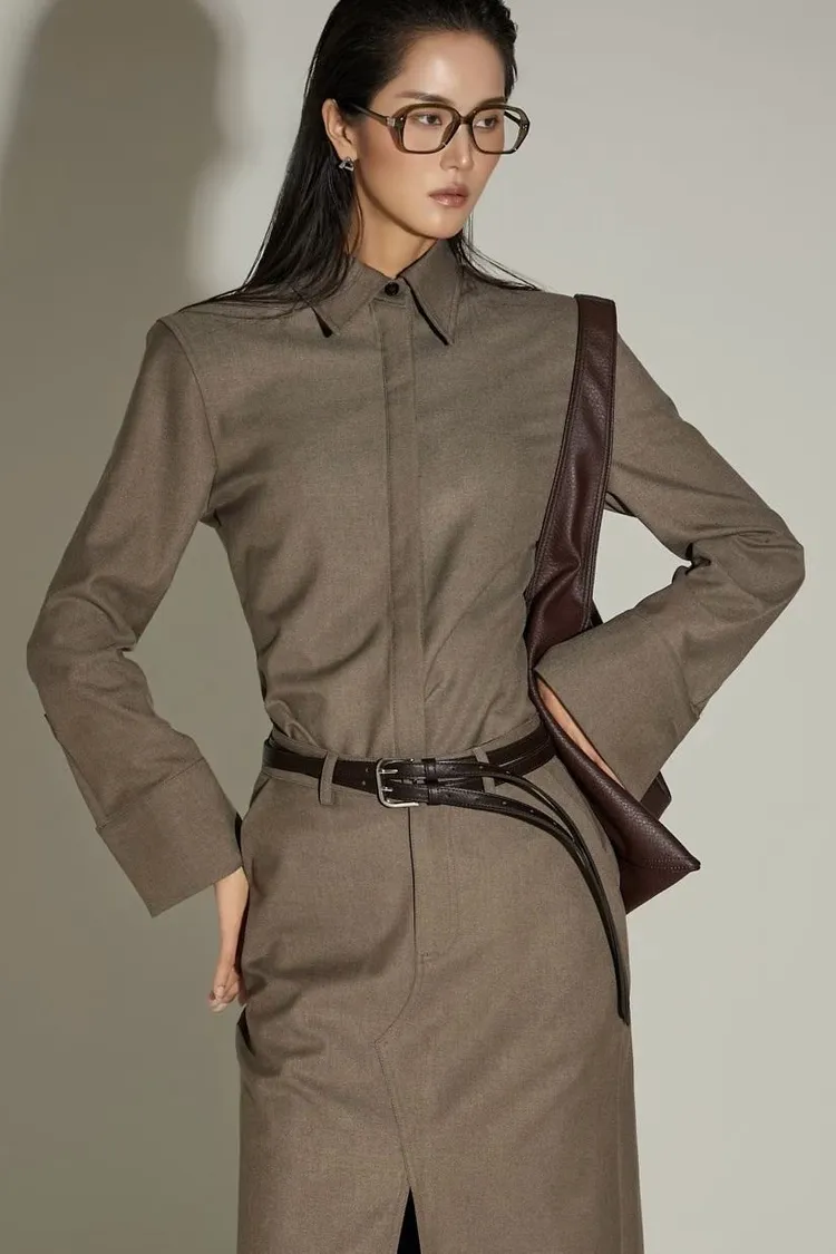 WAVE羊毛俐落感隱藏扣襯衫