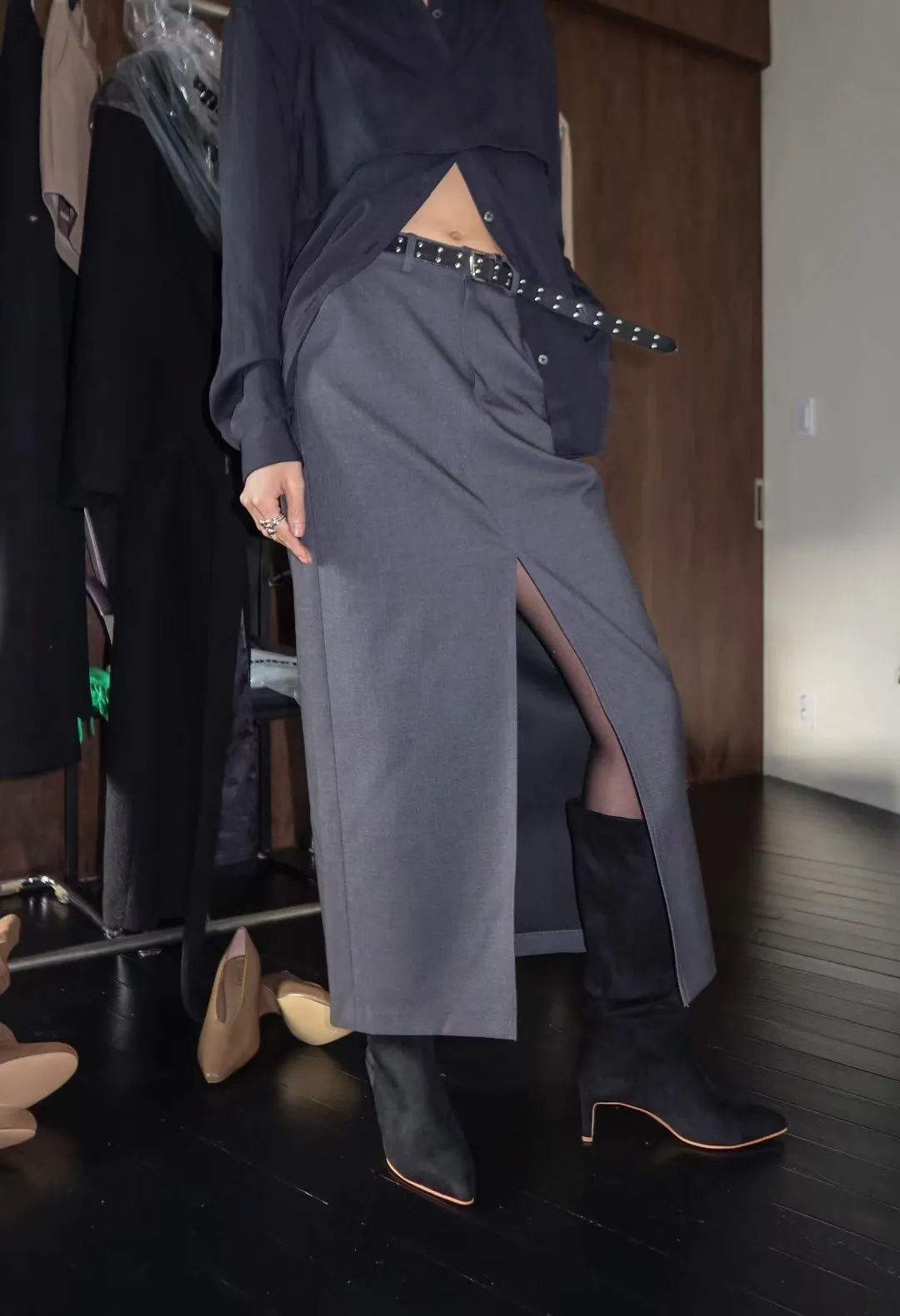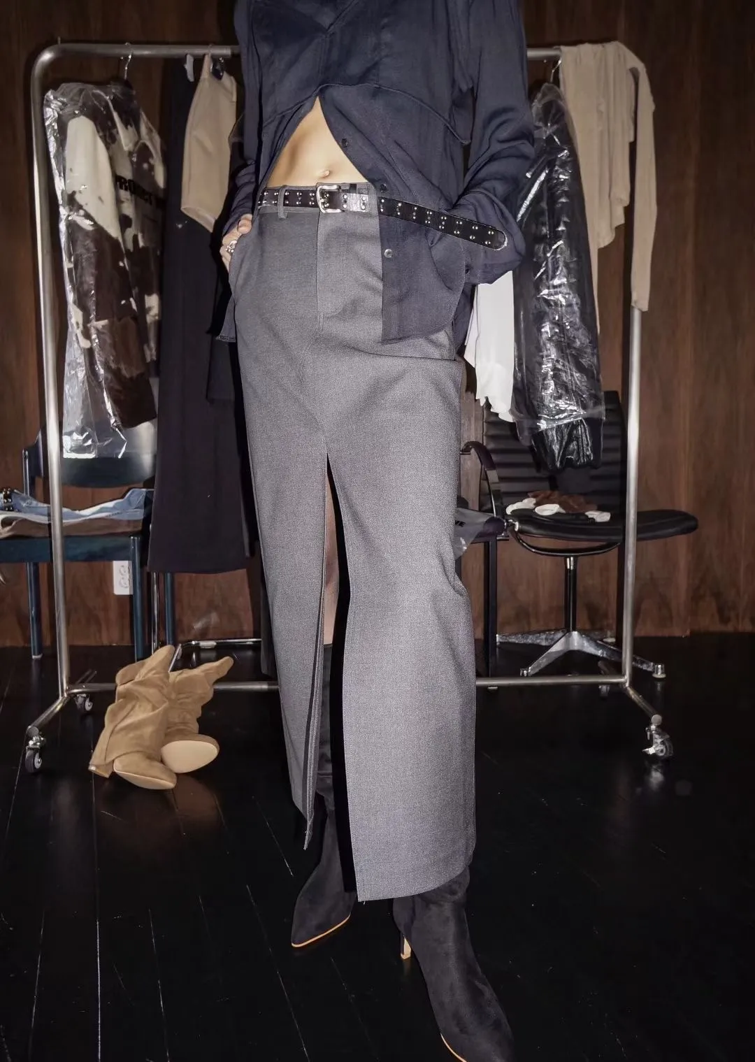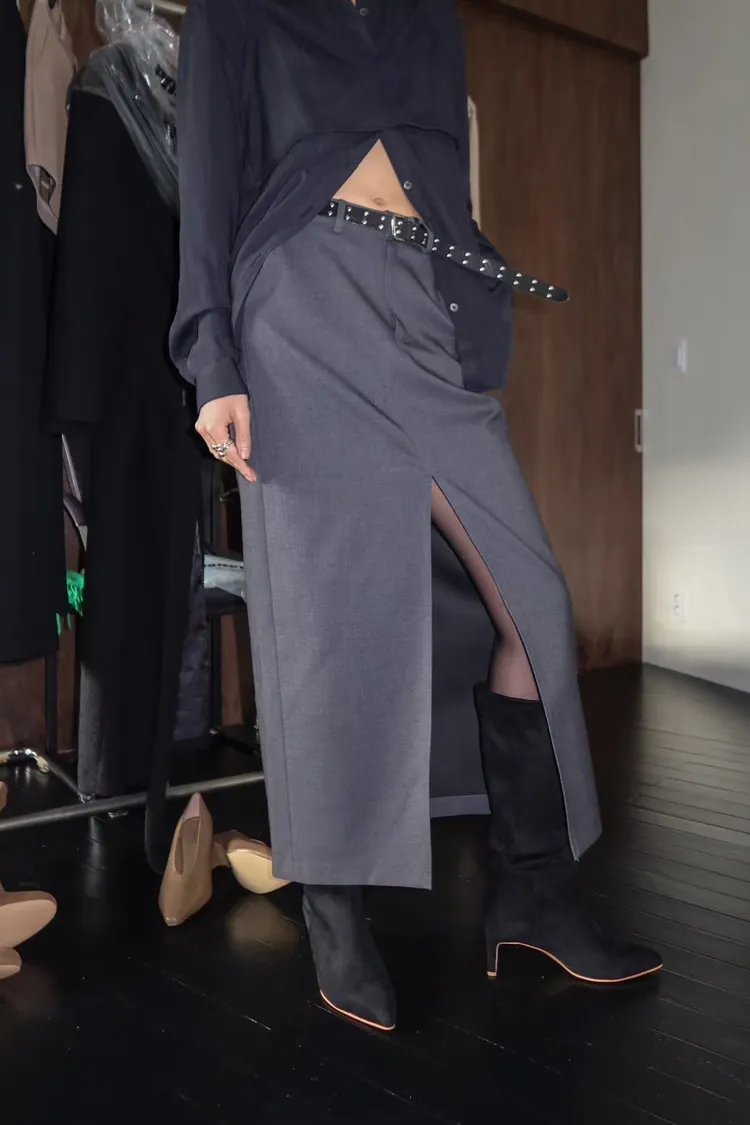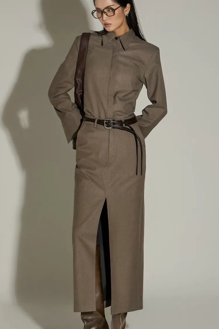 WAVE羊毛西裝俐落感前開岔裙