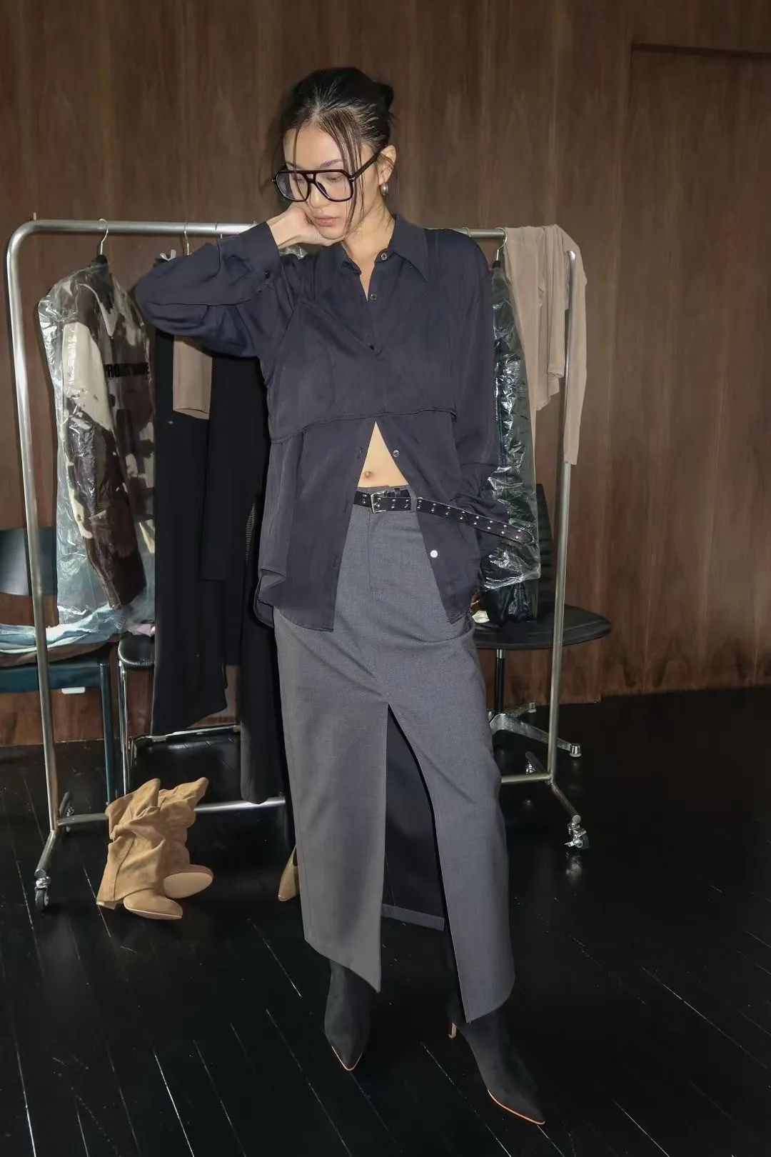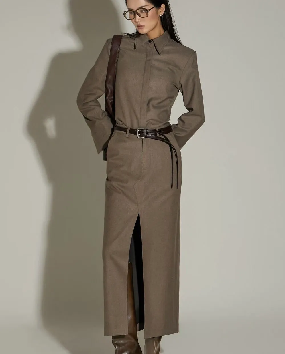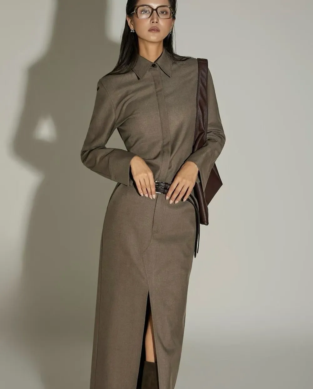 WAVE羊毛西裝俐落感前開岔裙