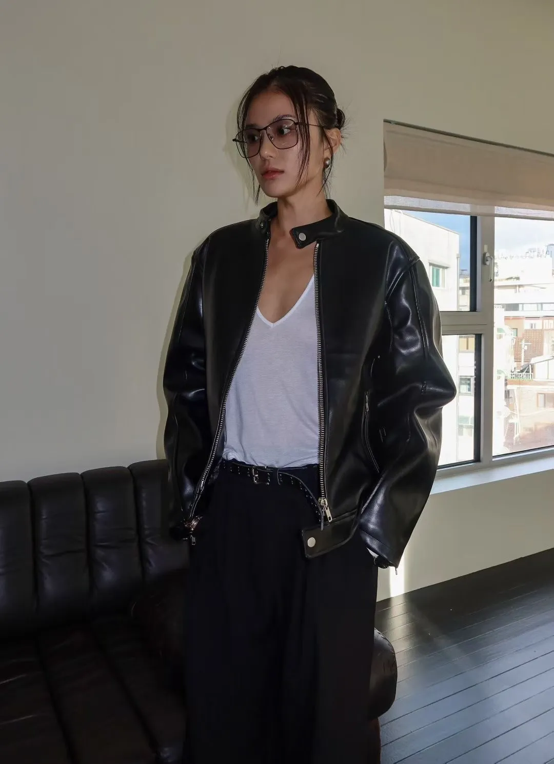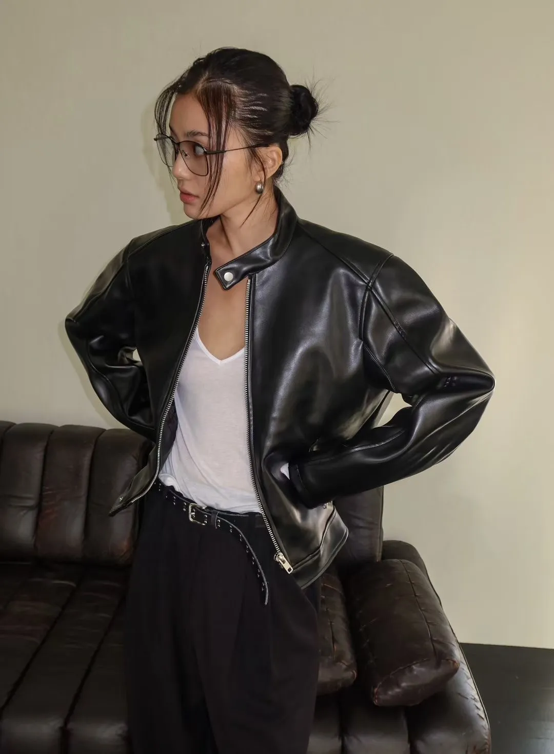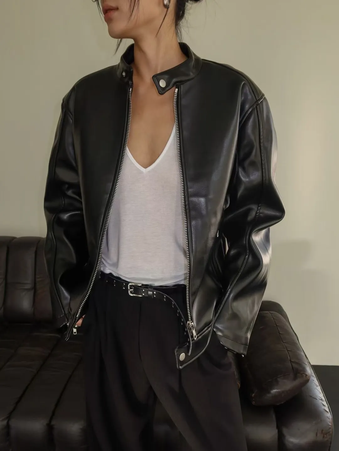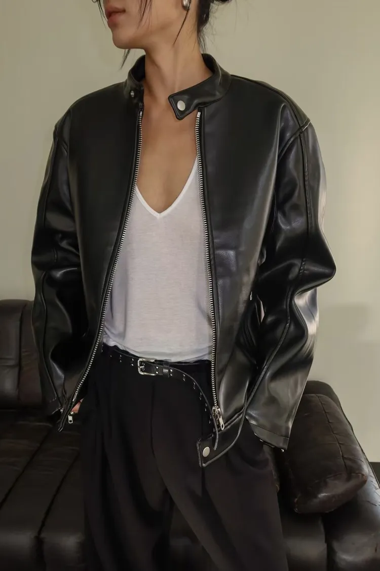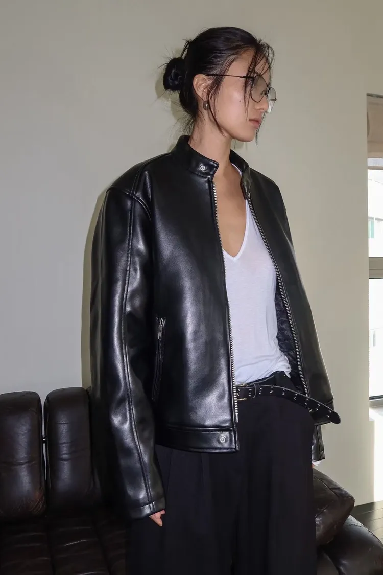 WAVE超挺皮革拉鍊外套
