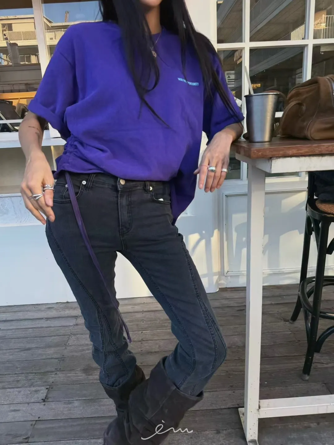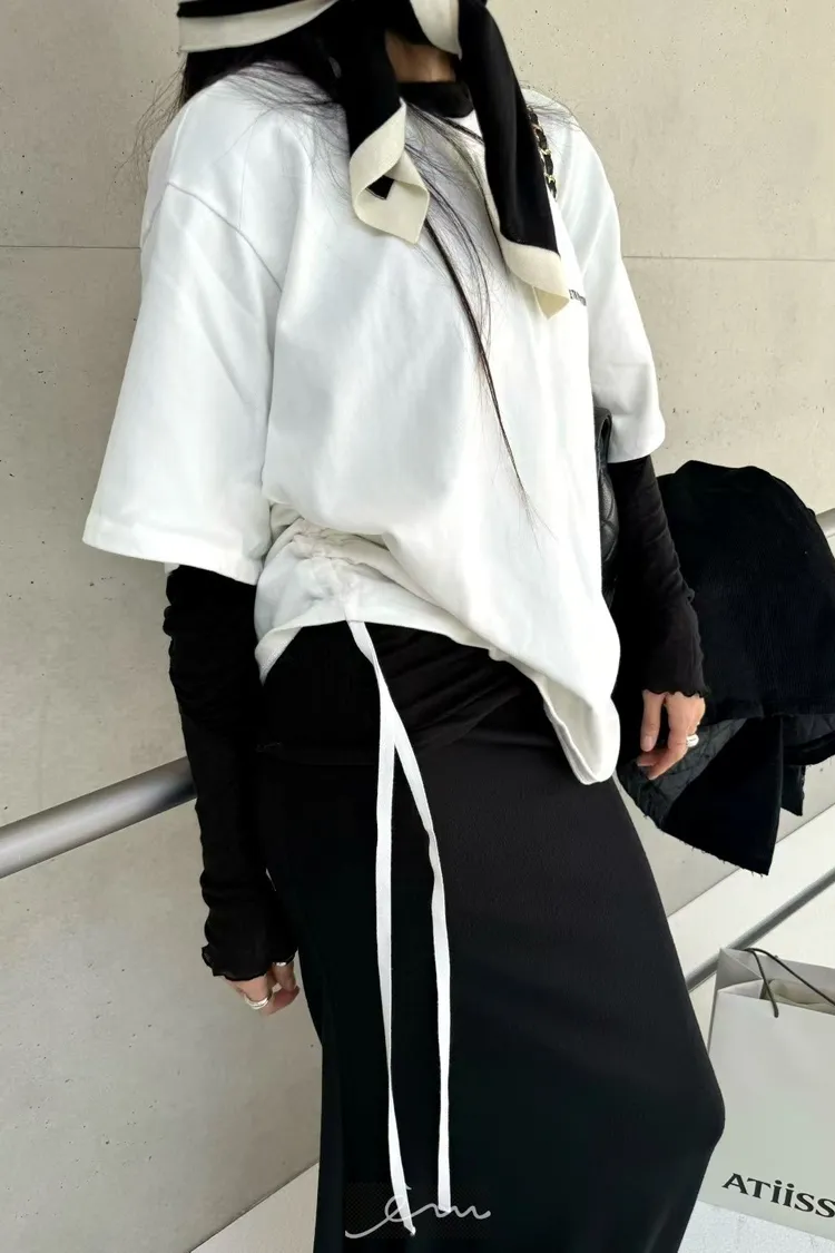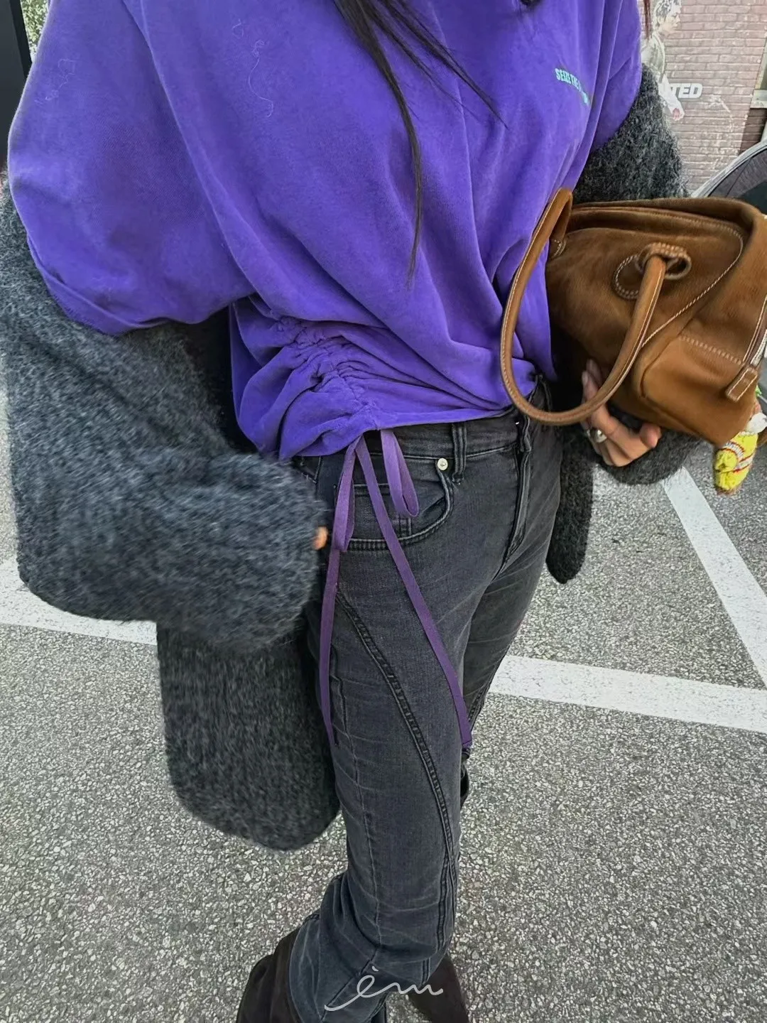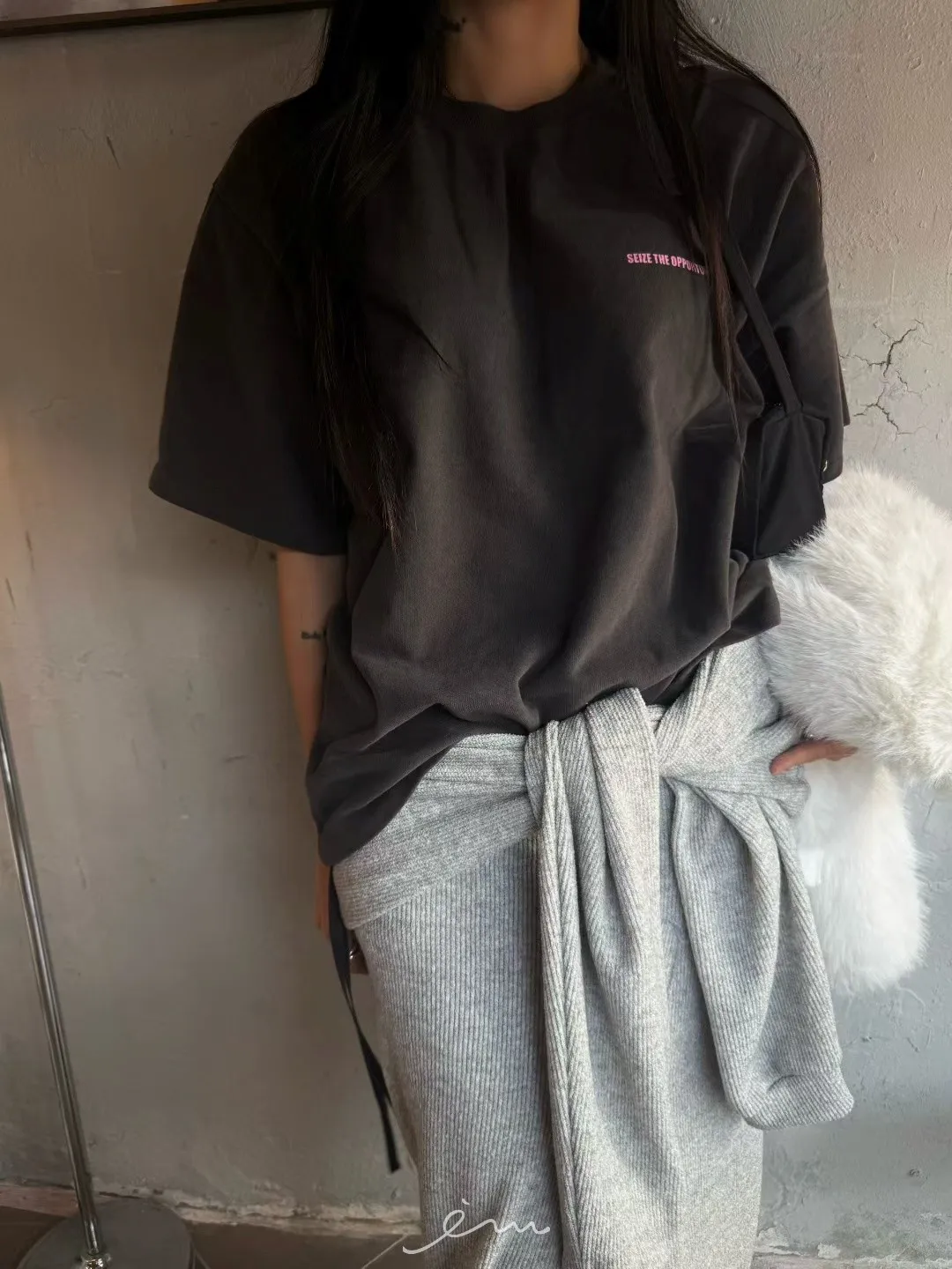 ABB桃絨英字側抽繩上衣