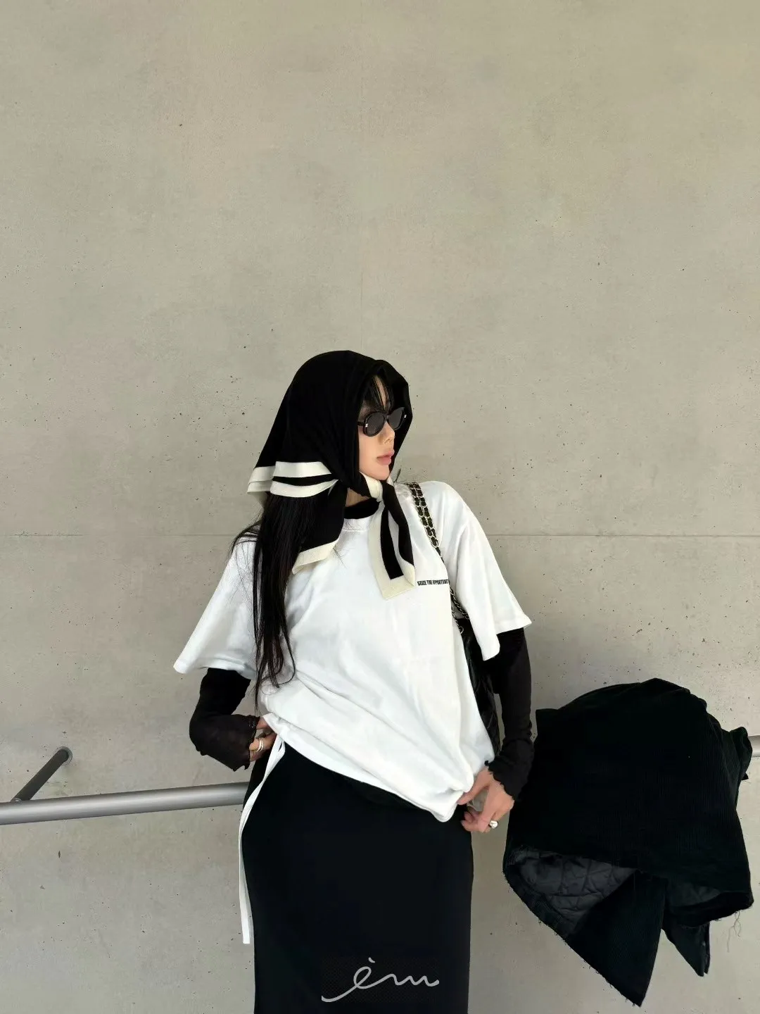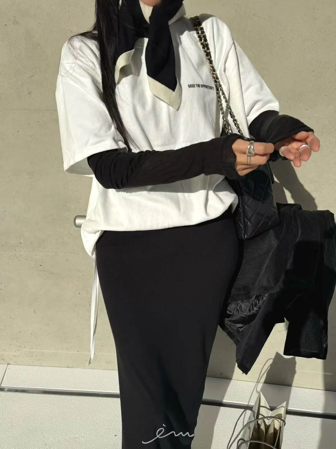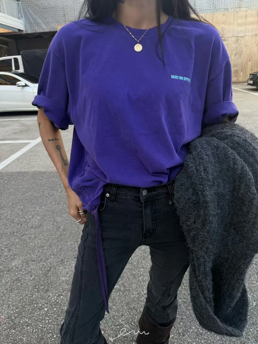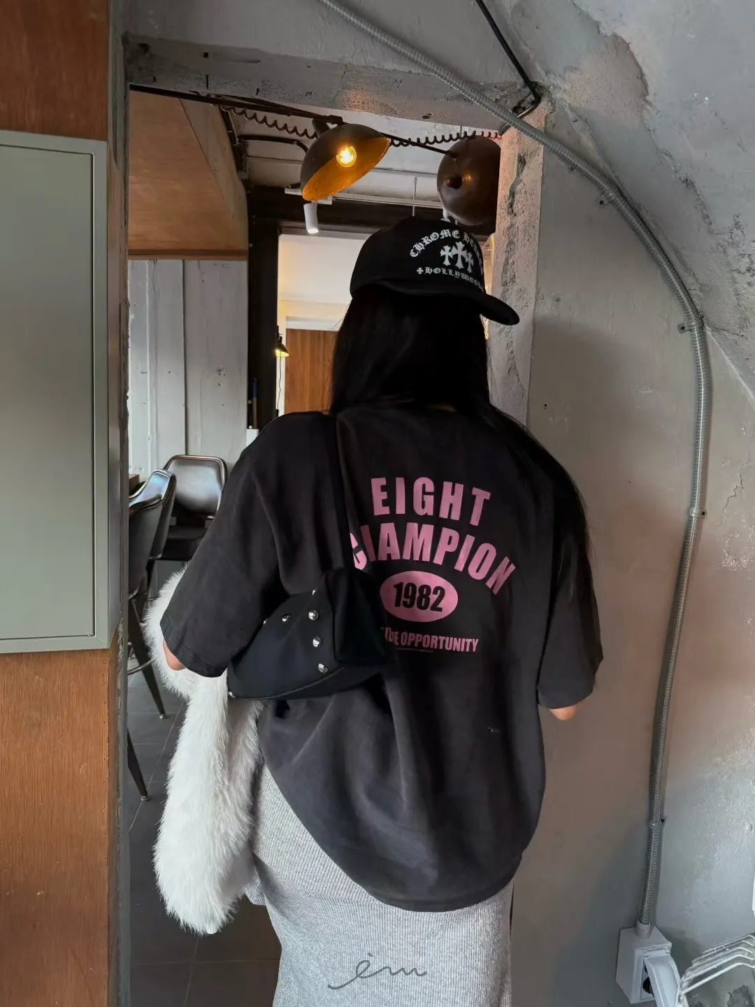 ABB桃絨英字側抽繩上衣