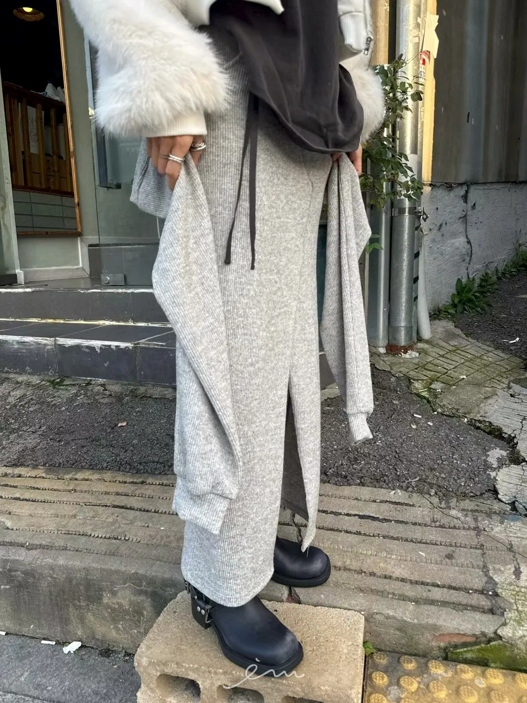 ABB羊毛綁帶設計感長裙